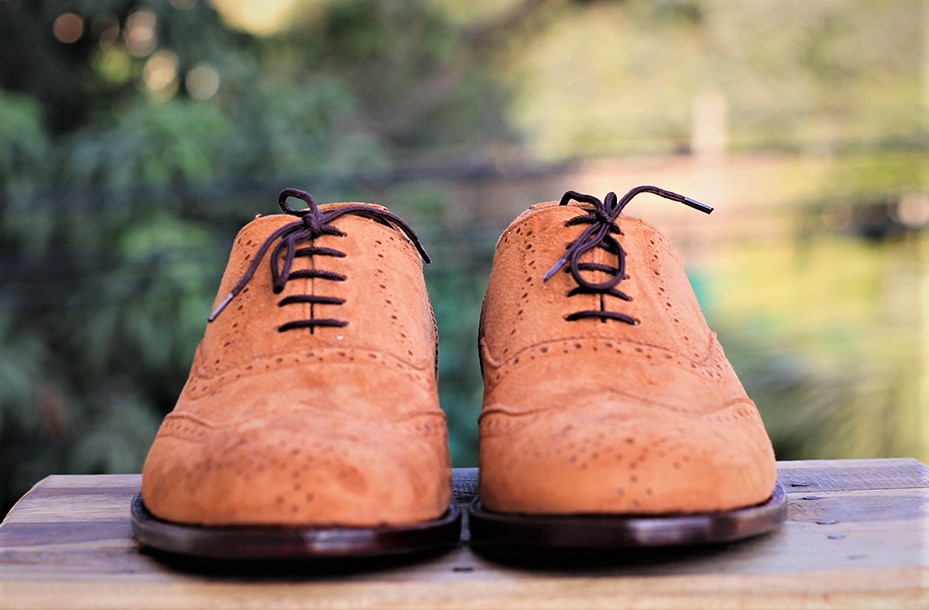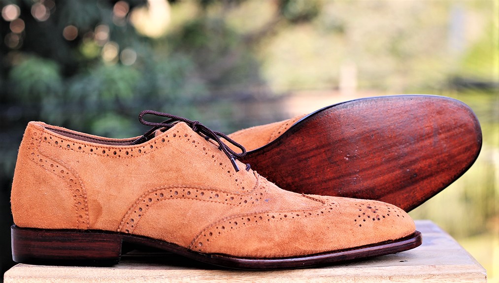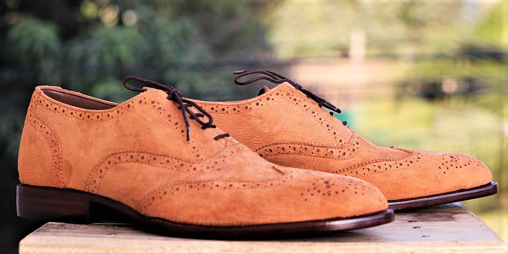 Men's Wing Tip Brogue Tan Suede Leather Shoes