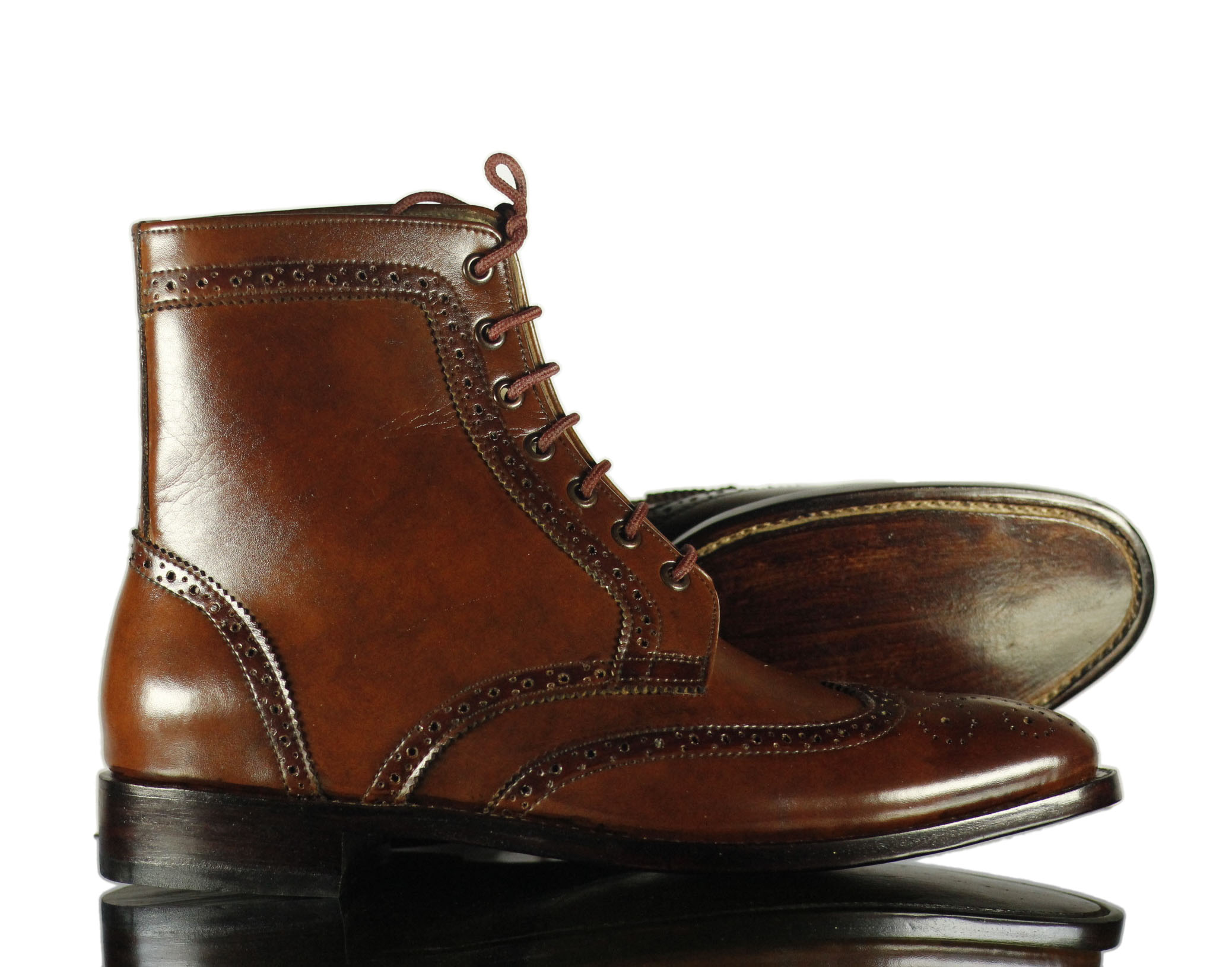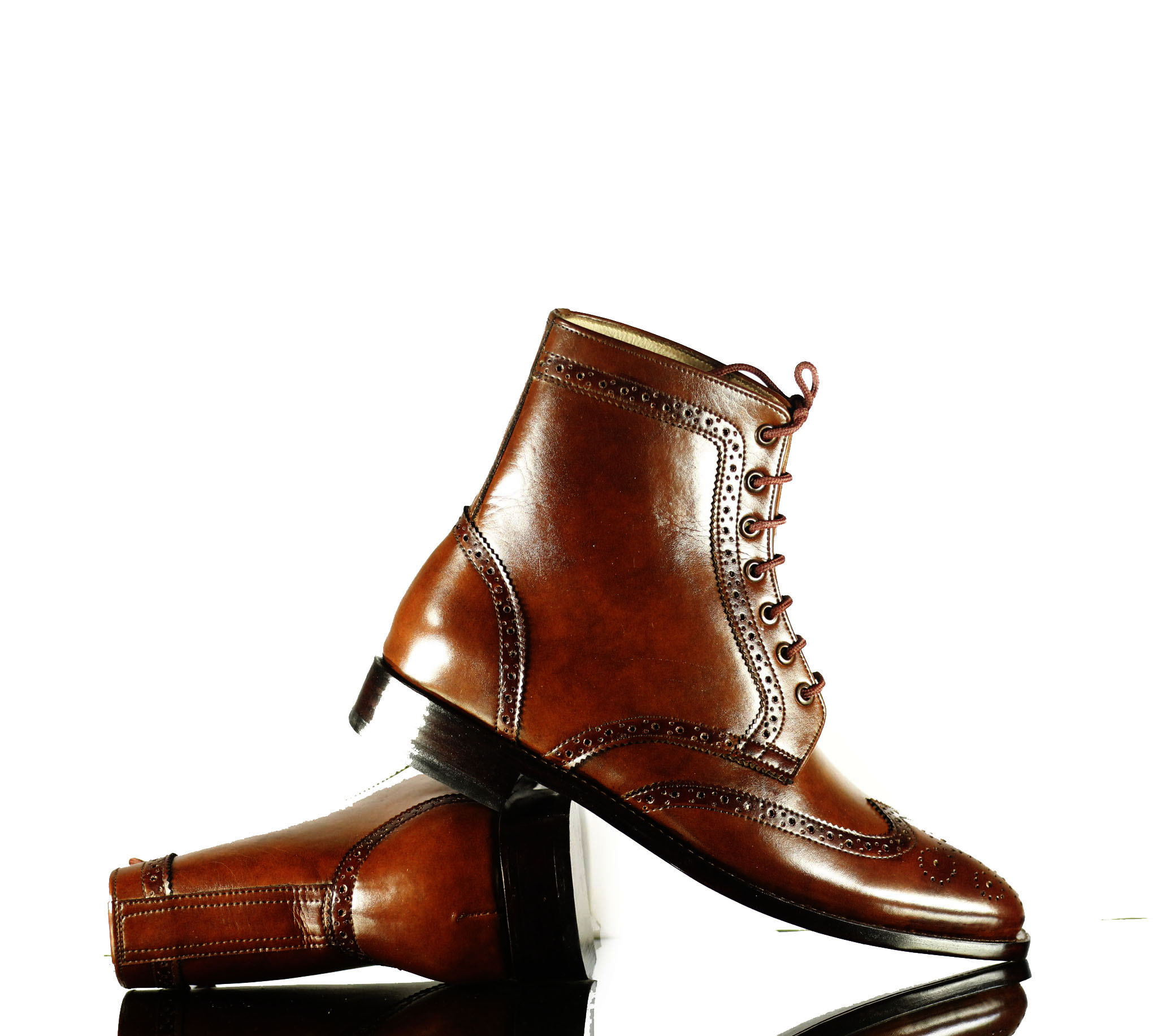 Wing Tip Lace Up Brown Brogue Leather Ankle High Leather