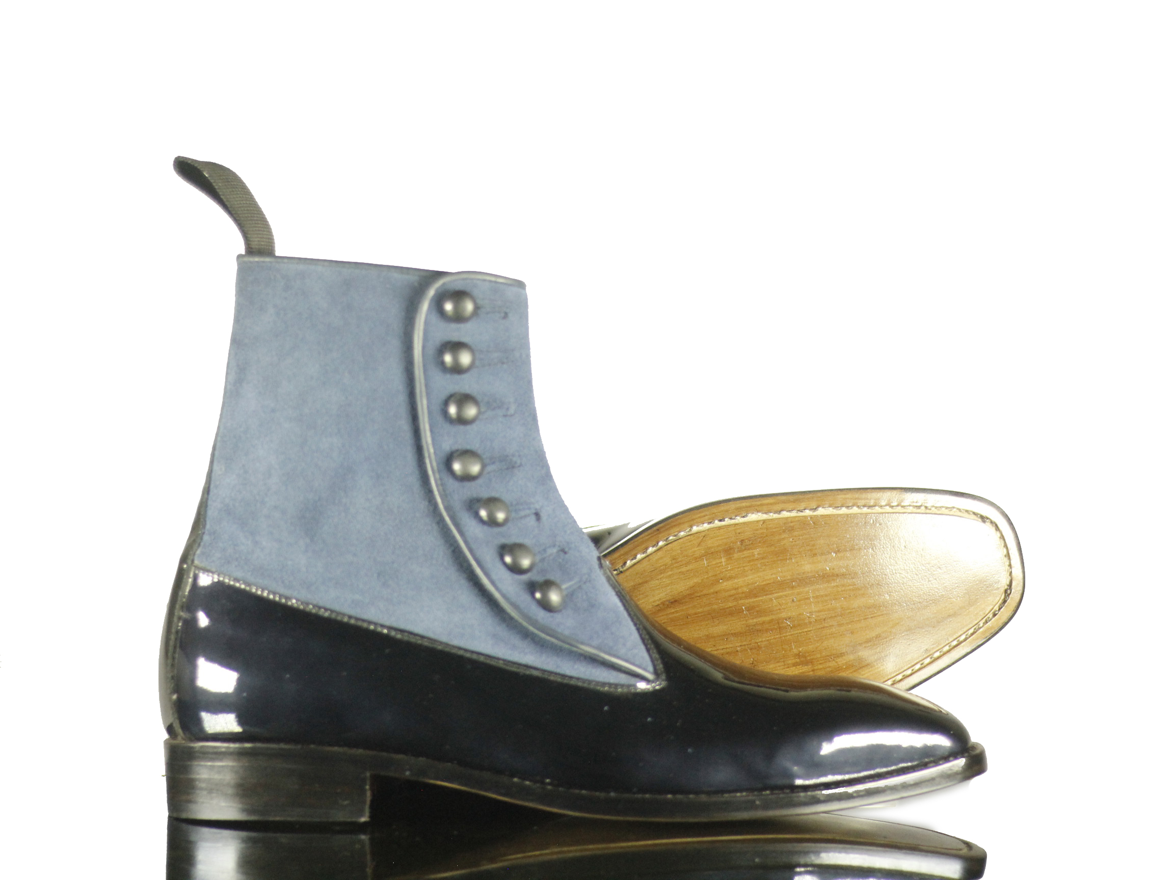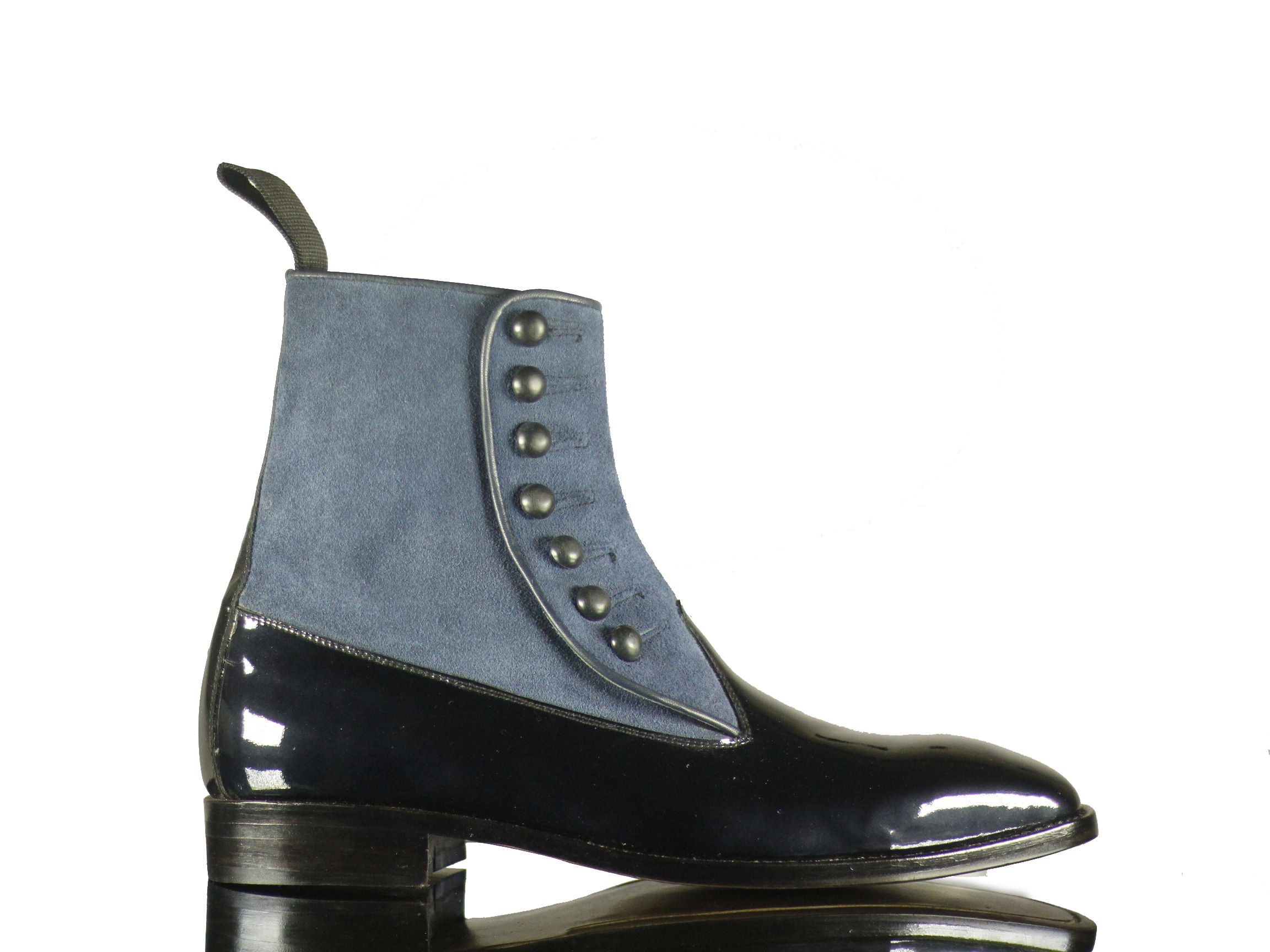 Handmade Black & Blue Patent Leather Suede Ankle High Boot