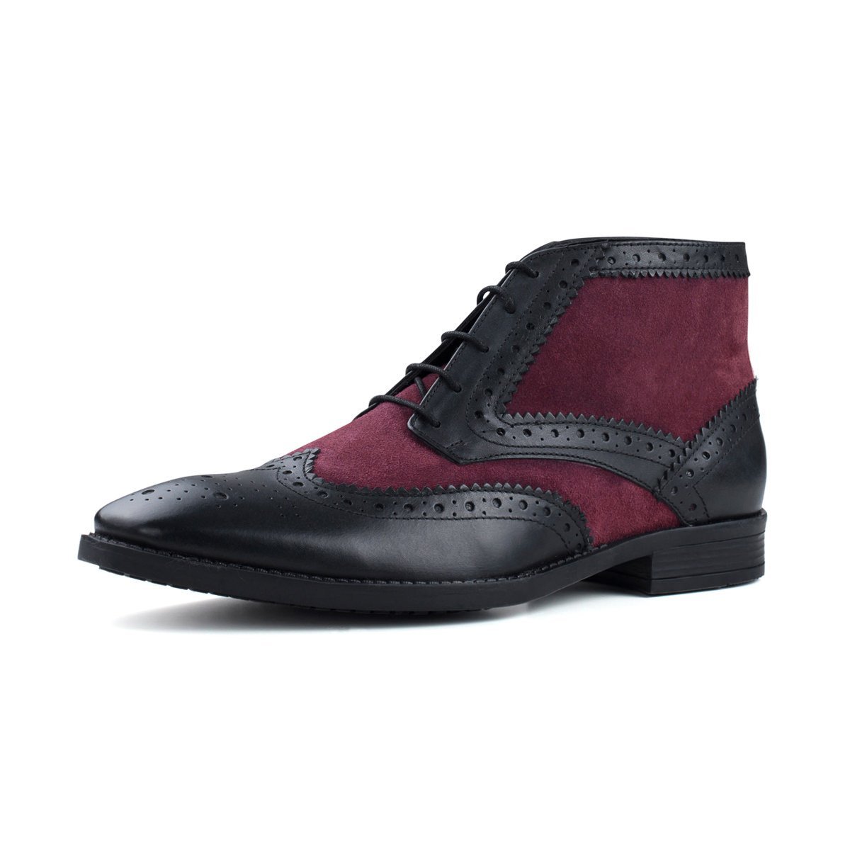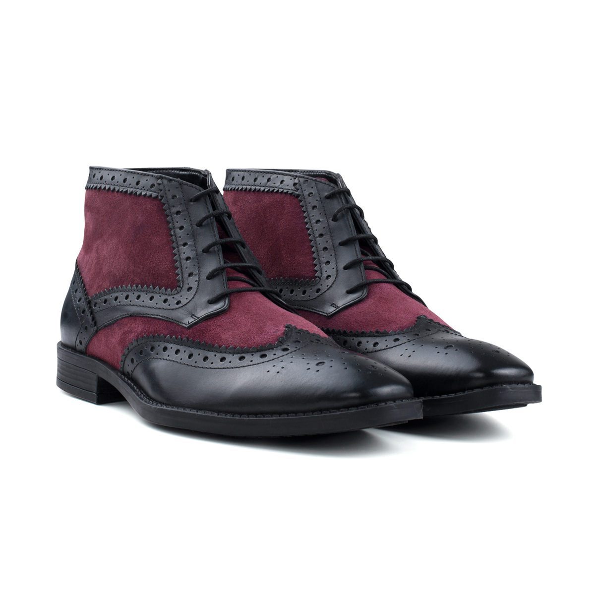Two Tone Black & Burgundy Leather Suede Lace Up Chukka Boot