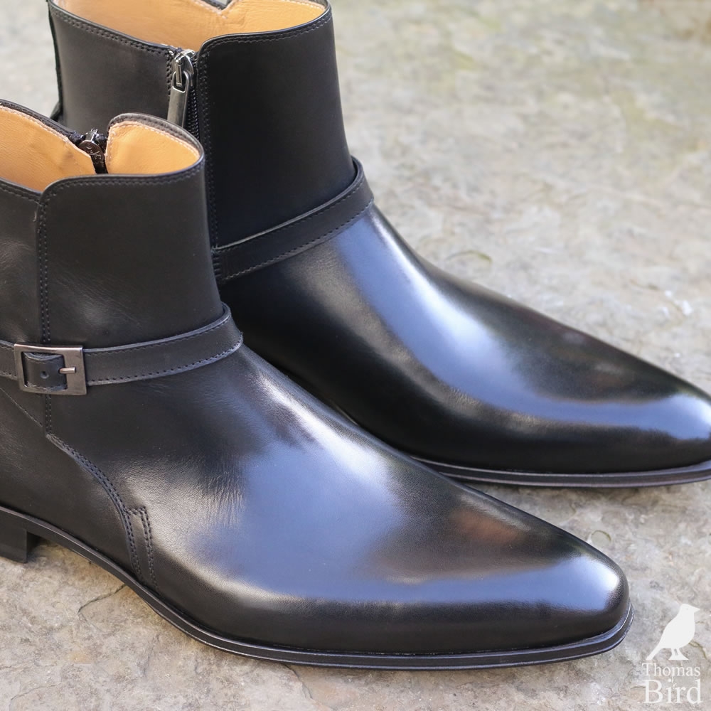 Beautiful Black Patent Leather Jodhpurs Ankle High Boot For Men