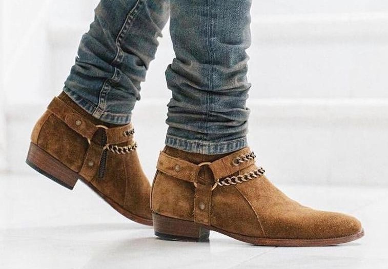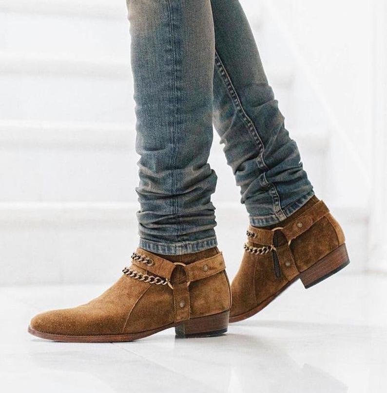 Ankle High Madrid Strap Brown Leather Suede Boot