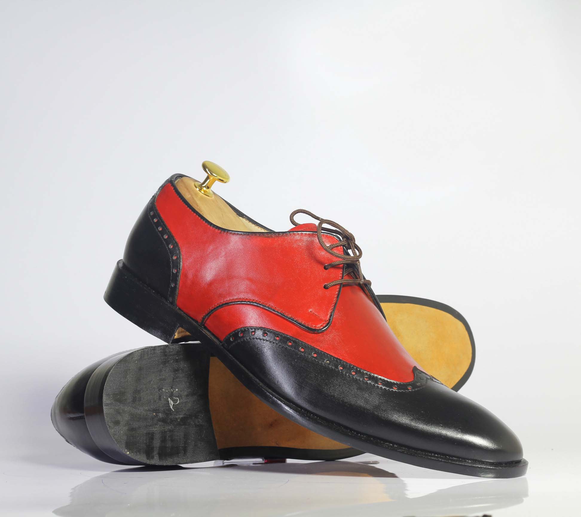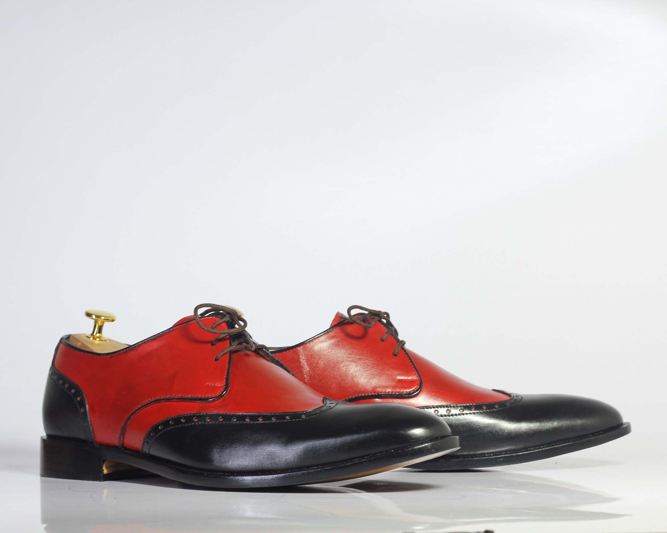 Men's Double Tone Wing Tip Handmade Leather Shoes