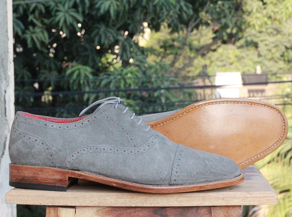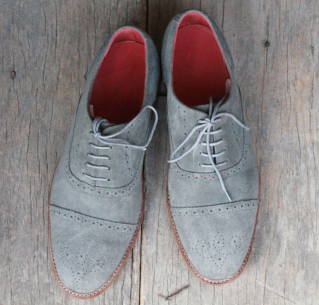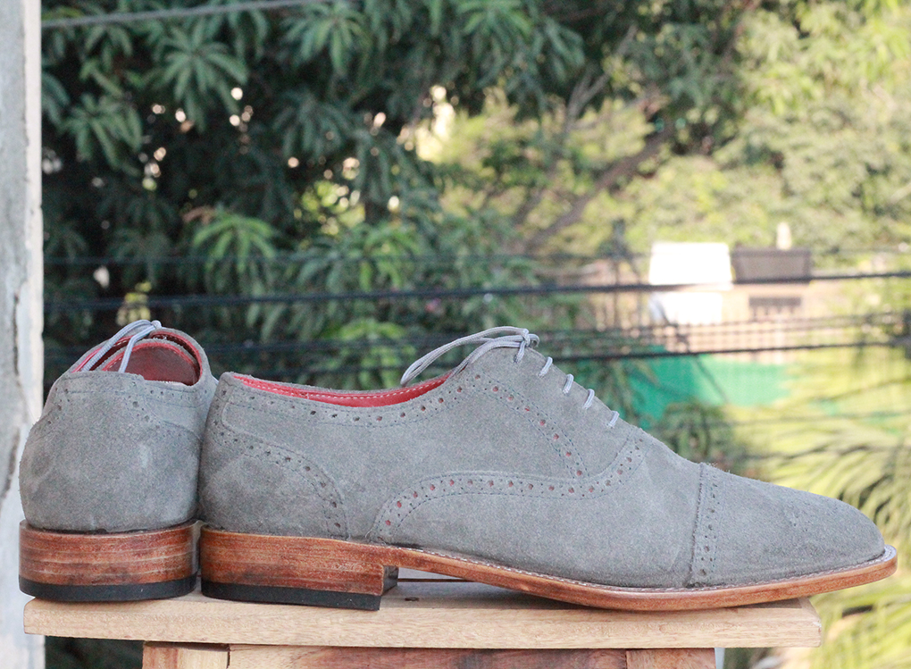 Handmade Men's Oxford Gray Suede Cap Toe Brogue Shoes