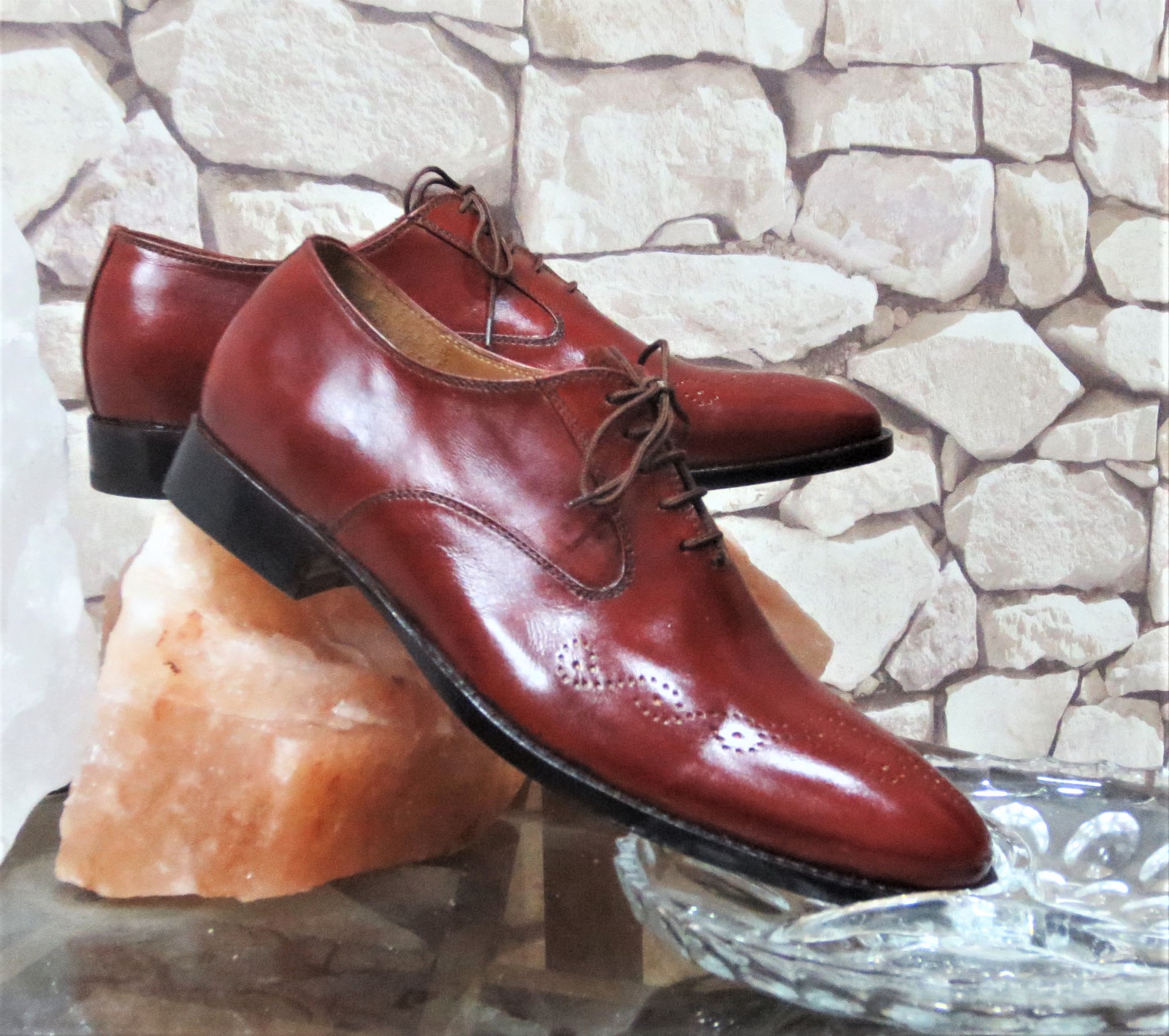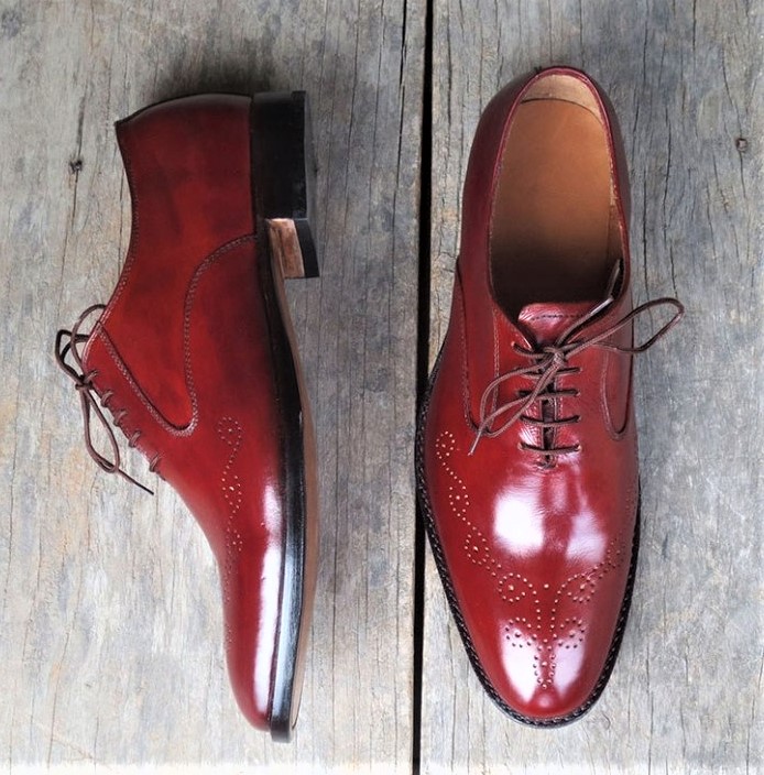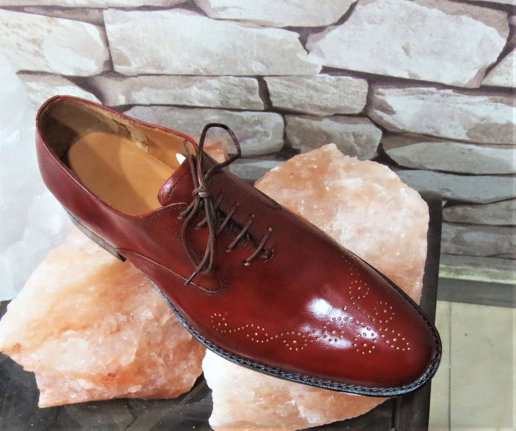 Handmade Men's Burgundy Brogue Lace Up Leather Shoes