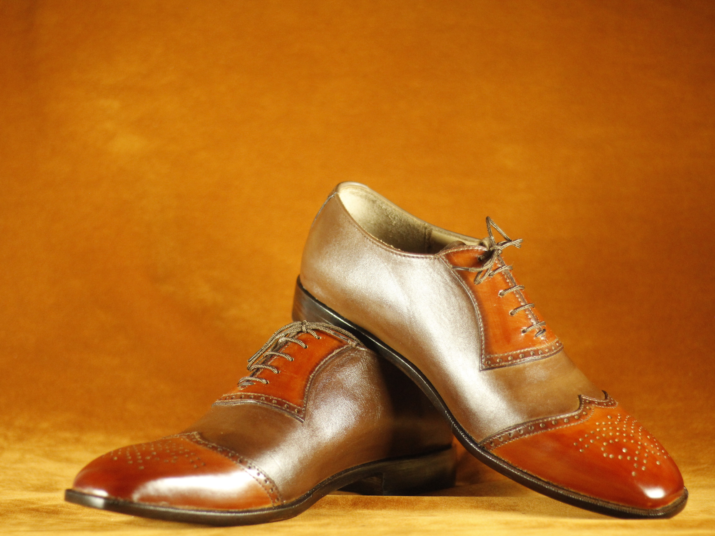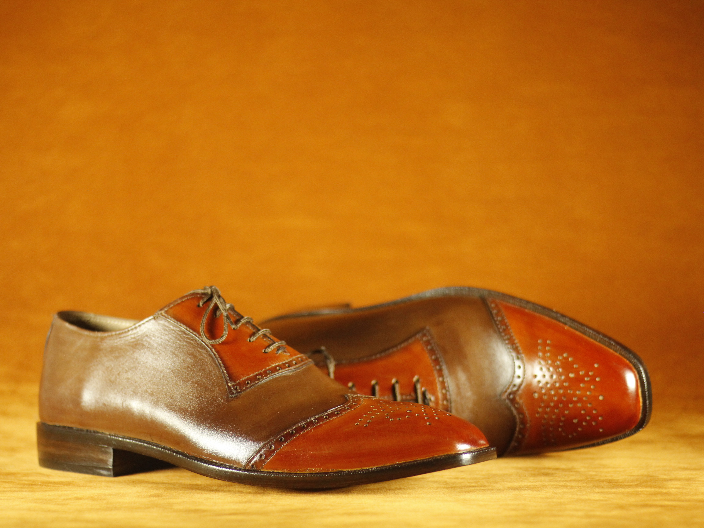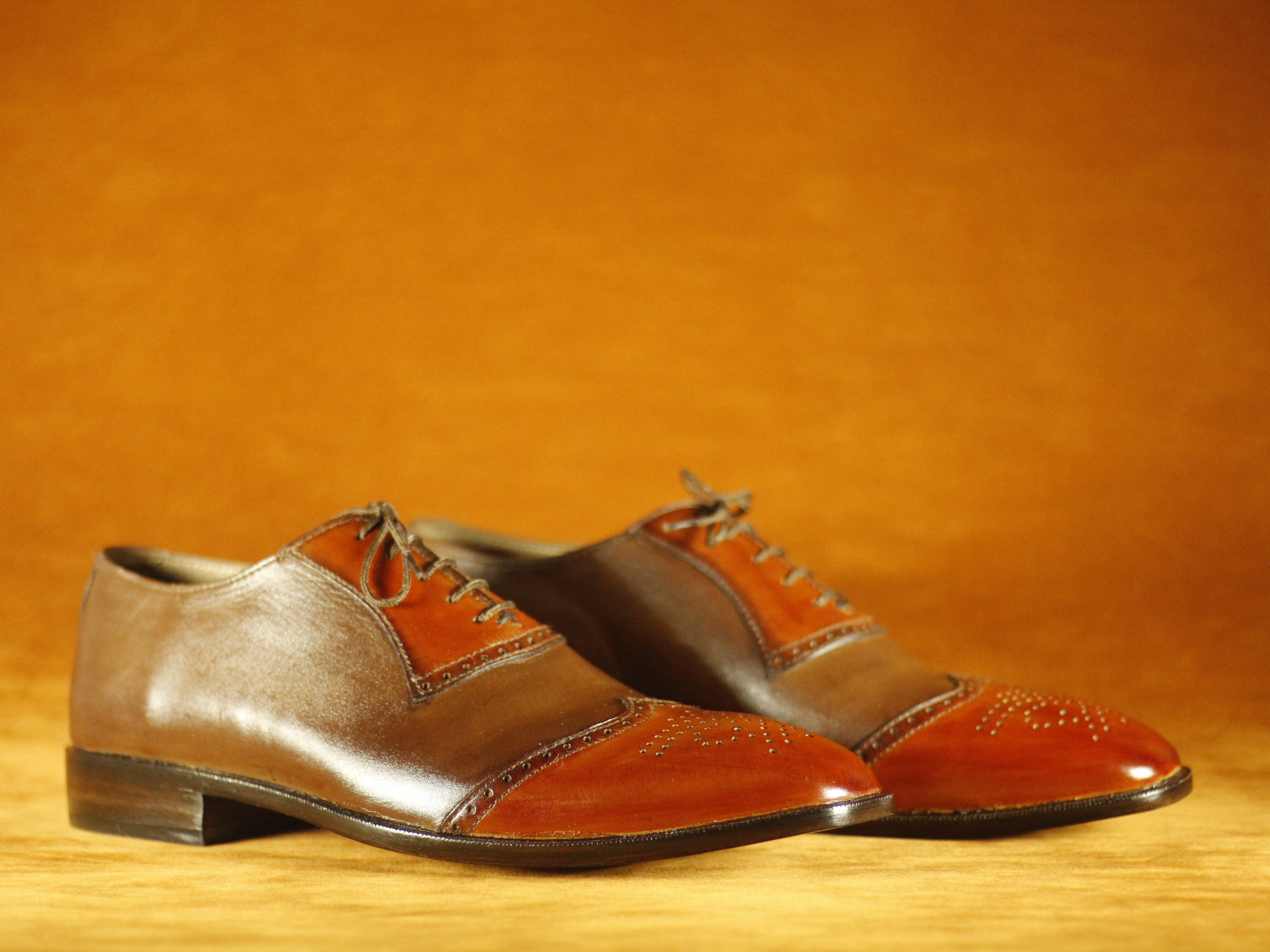 Two Tone Burgundy & Brown Formal Dress Wing Tip Leather Shoes
