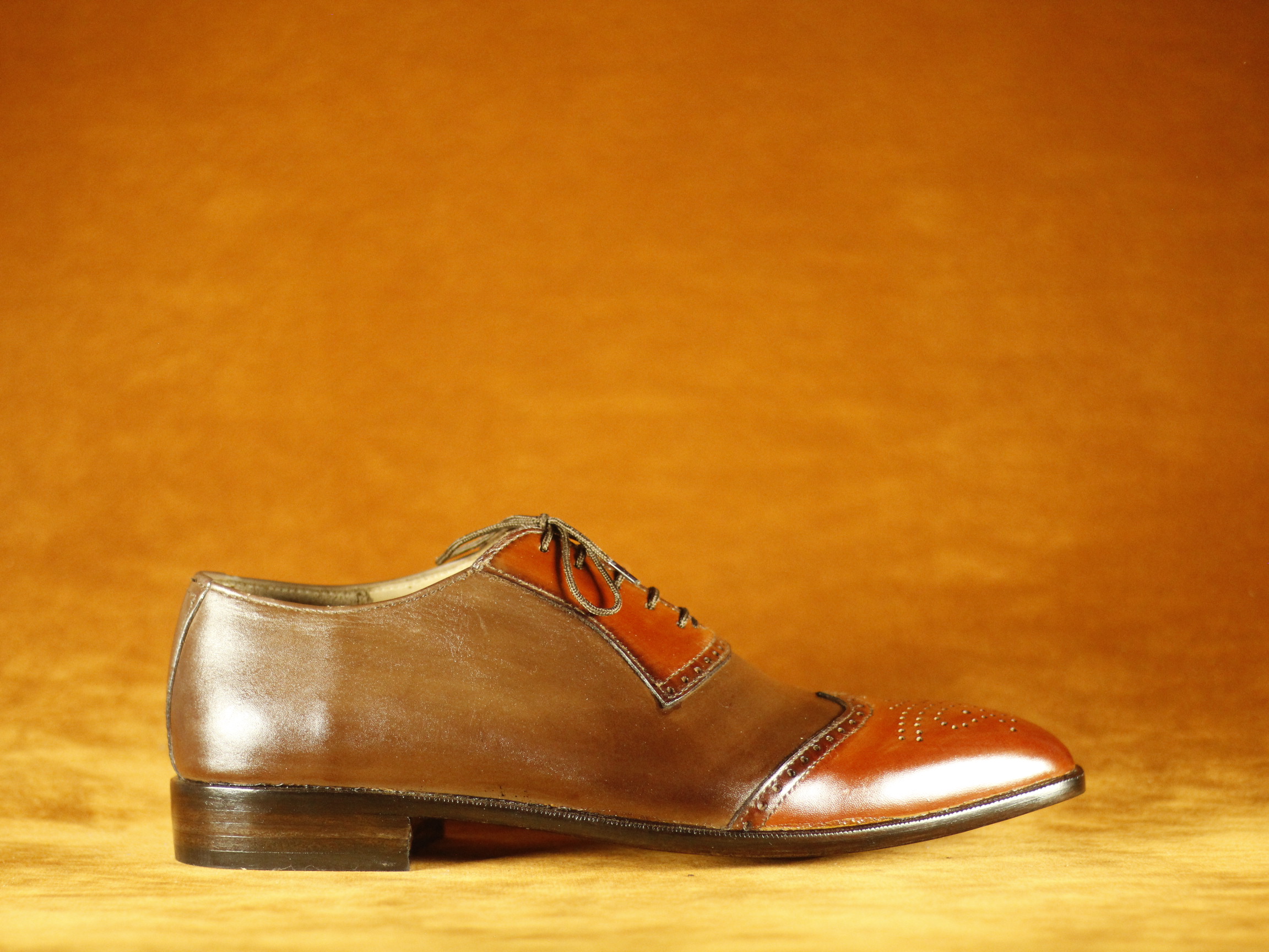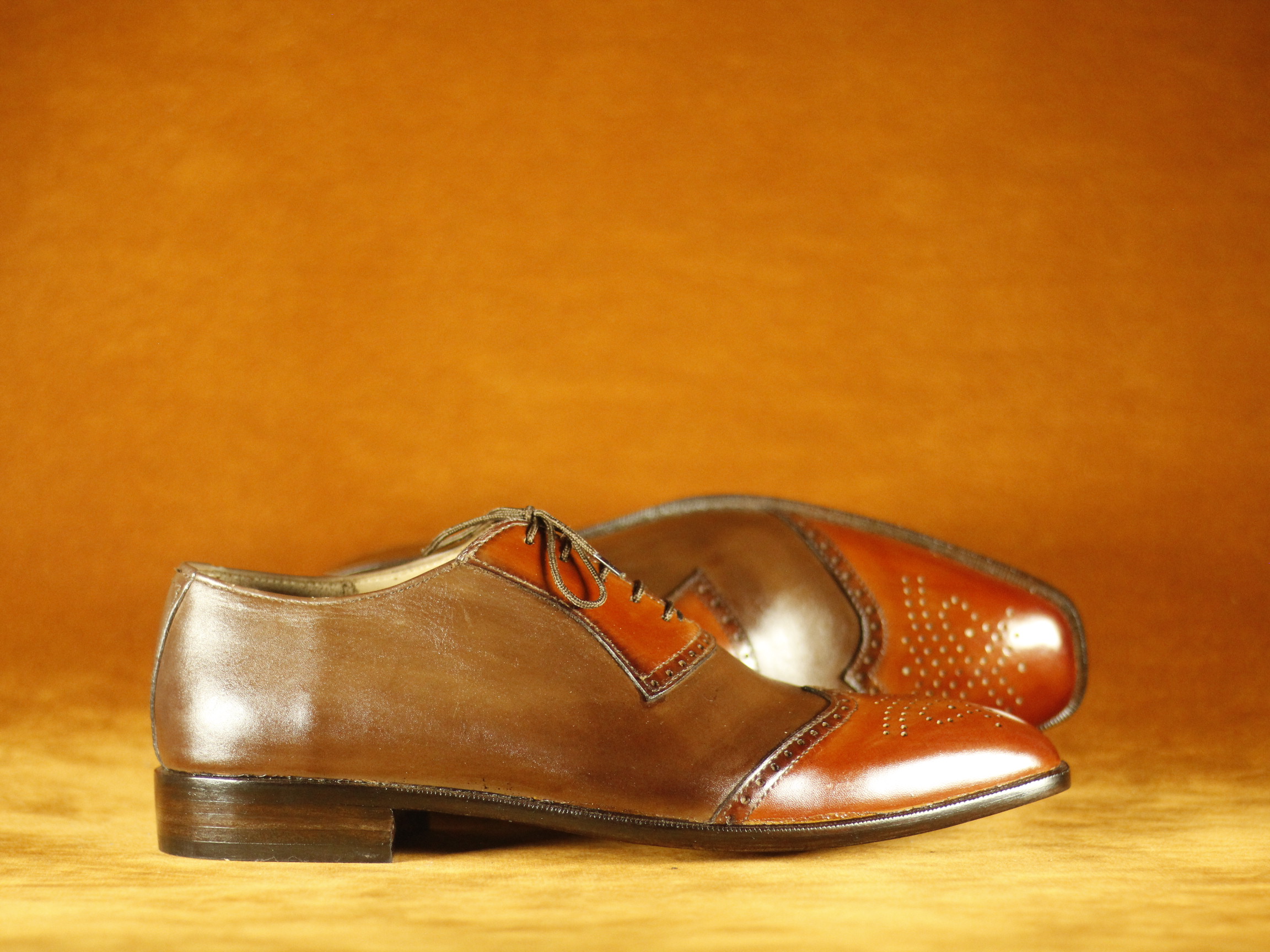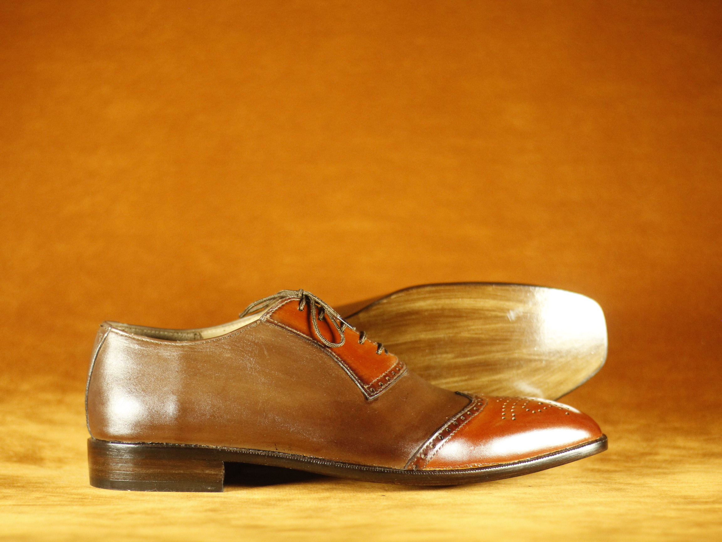 Two Tone Burgundy & Brown Formal Dress Wing Tip Leather Shoes