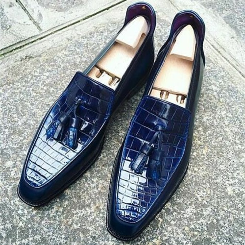 Royal Blue Alligator Texture Leather Tasseled Men's Style Loafers