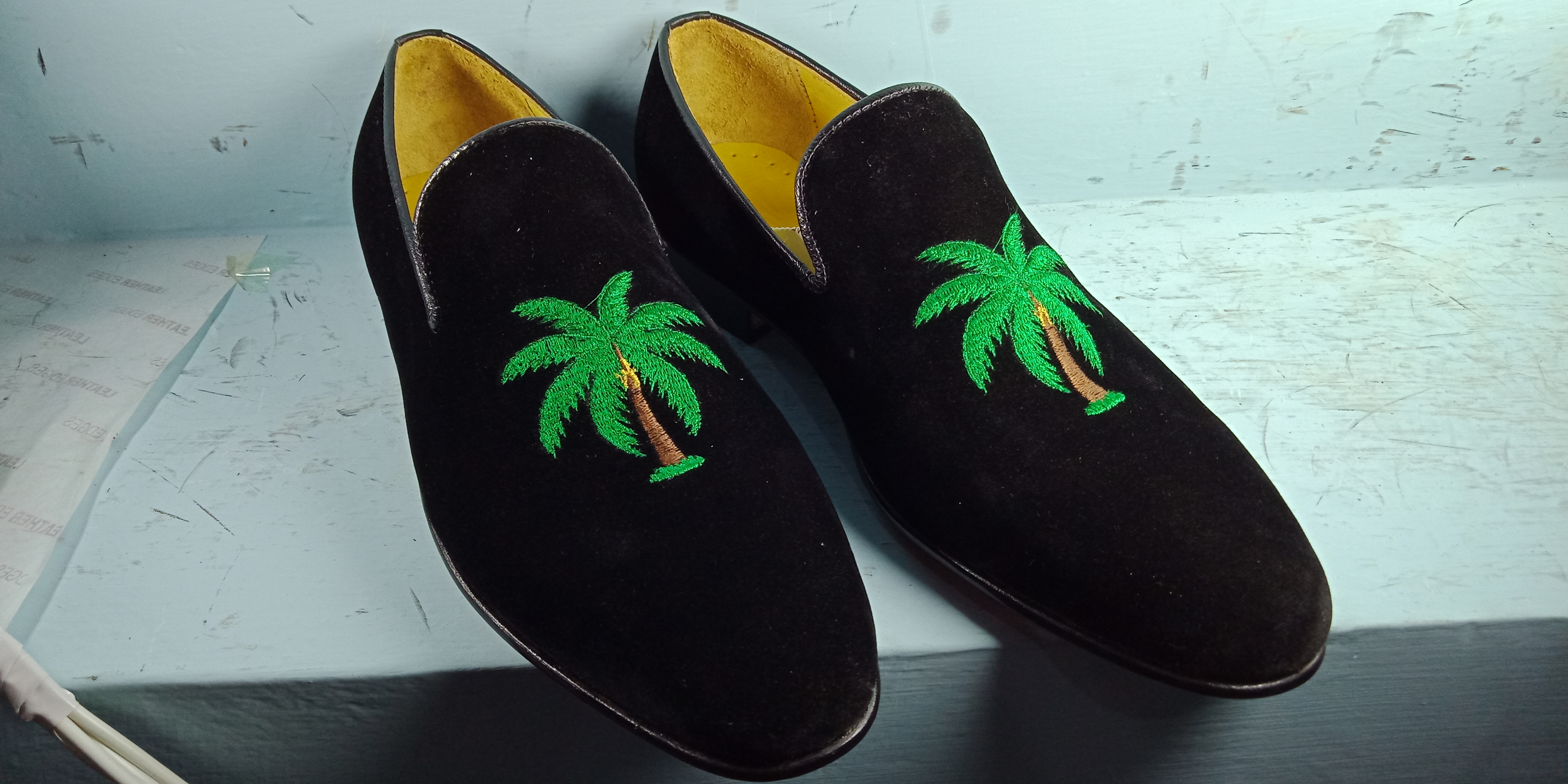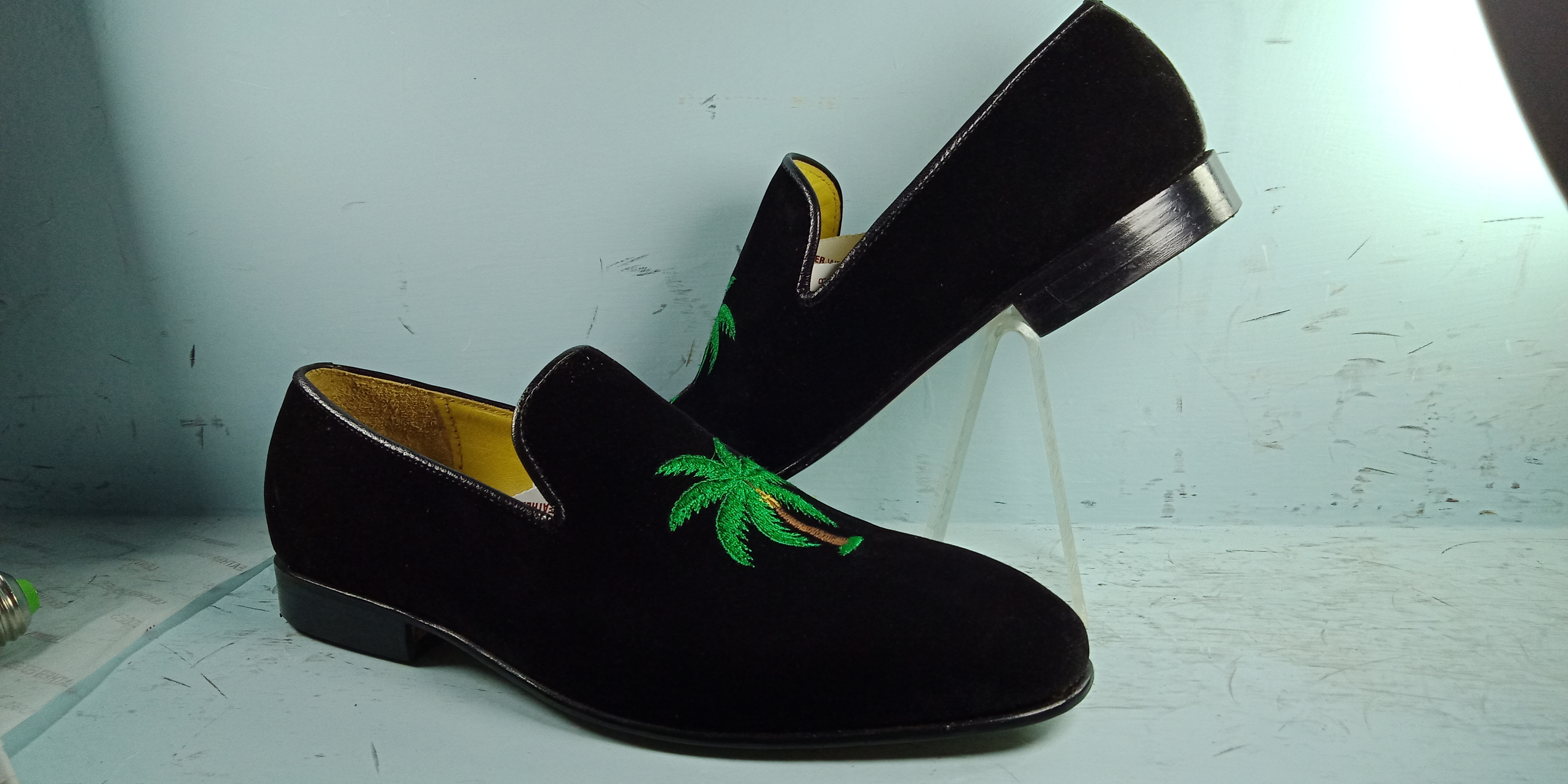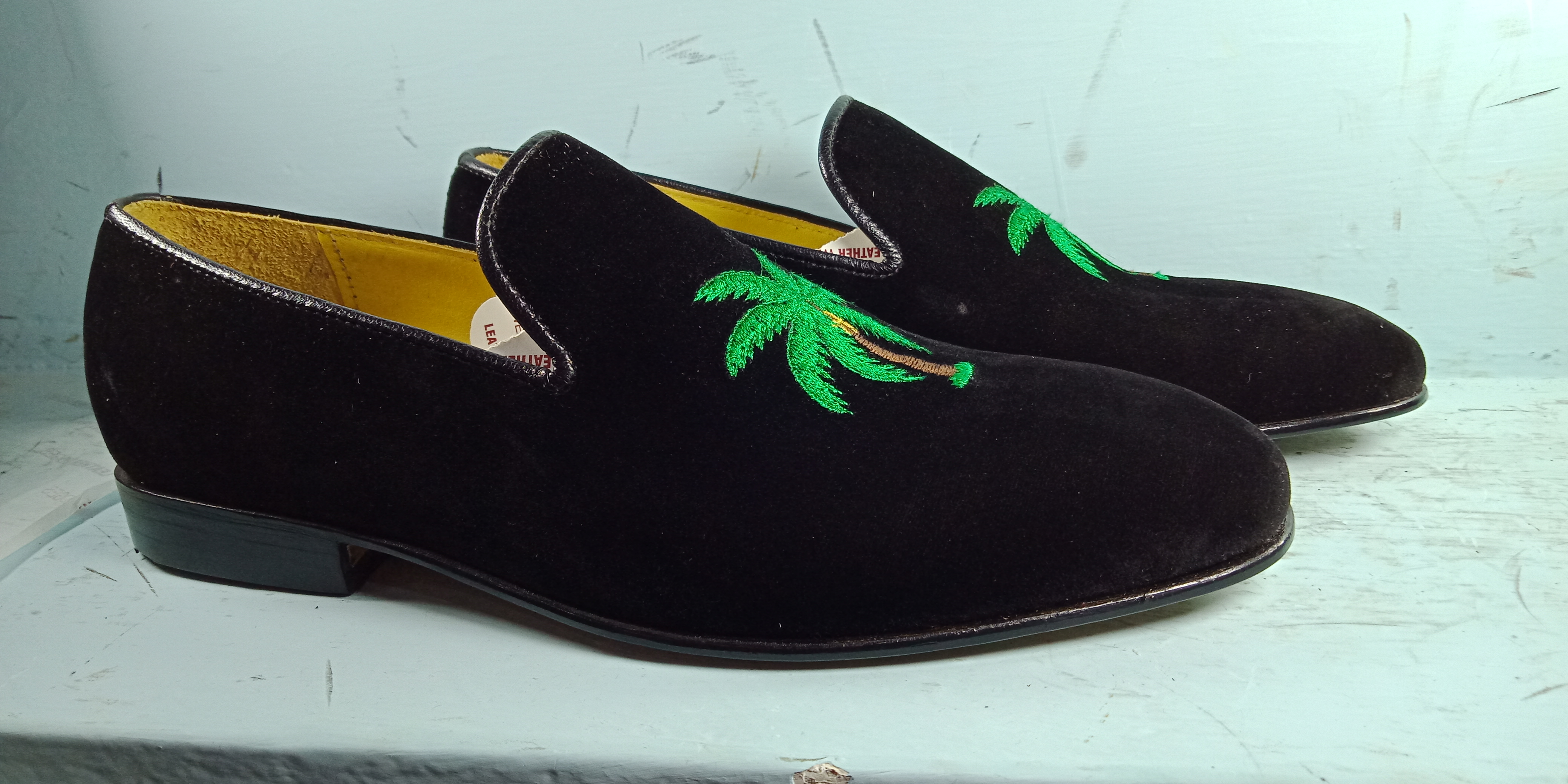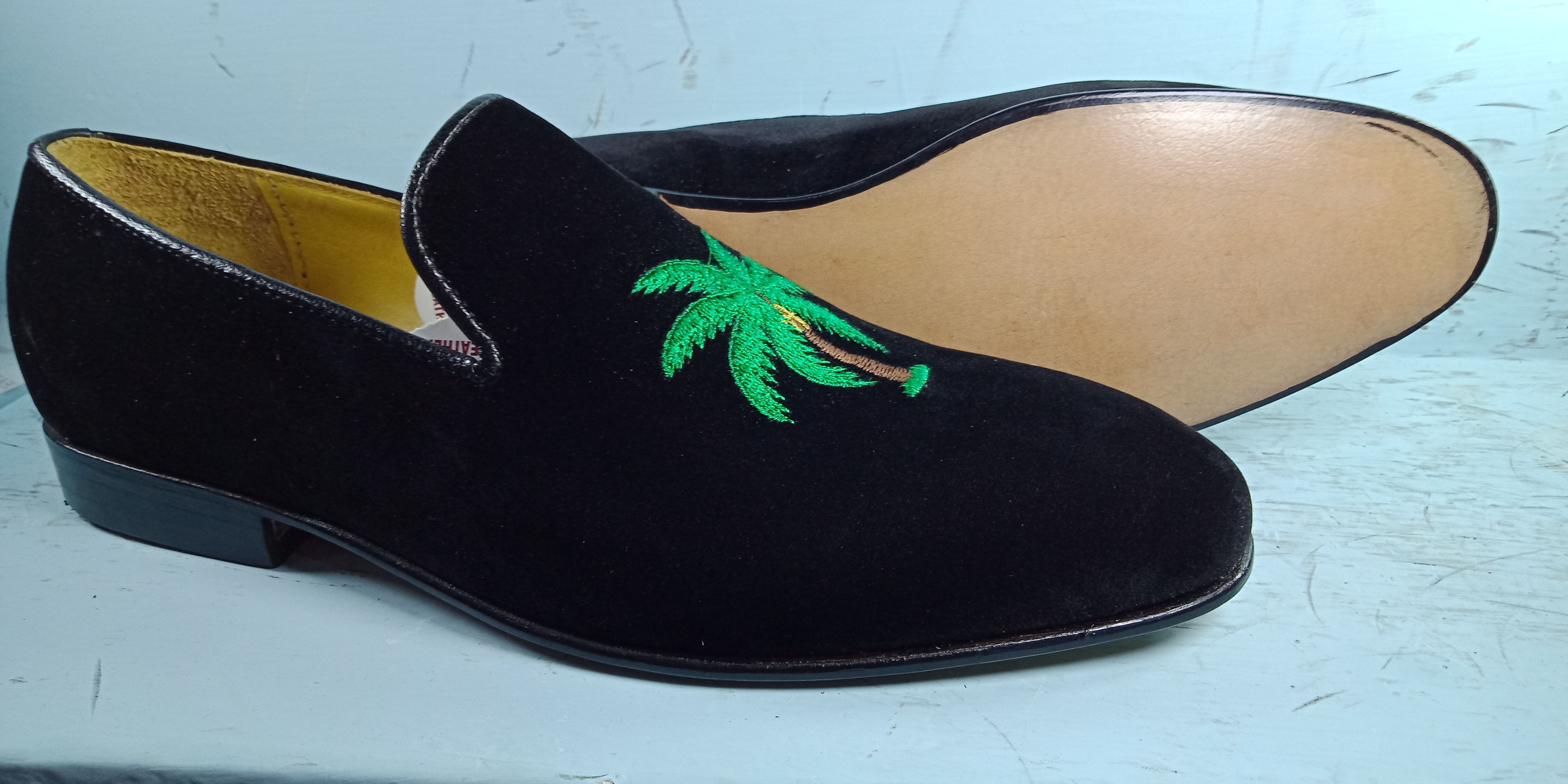 Stylish Black Velvet Embroidered Moccasin Leather Loafer For Men Foot Wear