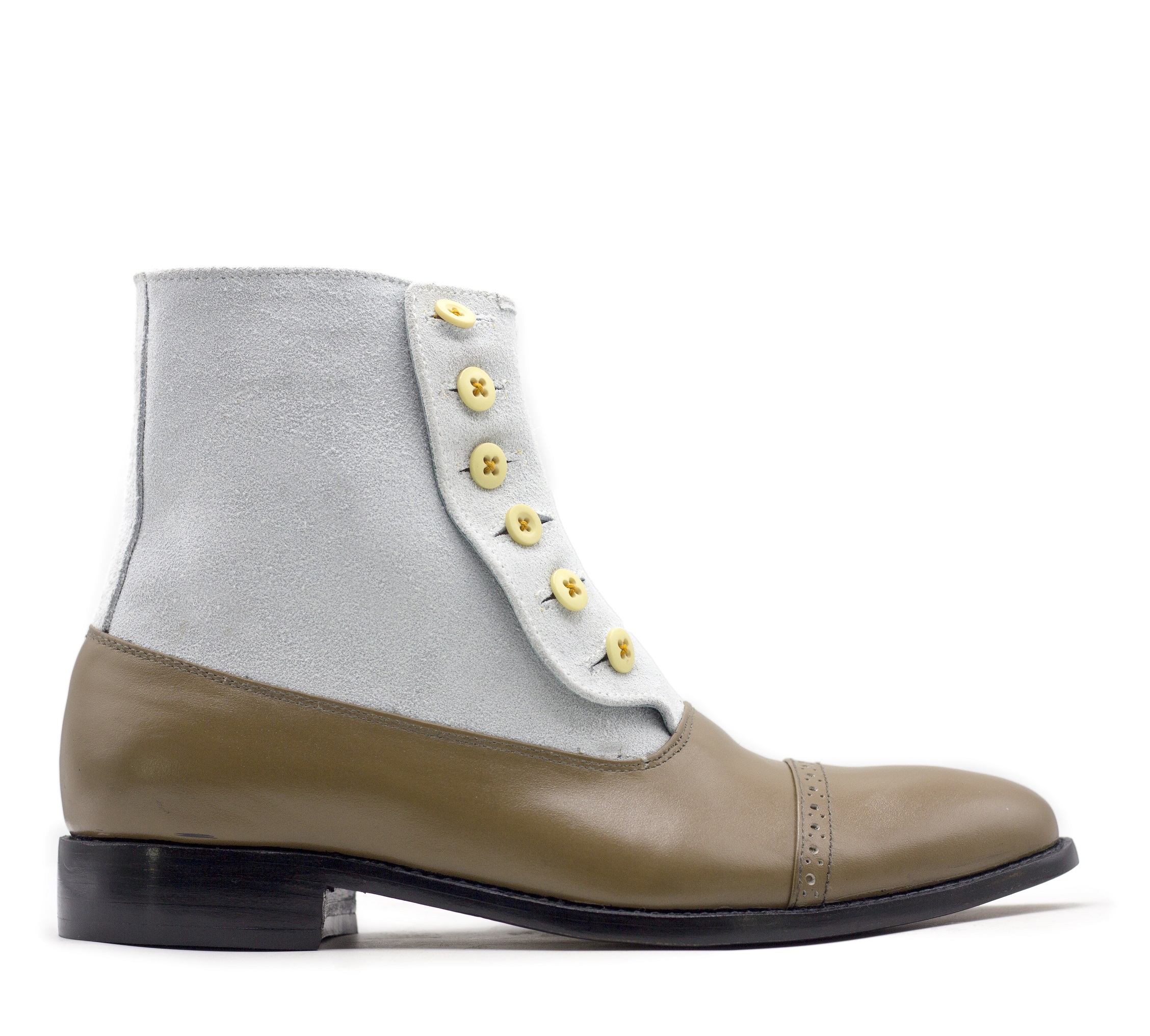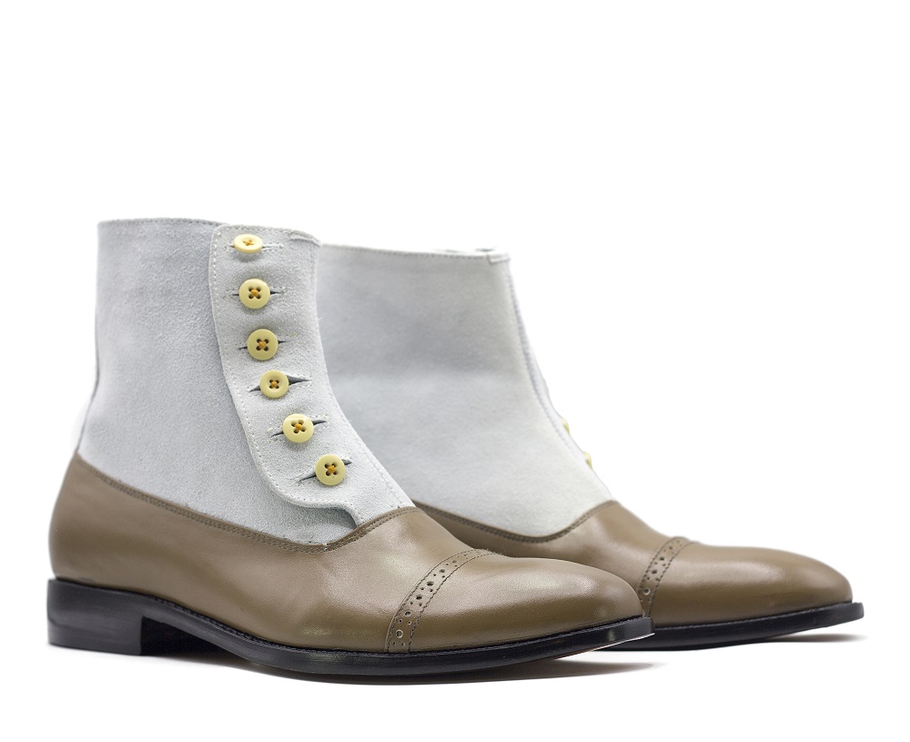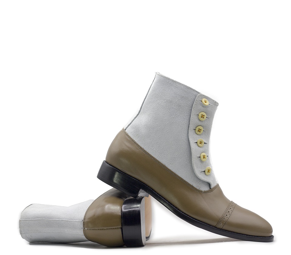 Handmade Ankle High Two Tone Cap Toe Button Top Leather Suede Boot