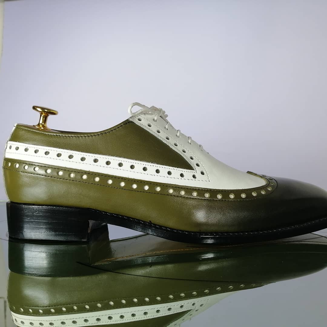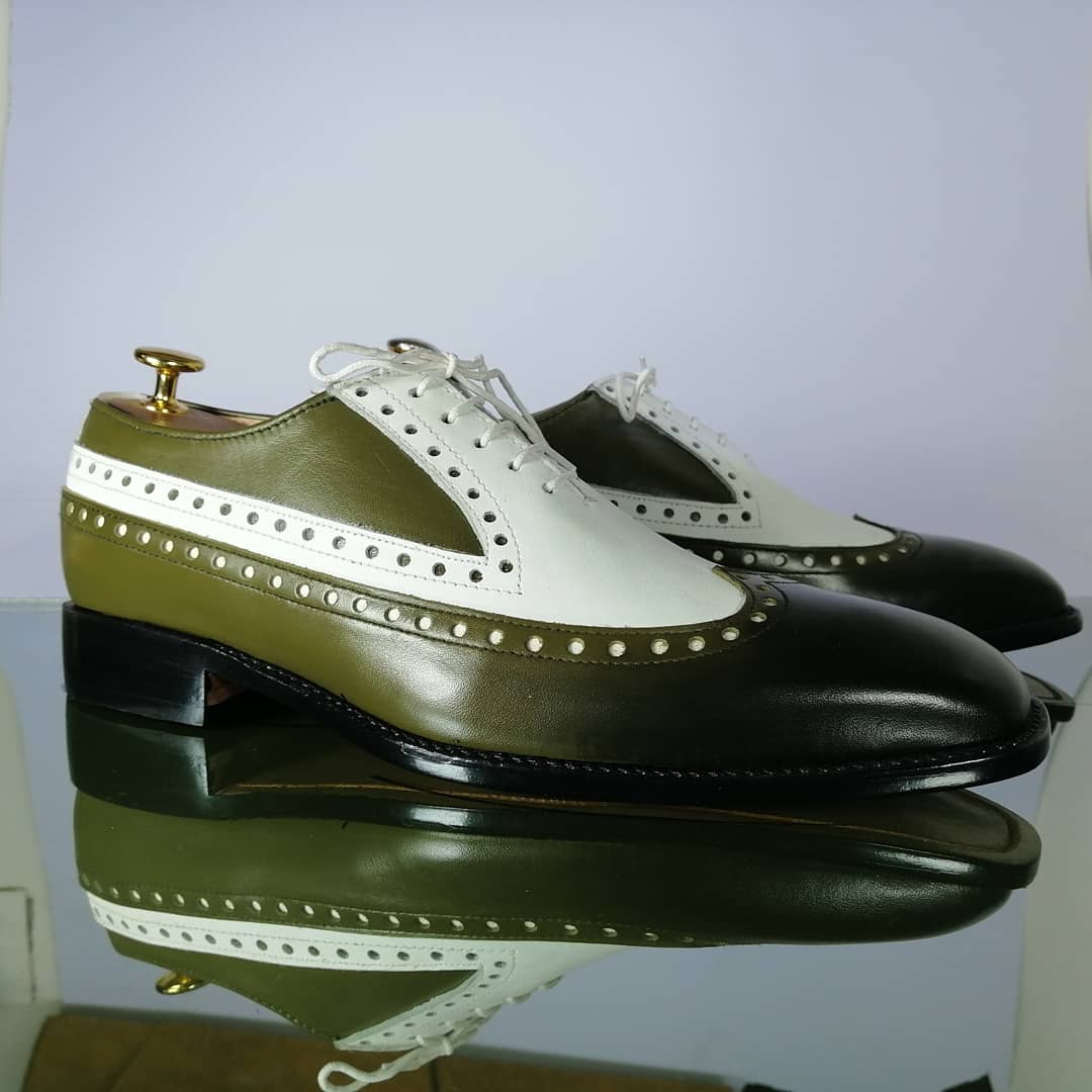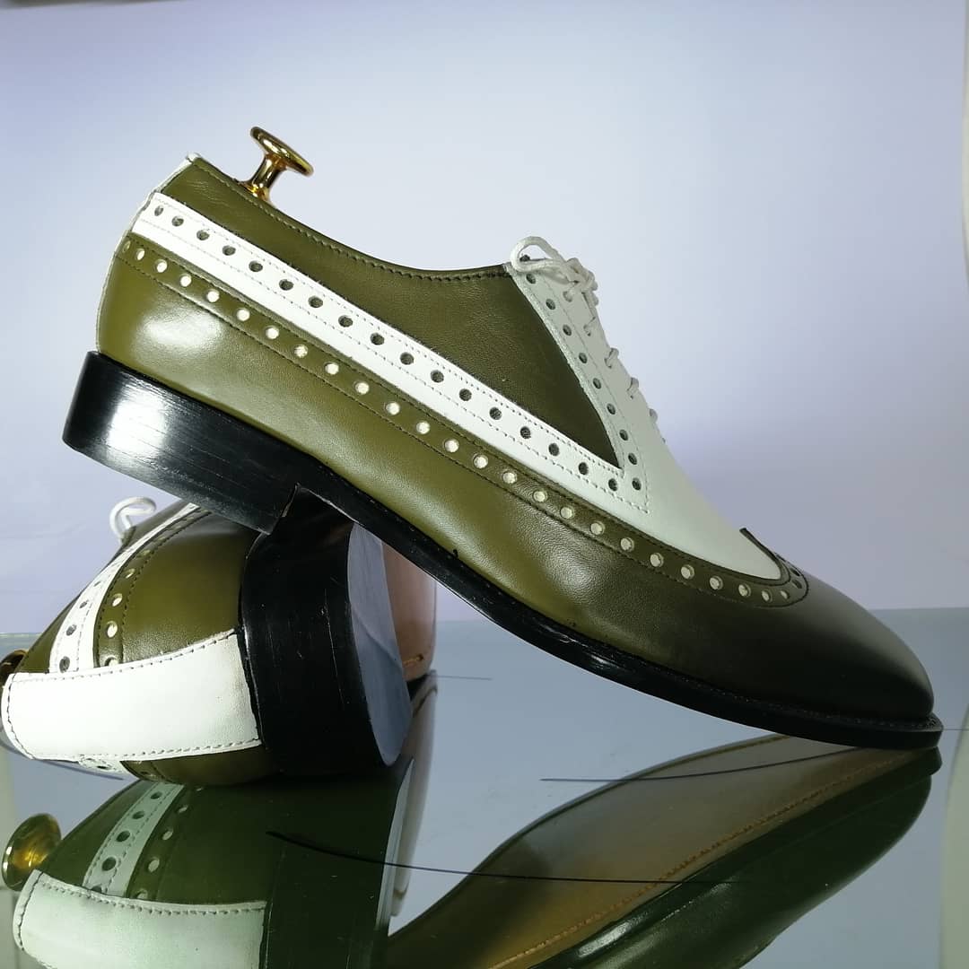 Wing Tip Handmade Two Tone Leather Brogue Lace Up Shoes