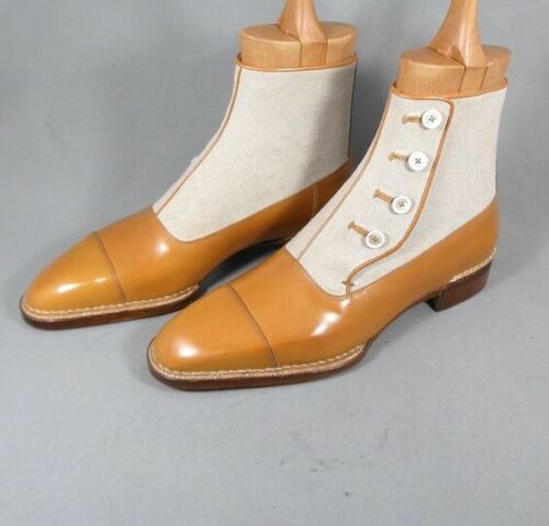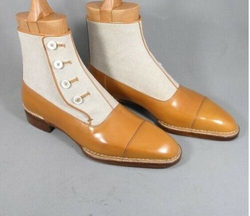 Handmade Two Tone Button Top Men's Ankle High Leather Suede Boots
