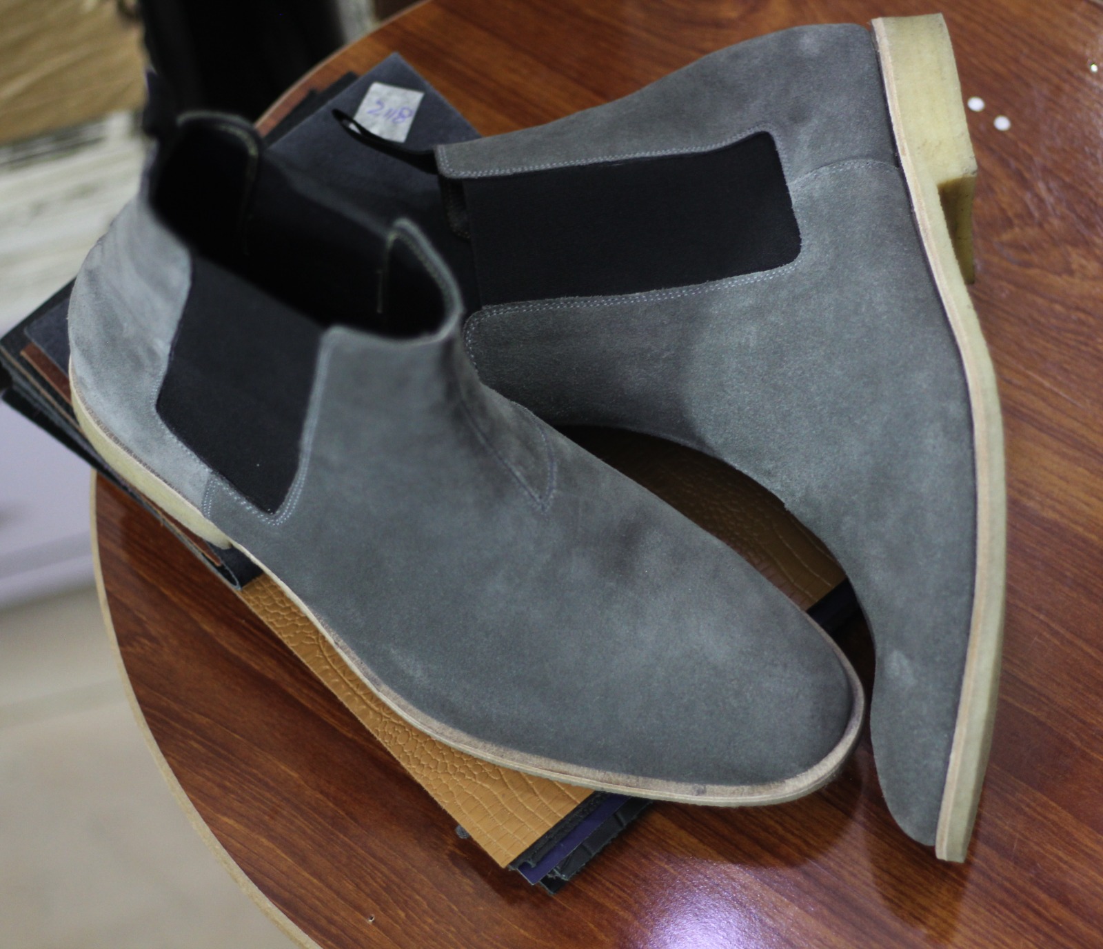 Men's Gray Suede Chelsea Ankle Handmade Boots