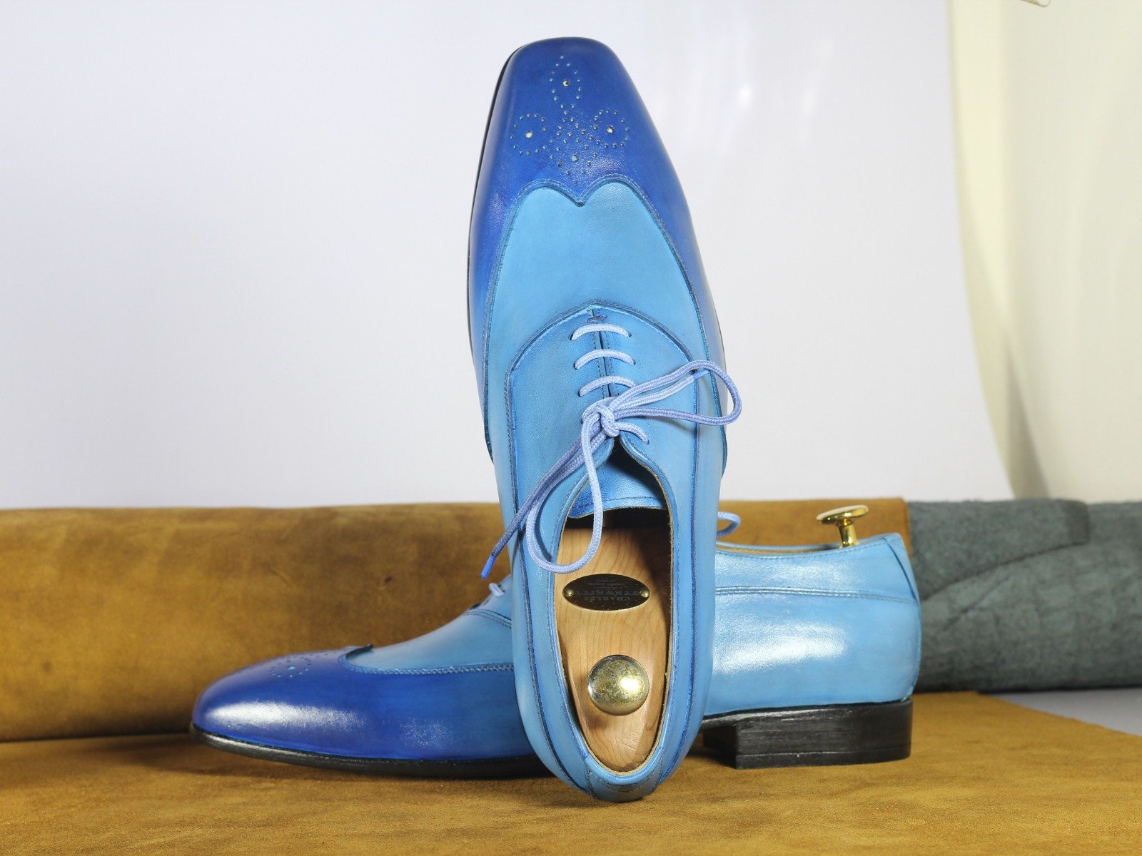 Handmade Two Tone Leather Mens Lace Up Wing Tip Brogue Office Shoes