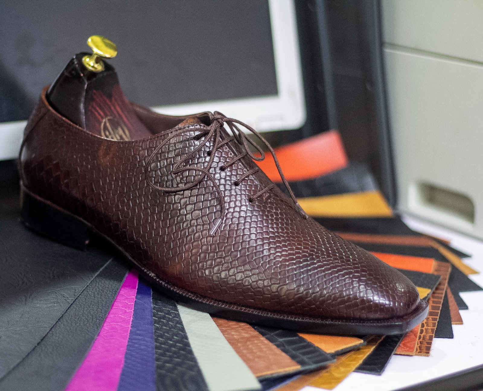 Handmade Men's python Leather Lace Up Fashion Chocolate Dress Shoes