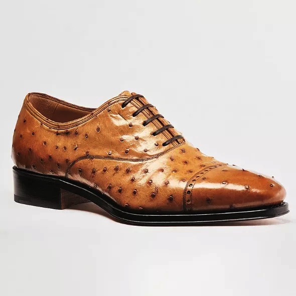 Handmade Men's Brown Ostrich Leather Lace Up Cap Toe Fashion Shoes