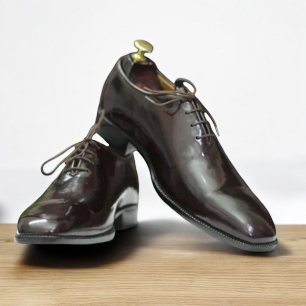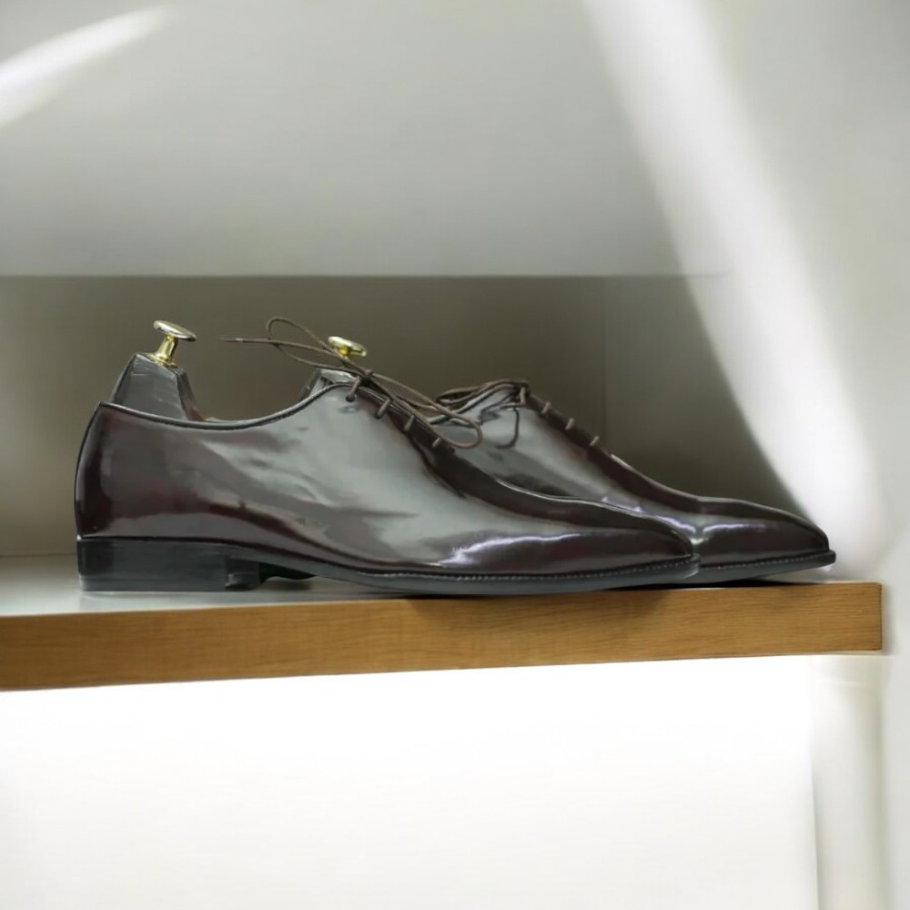 Men's Burgundy Leather Cap Toe Shoes, Lace Up Shoes