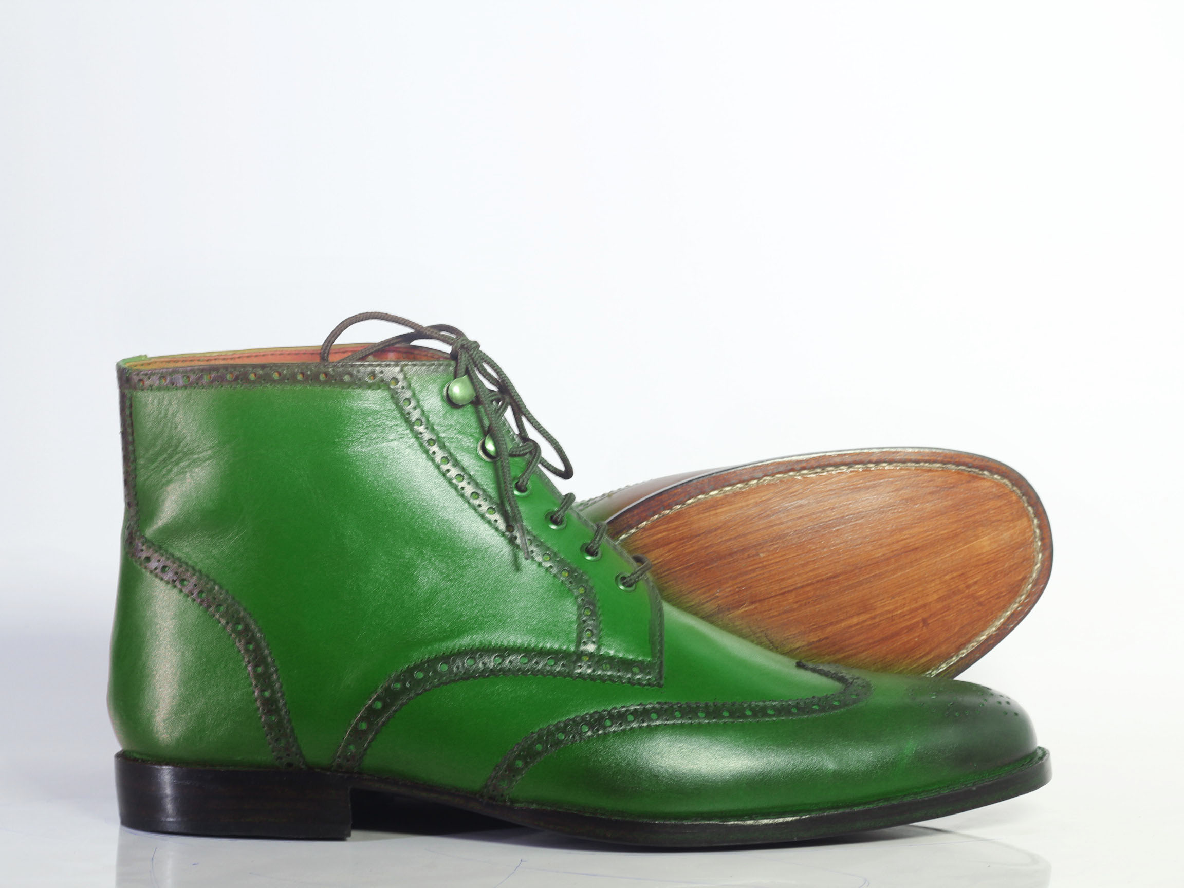 Leather Ankal High Men's Boot Green Lace Up Handmade
