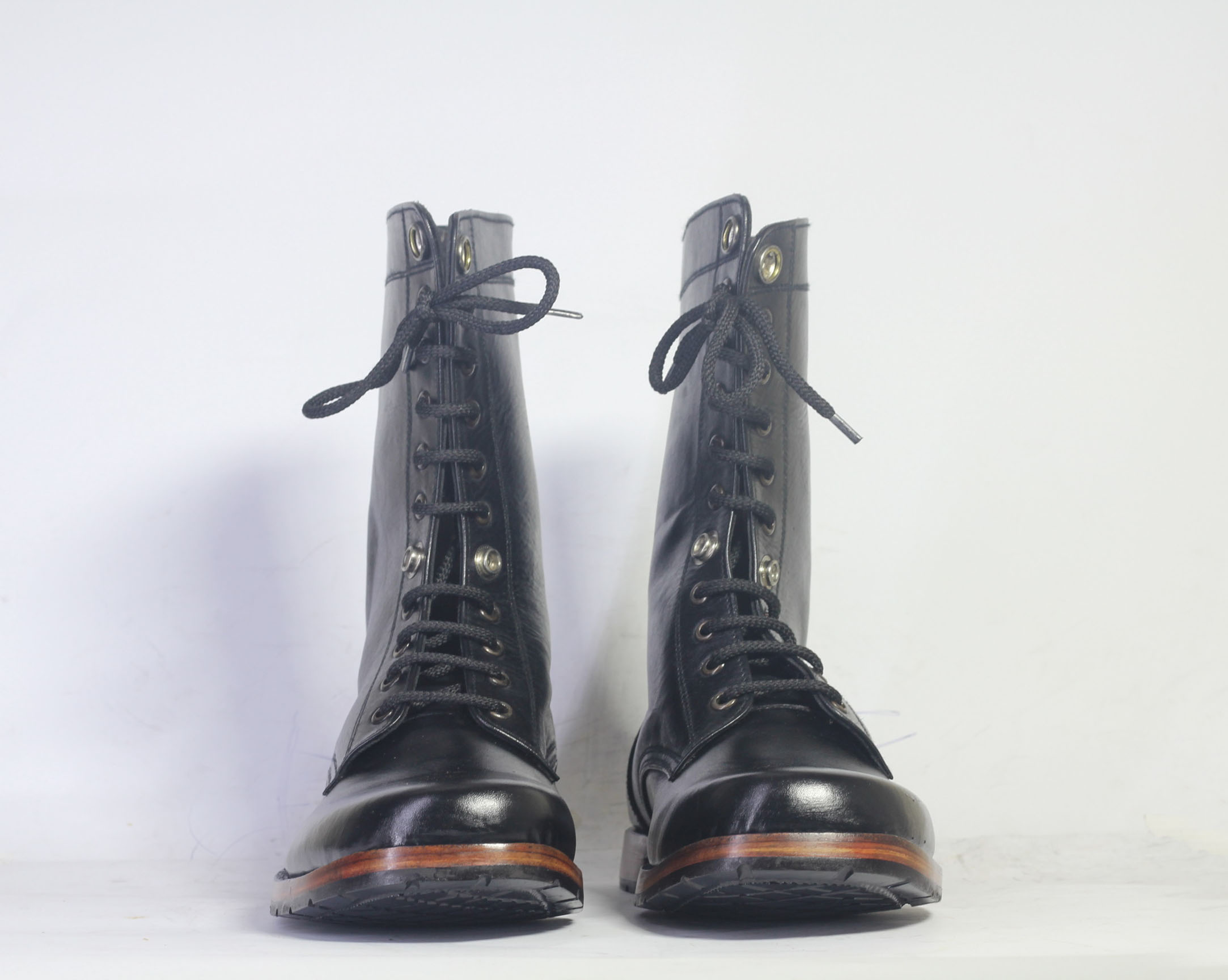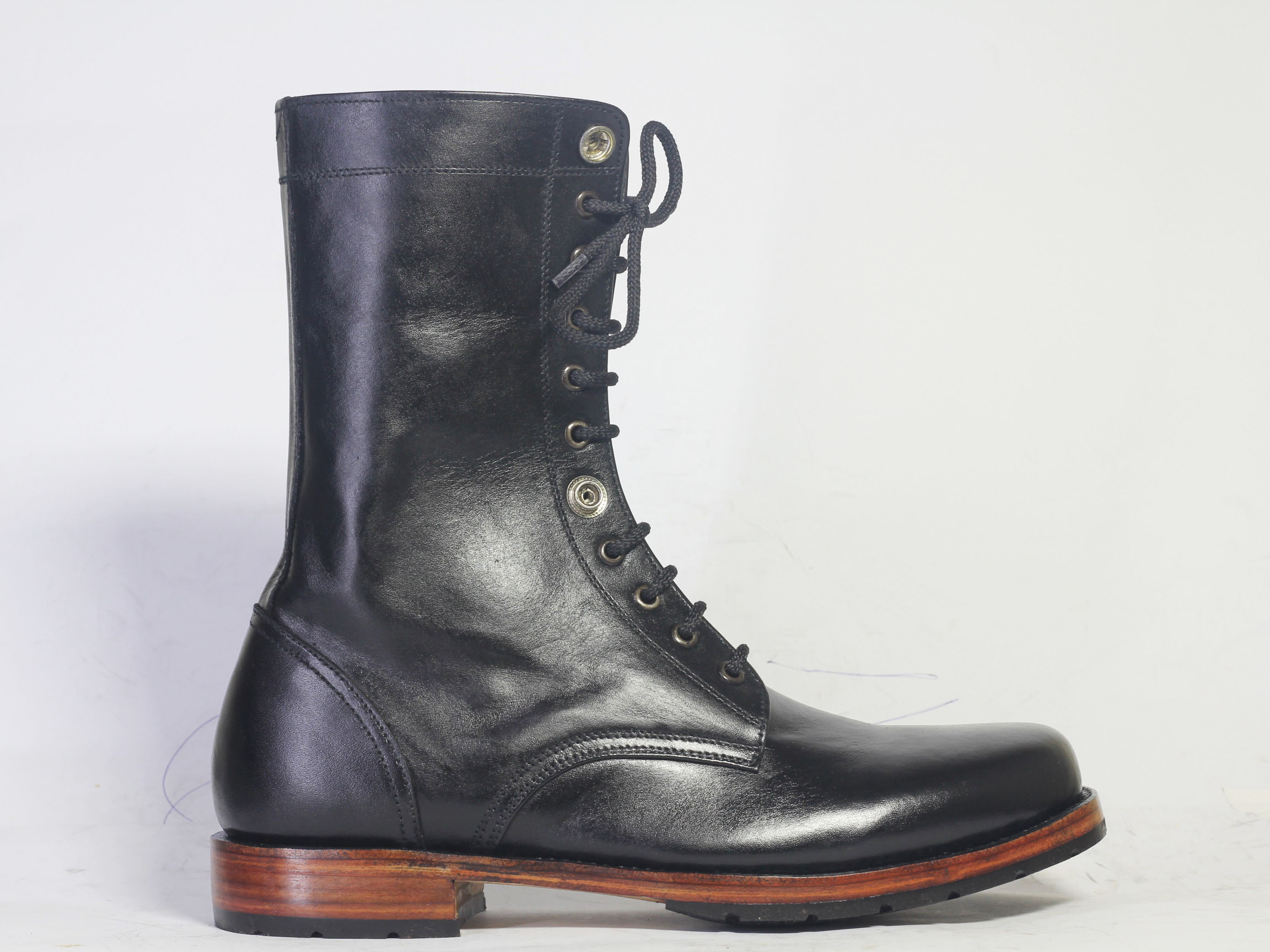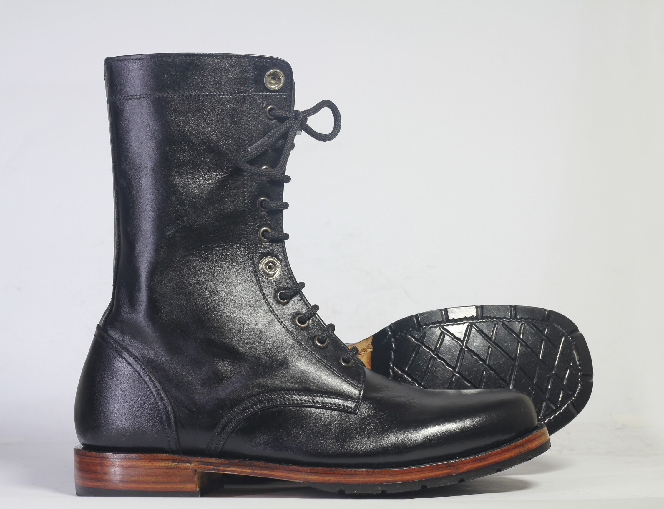 Handmade Ankle High Men's Black Leather Lace Up Boot