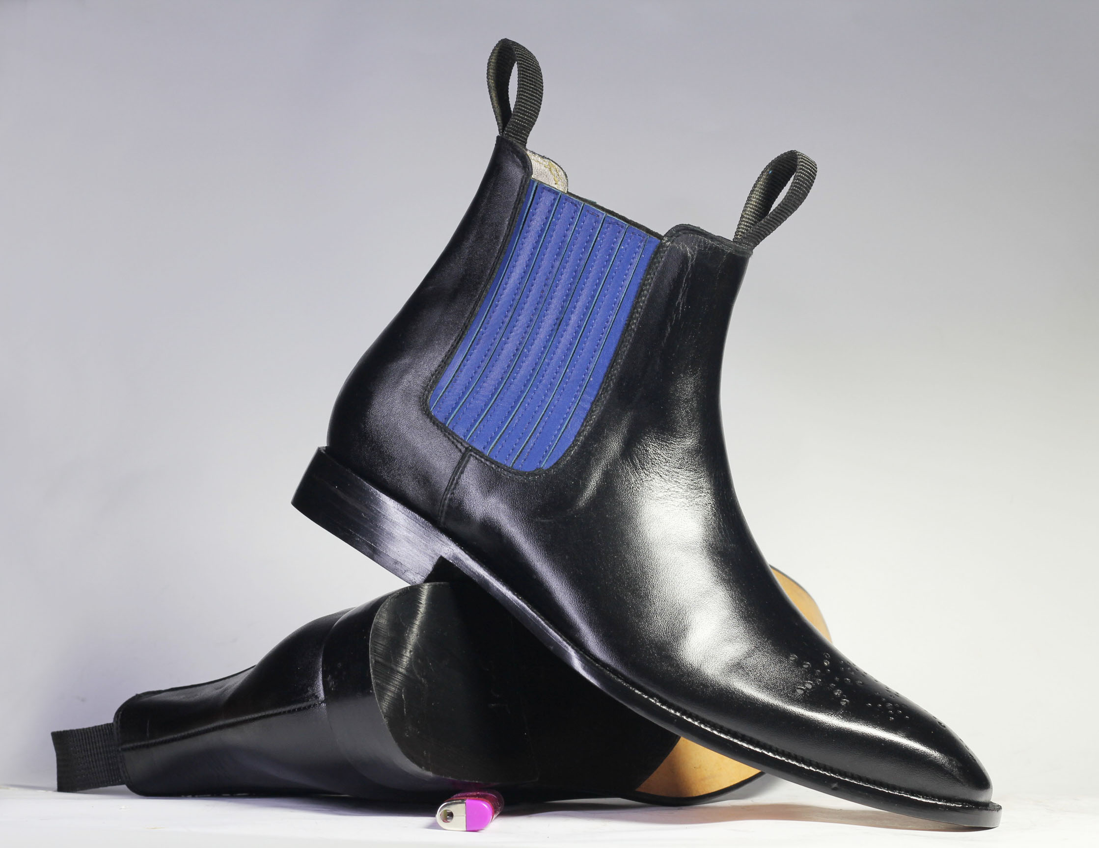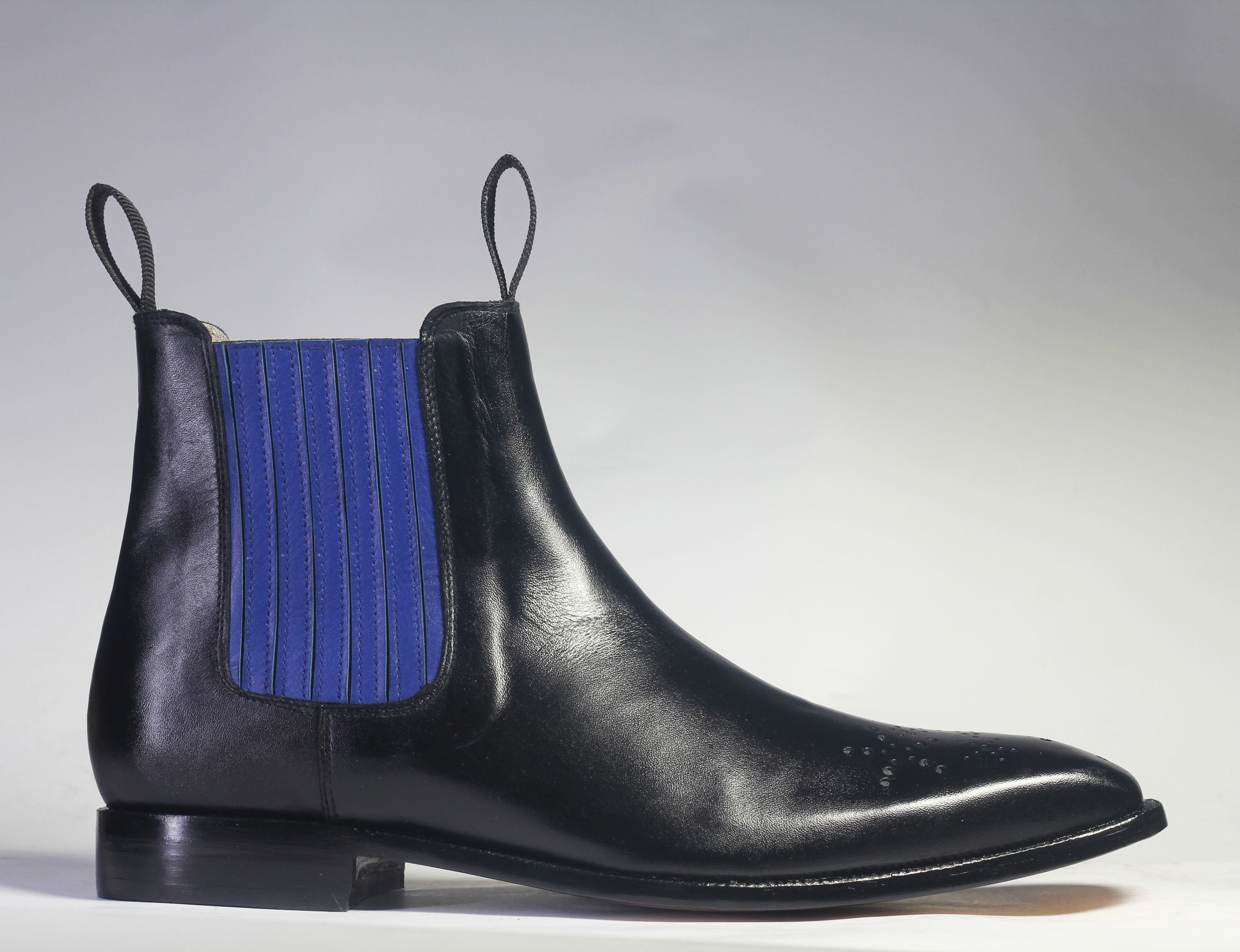 Handmade Leather Chelsea Men's Black Brogue Toe Boots