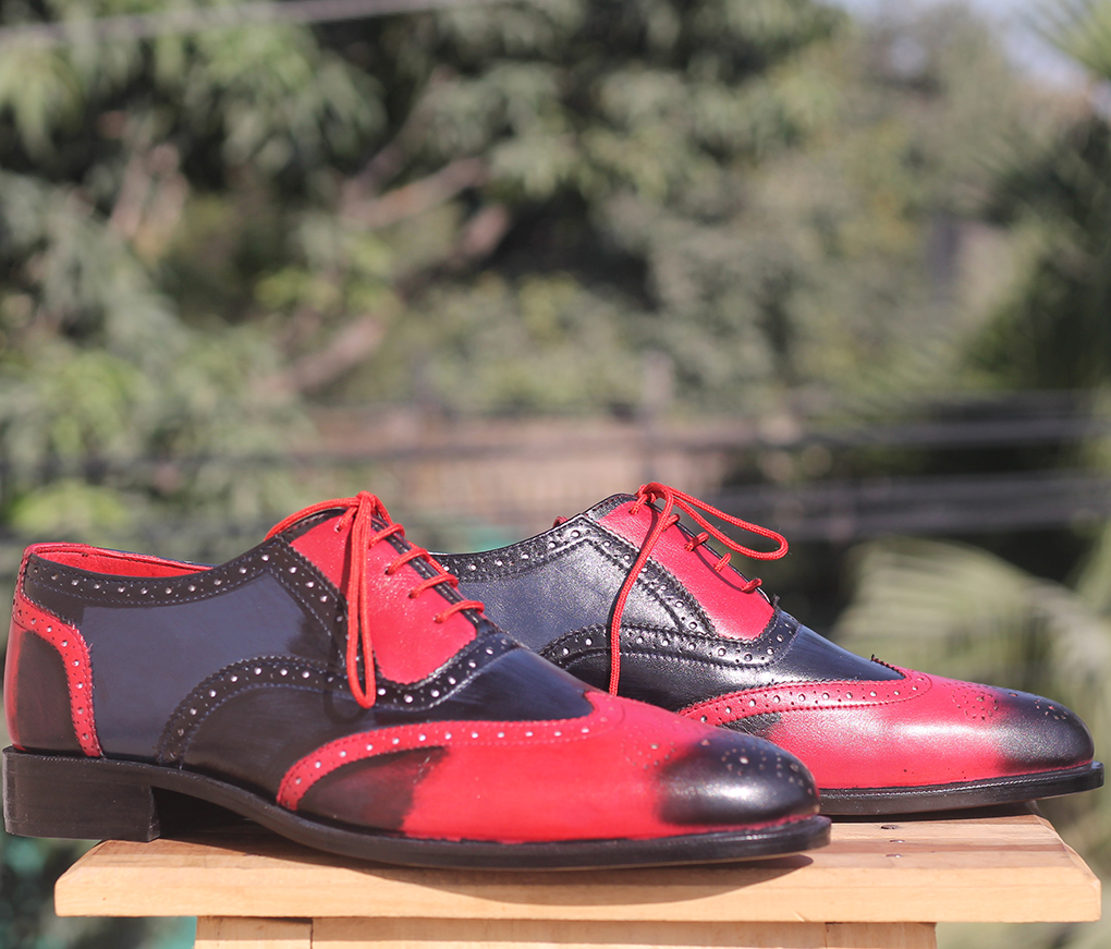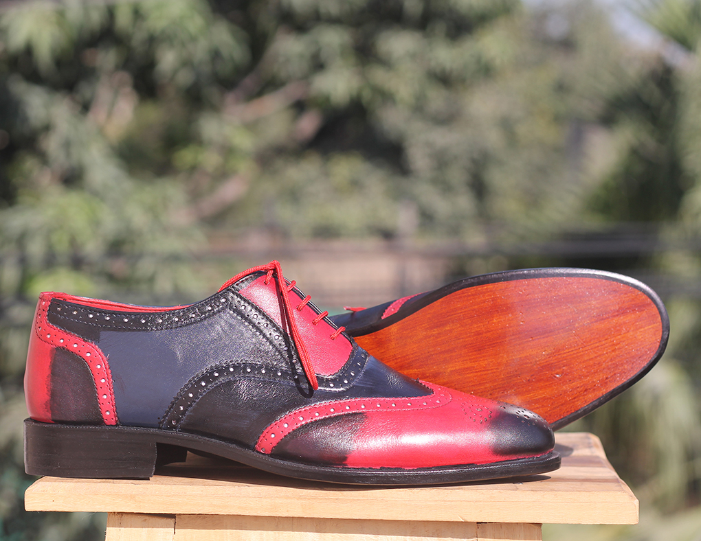 Handmade Men's Multi Color Brogue Leather Shoes