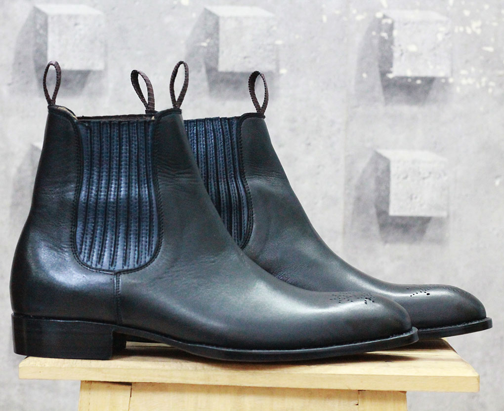 Chelsea Black Stylish Ankle Boots For Men's Handmade