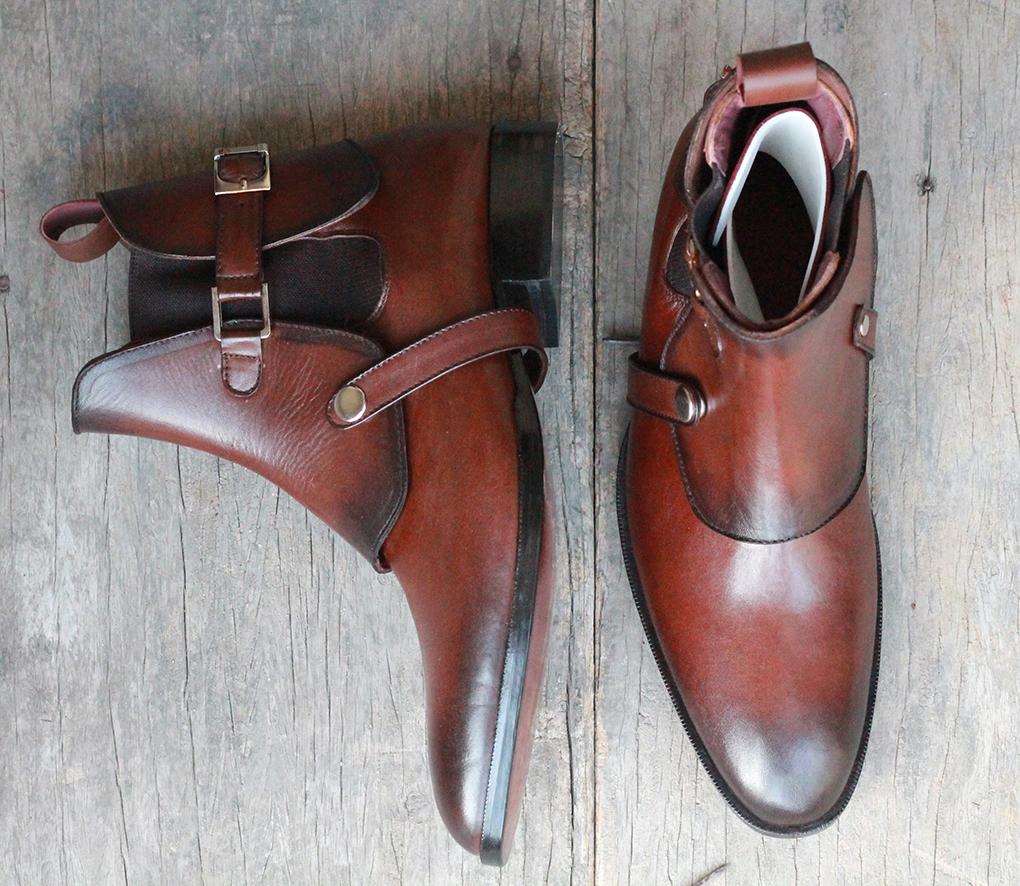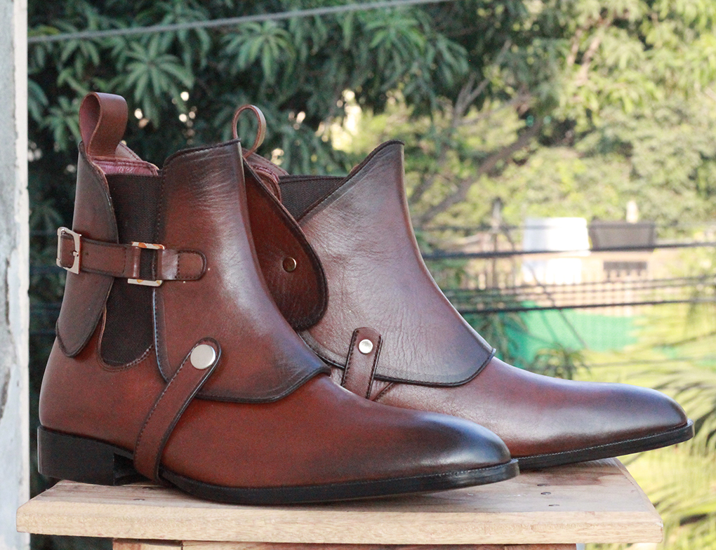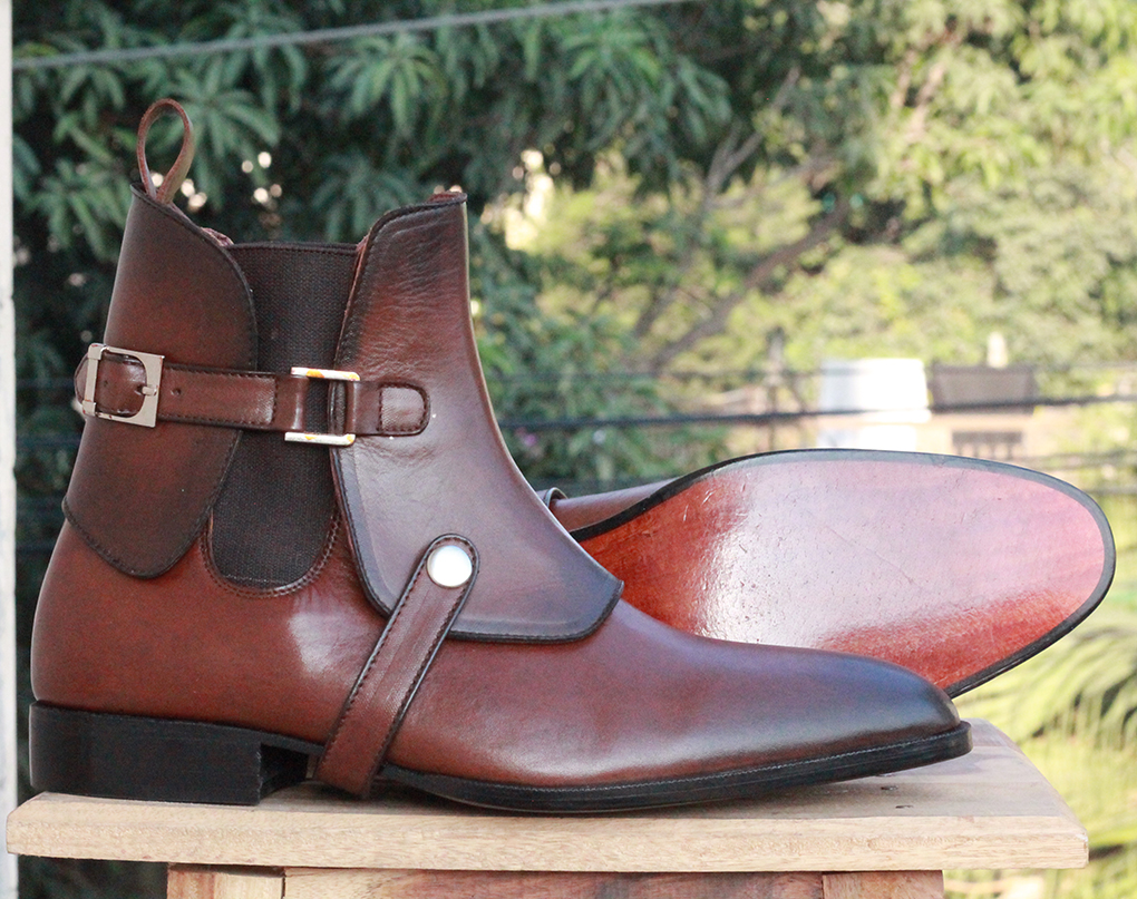 Handmade Men's Chelsea Buckle Brown Leather Boots