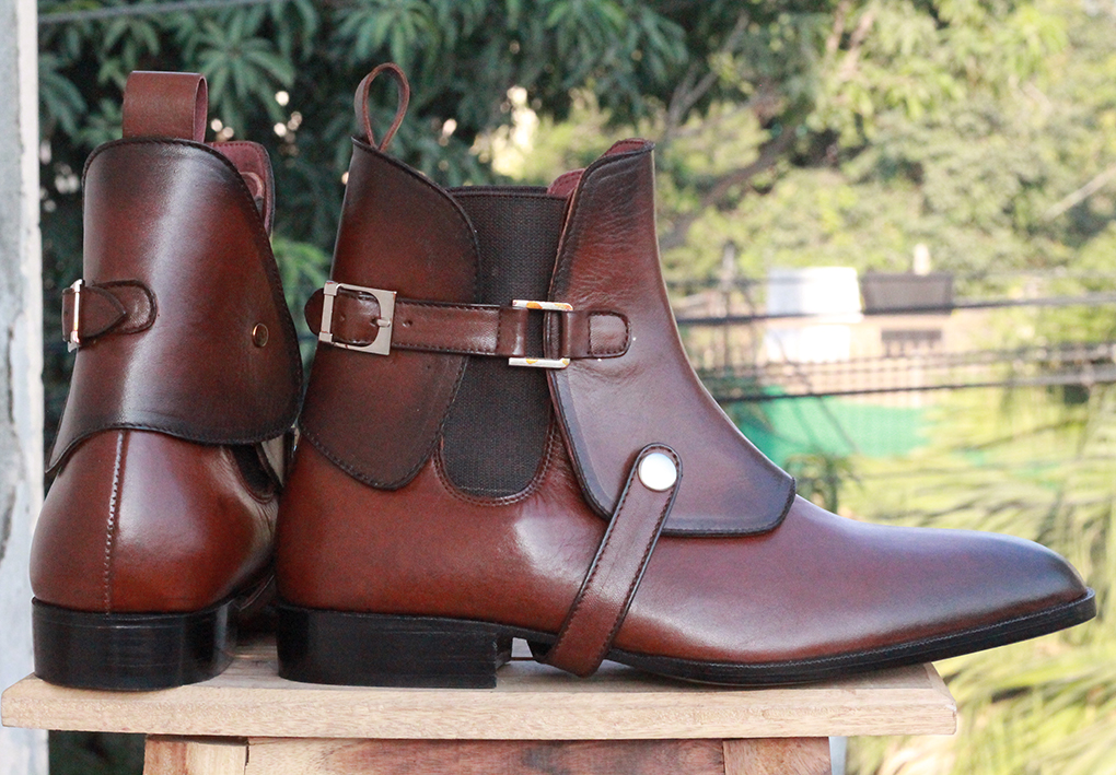 Men's Chelsea Boots Leather Brown Buckle Handmade