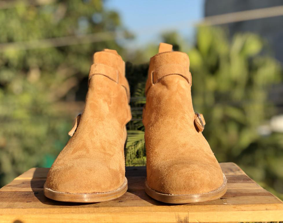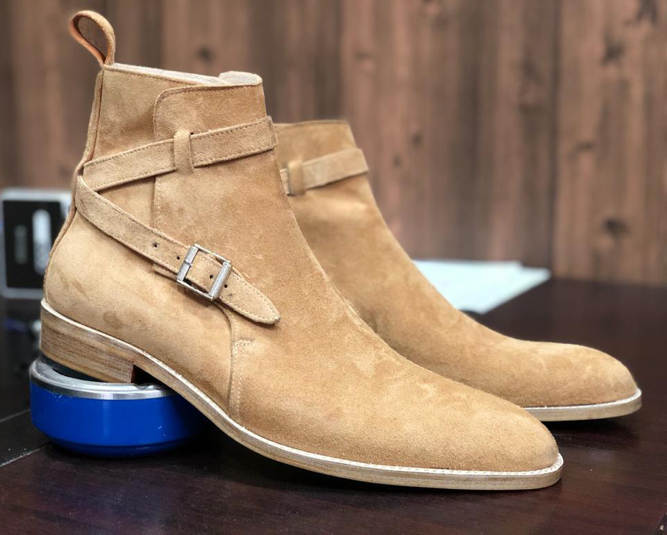 Handmade Jodhpurs Ankle High Beige Suede Leather Boots For Men