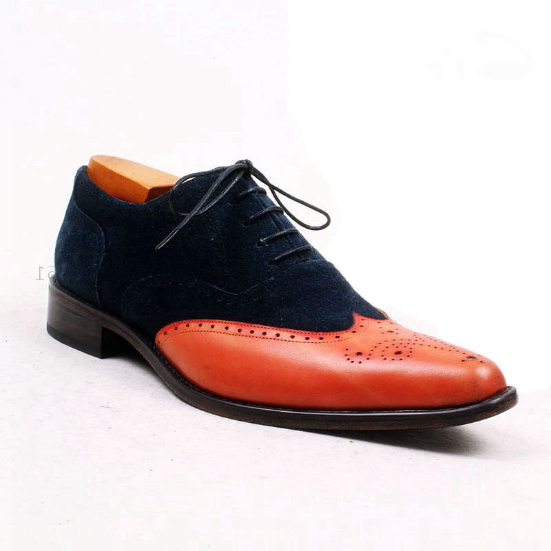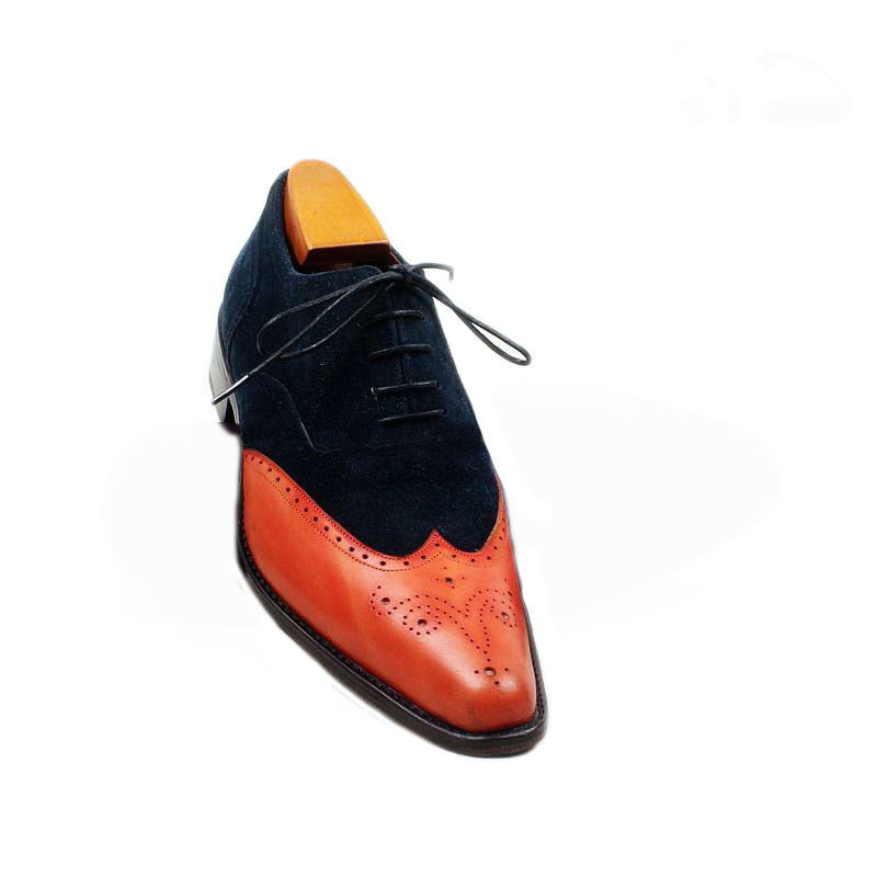 Men's Wing Tip Tan Navy Blue Suede Leather Shoes