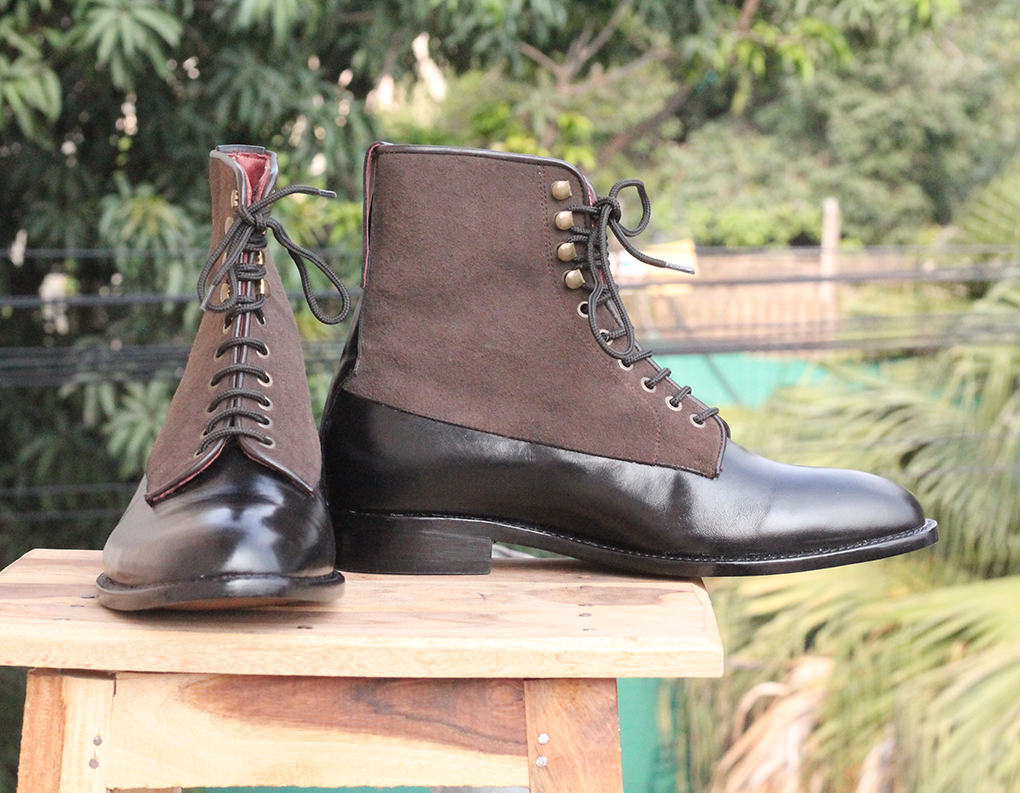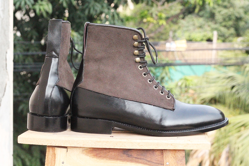 Handmade Men's Ankle High Black Two Tone Leather Boots