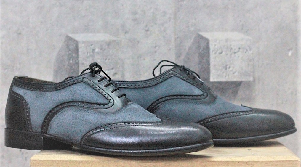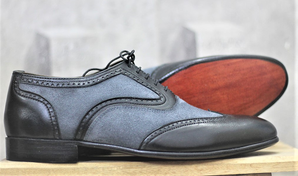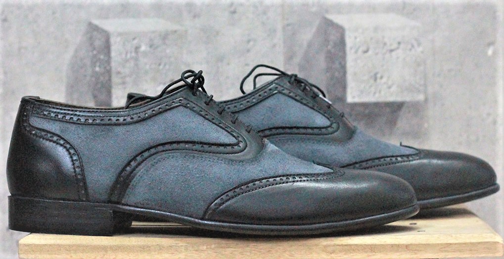 Handmade Men's Black Grey Lace Up Leather Shoes