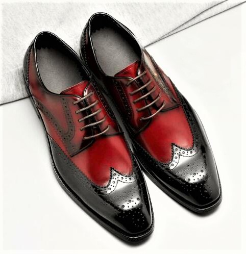 Handmade Men's Wing Tip Oxford Brogue Leather Shoes