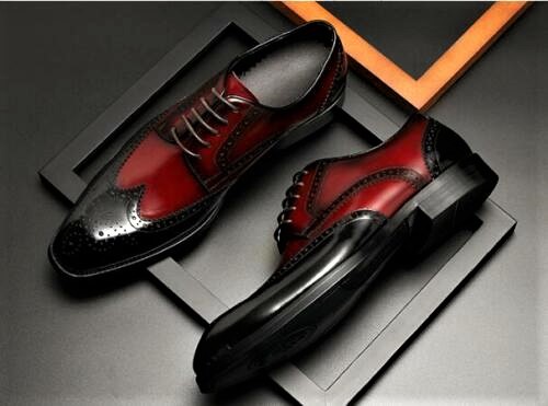 Men's Brogue Wing Tip Oxford Leather Lace Up Shoes
