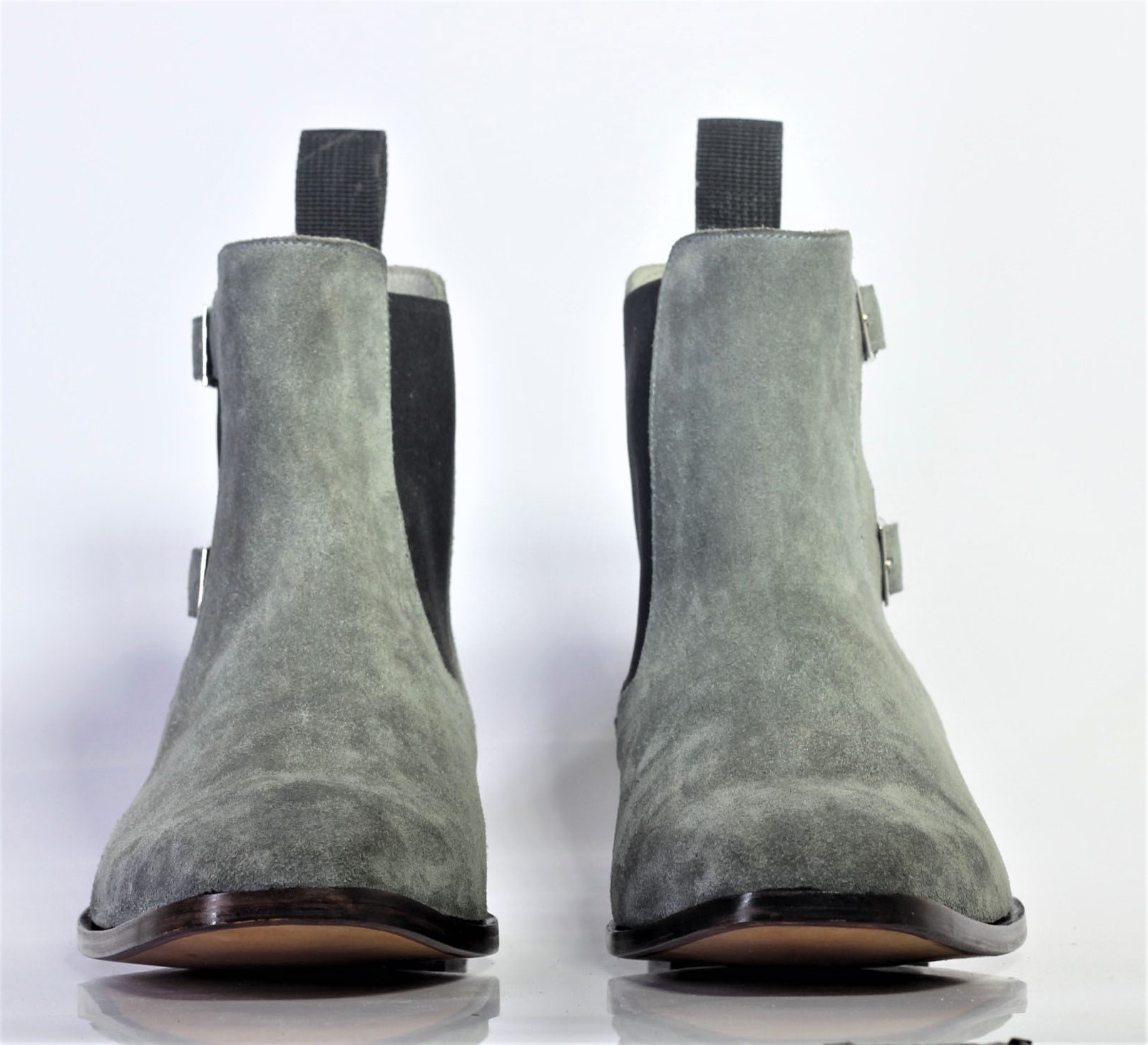 Ankle High Grey Suede Leather Jodhpurs Boots For Men