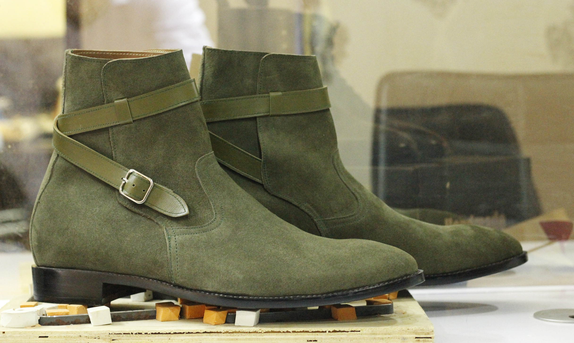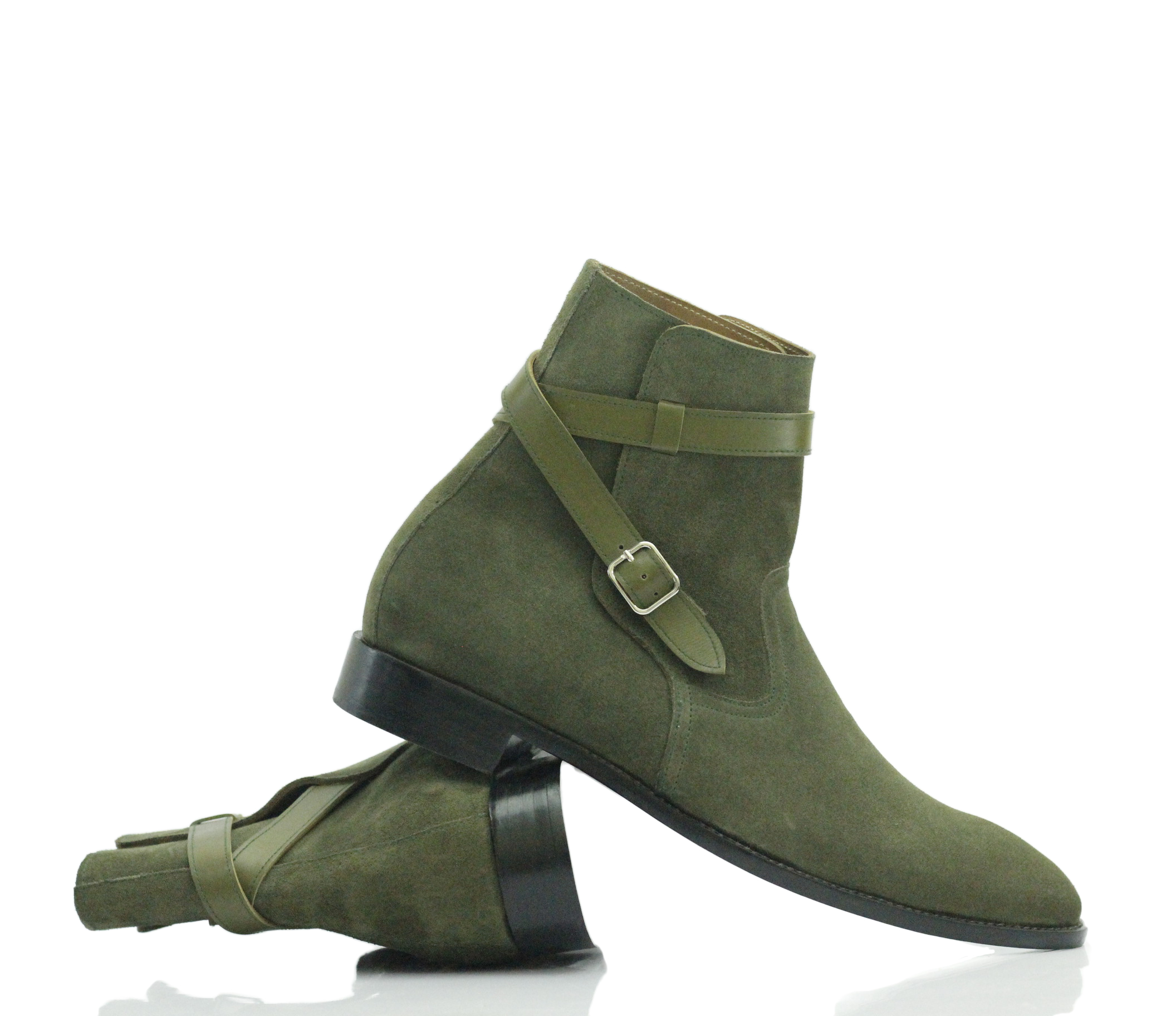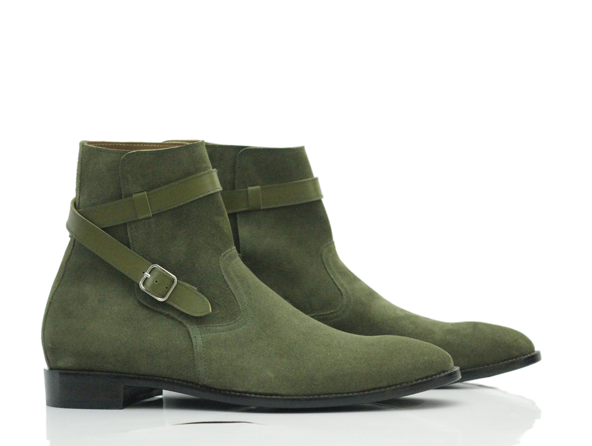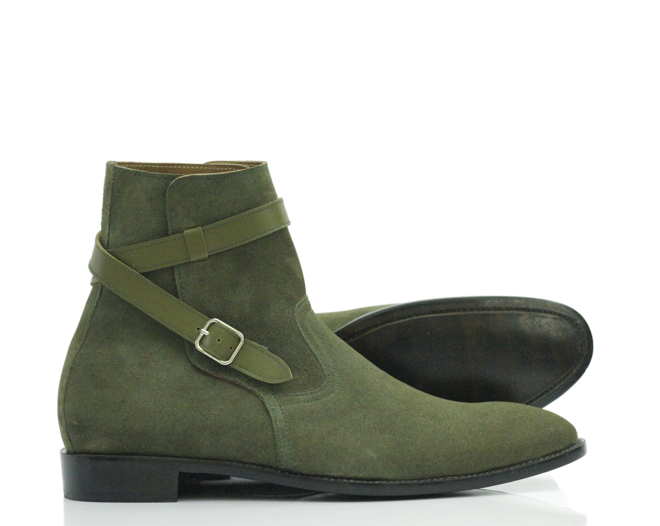 Suede Green Jodhpurs Ankle High Leather Boots For Men