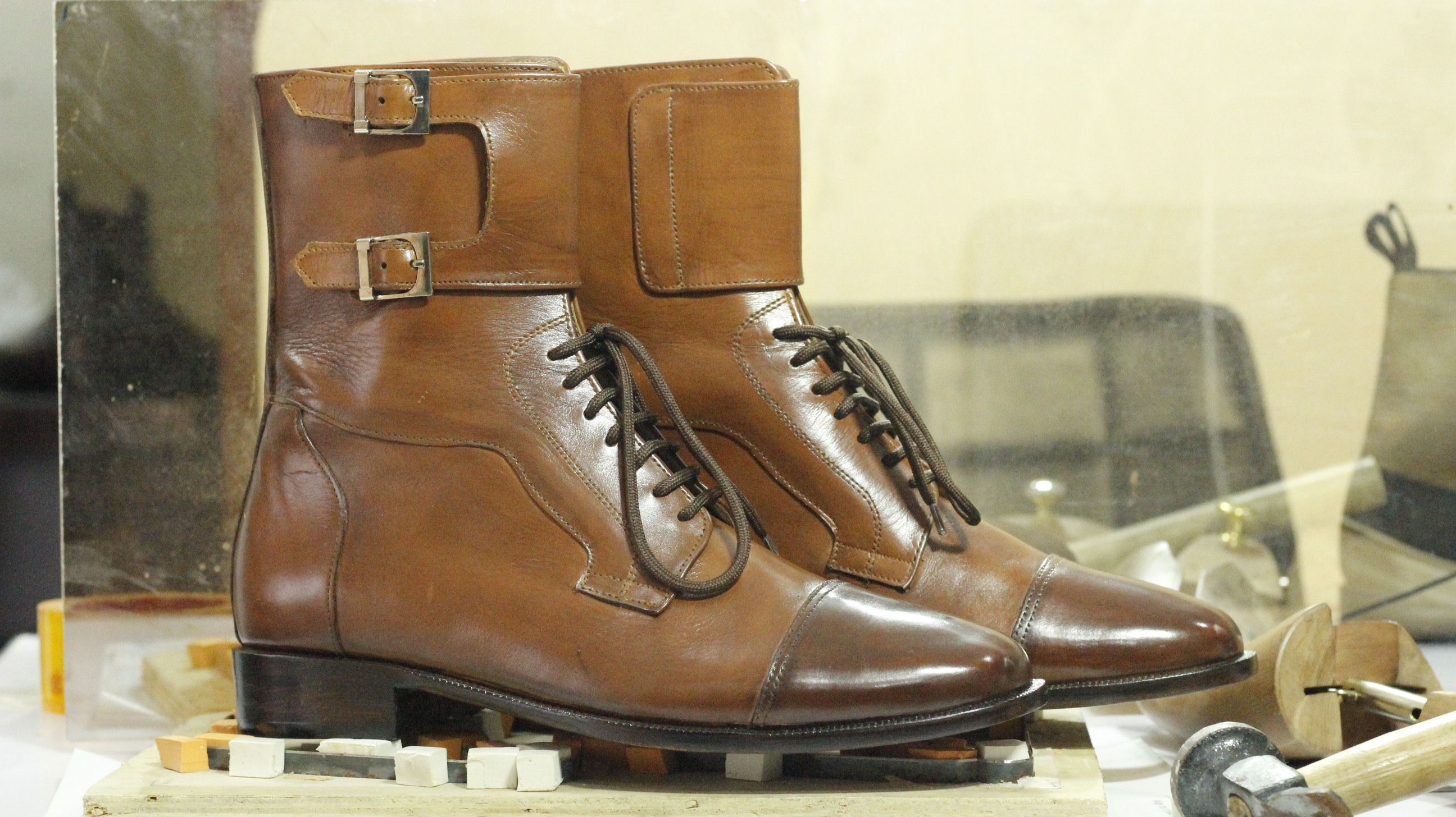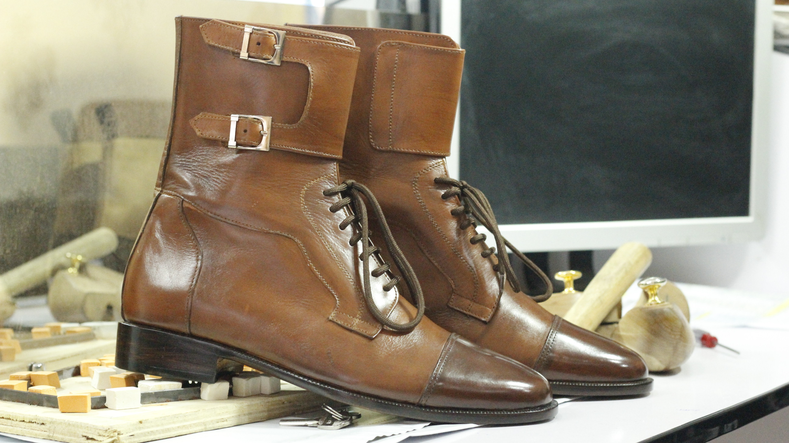 Designer Double Buckle Brown Lace Up Ankle Men Leather Boot