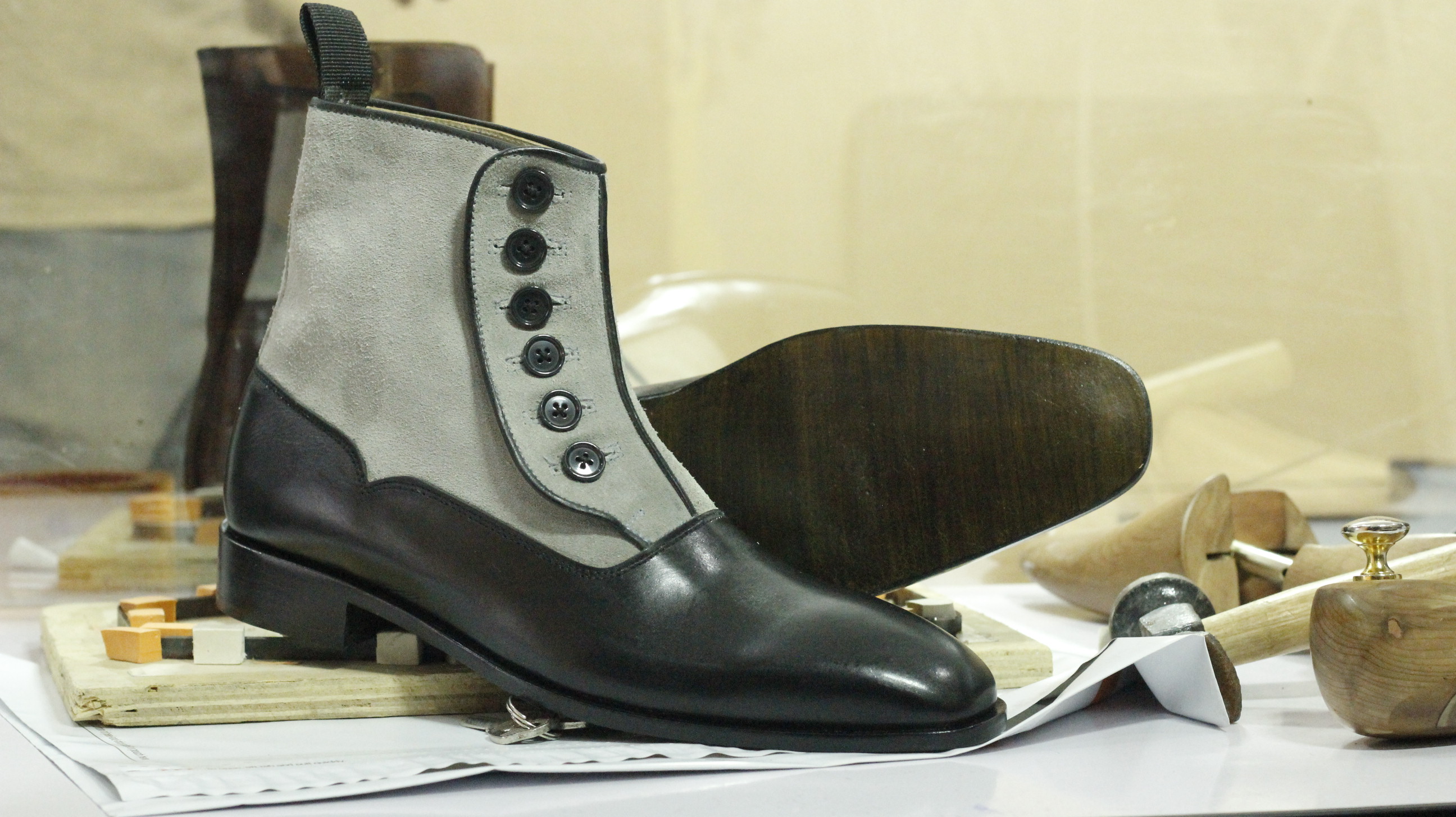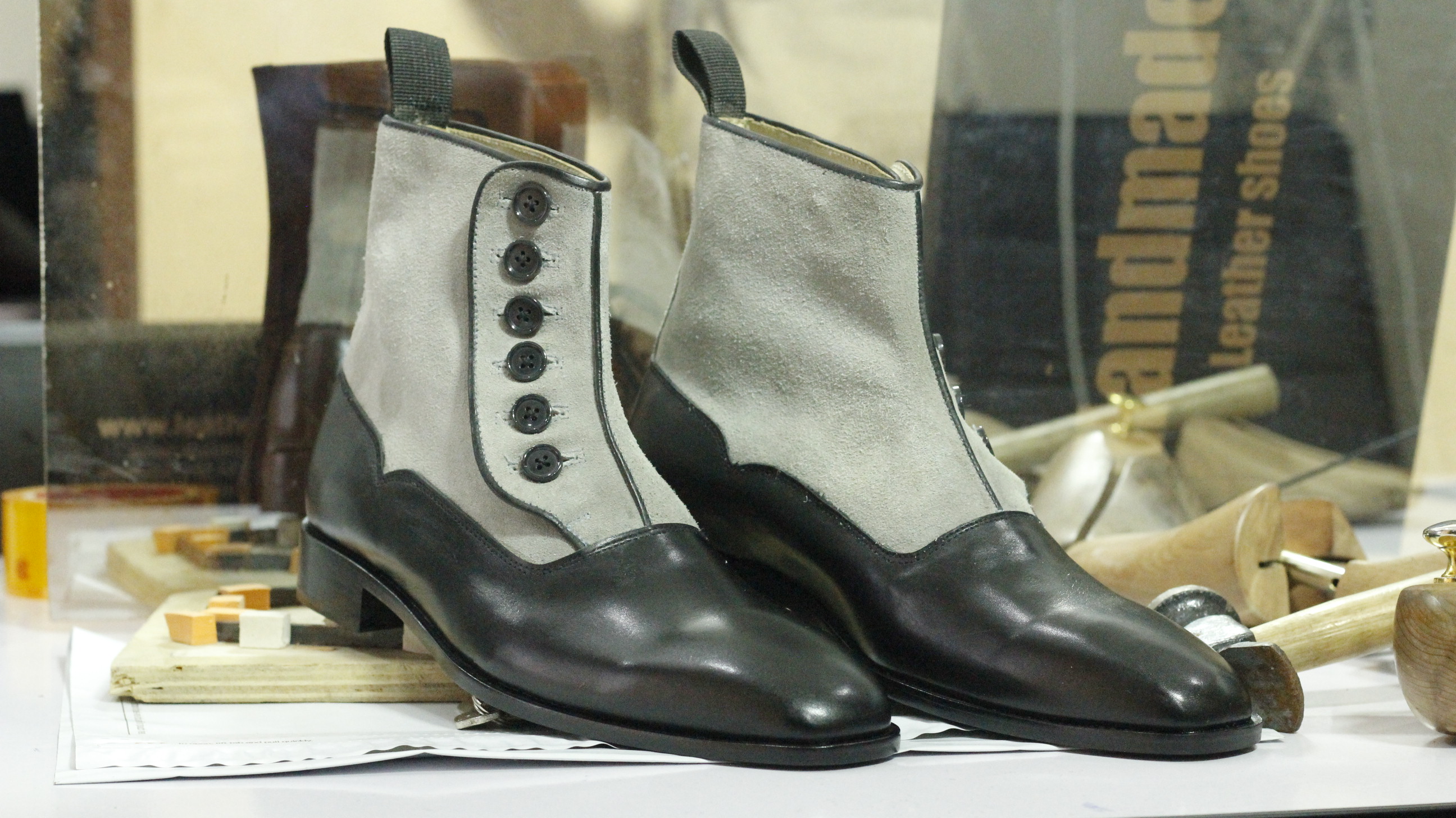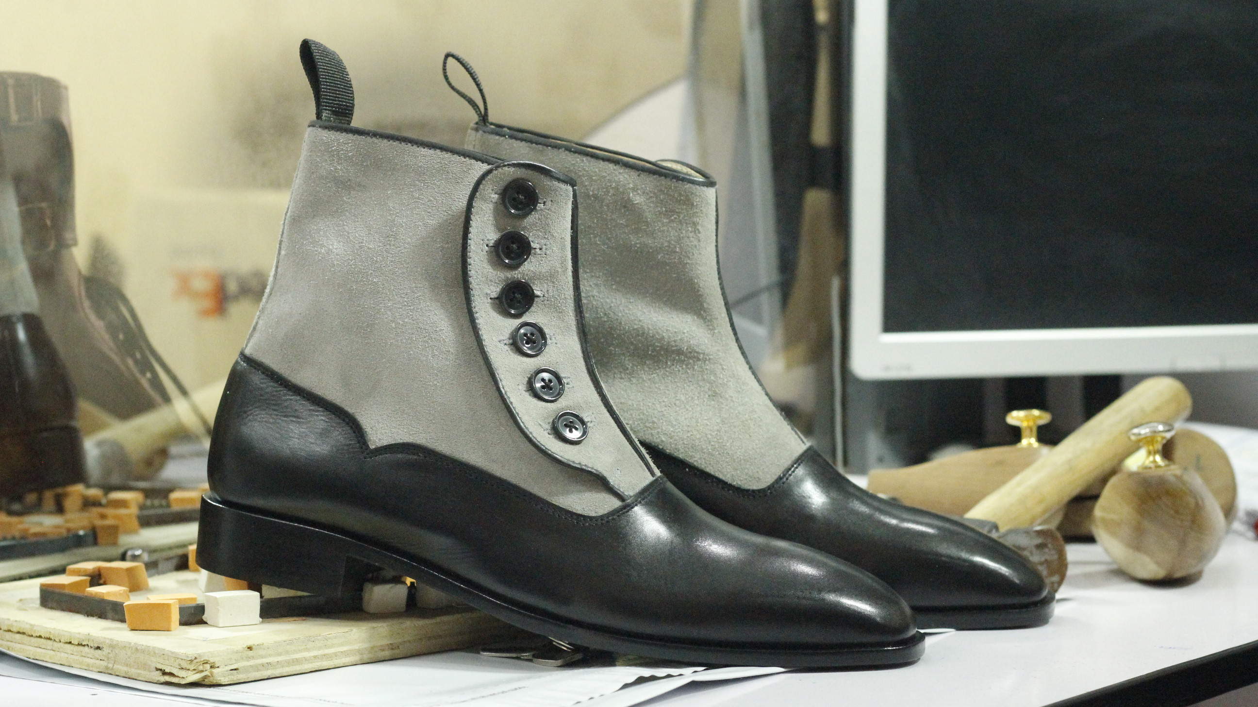 Black Gray Cap Toe Men's Button Top Ankle High Suede Leather Boot