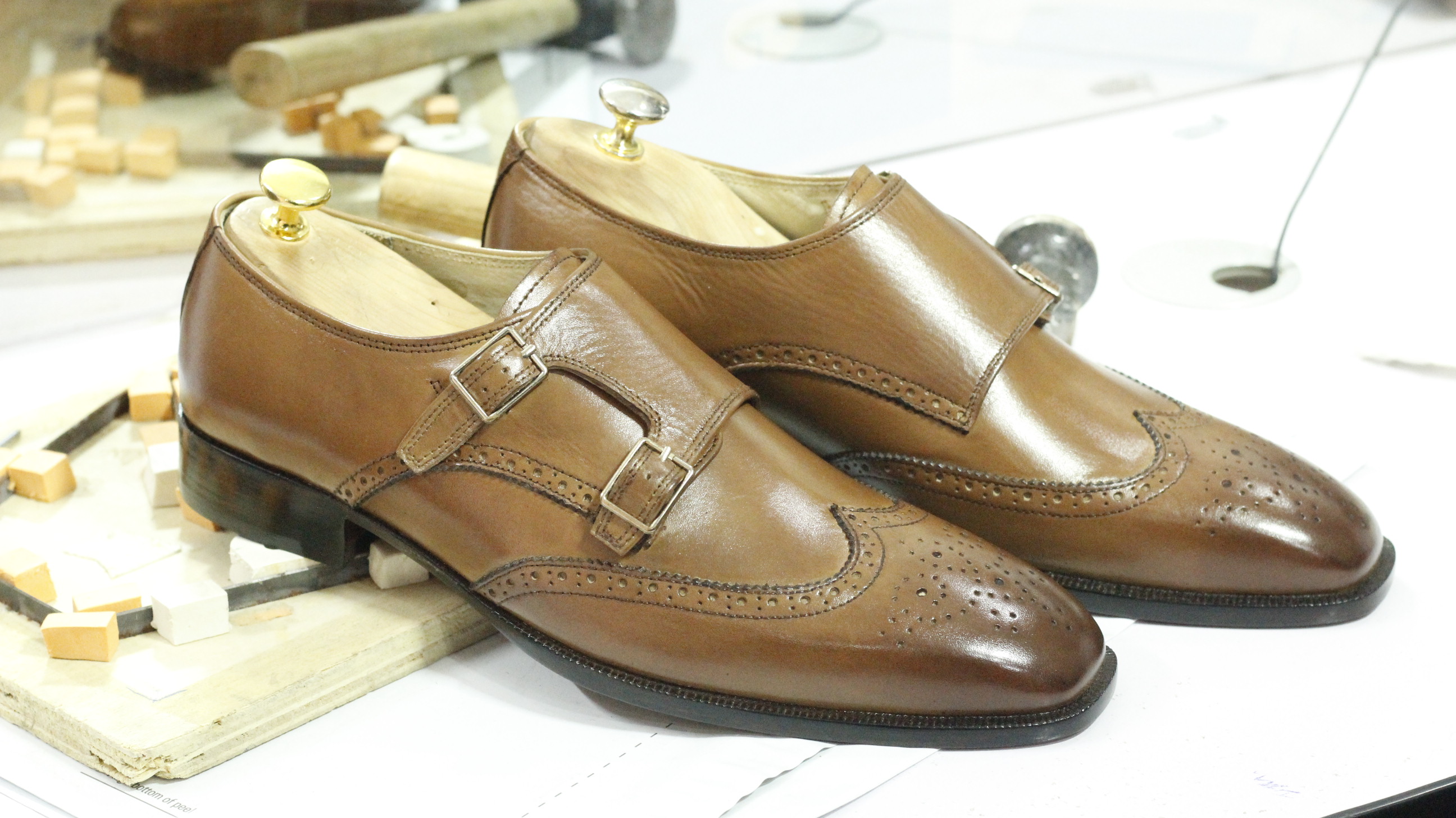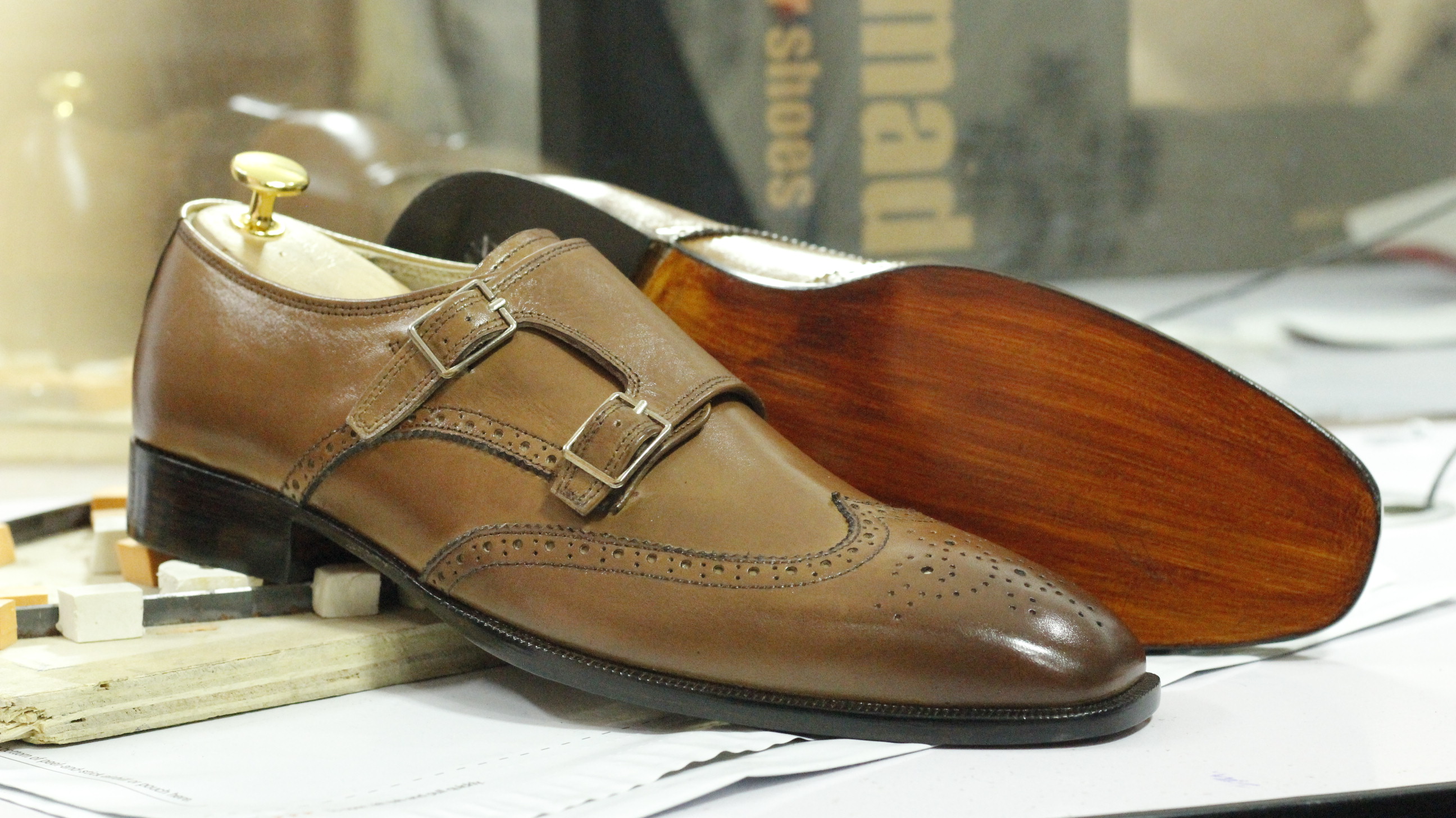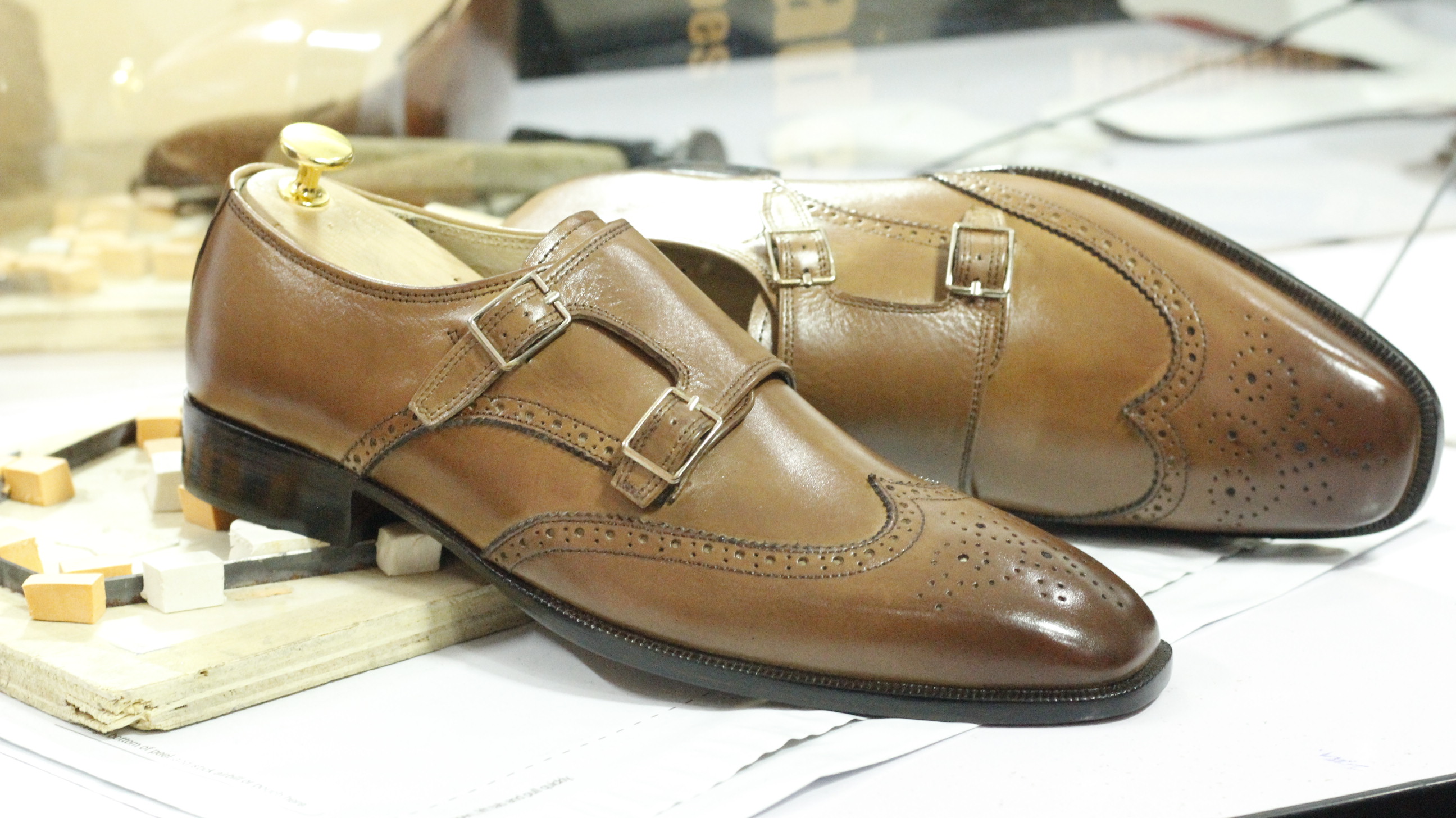 Men's Designer Wing Tip Double Buckle Brown Leather Shoes