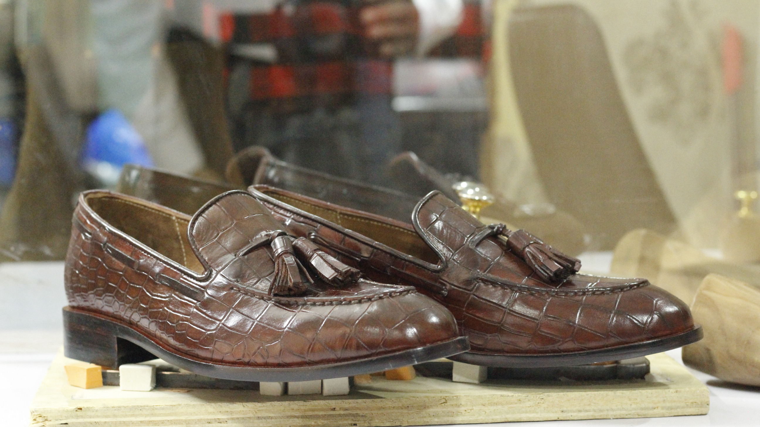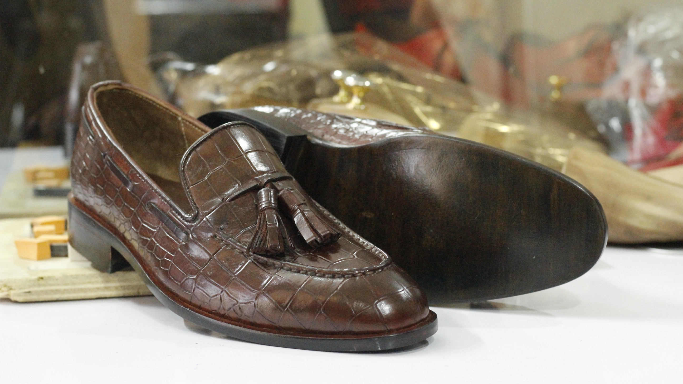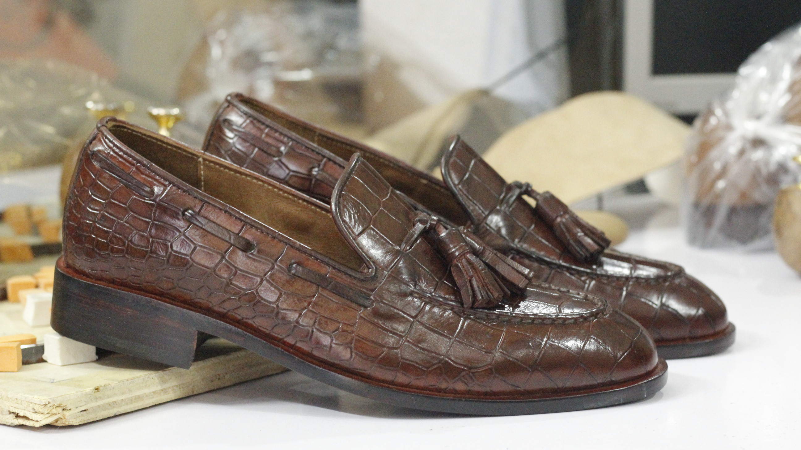 Brown Alligator Leather Loafer Shoes For Men's Formal Dress