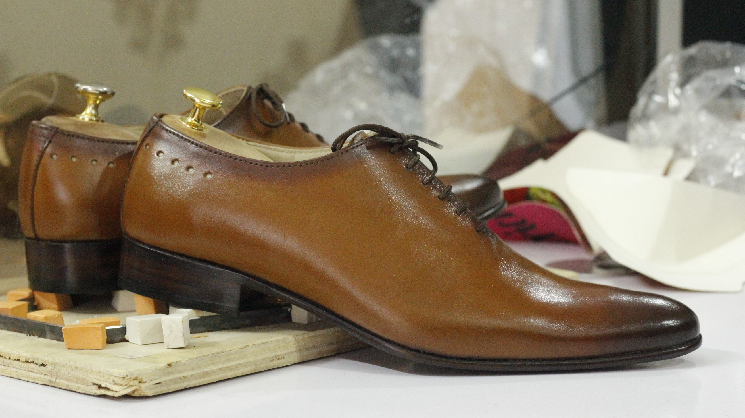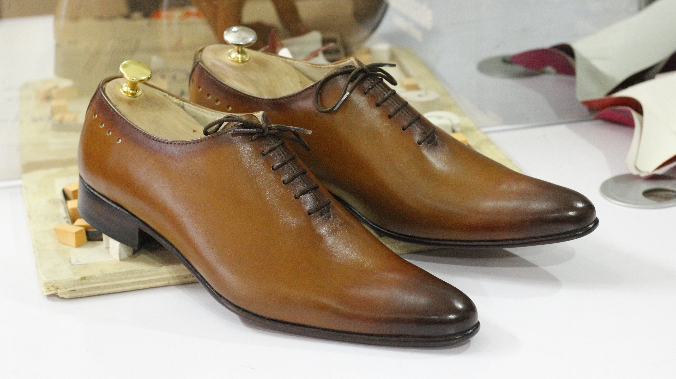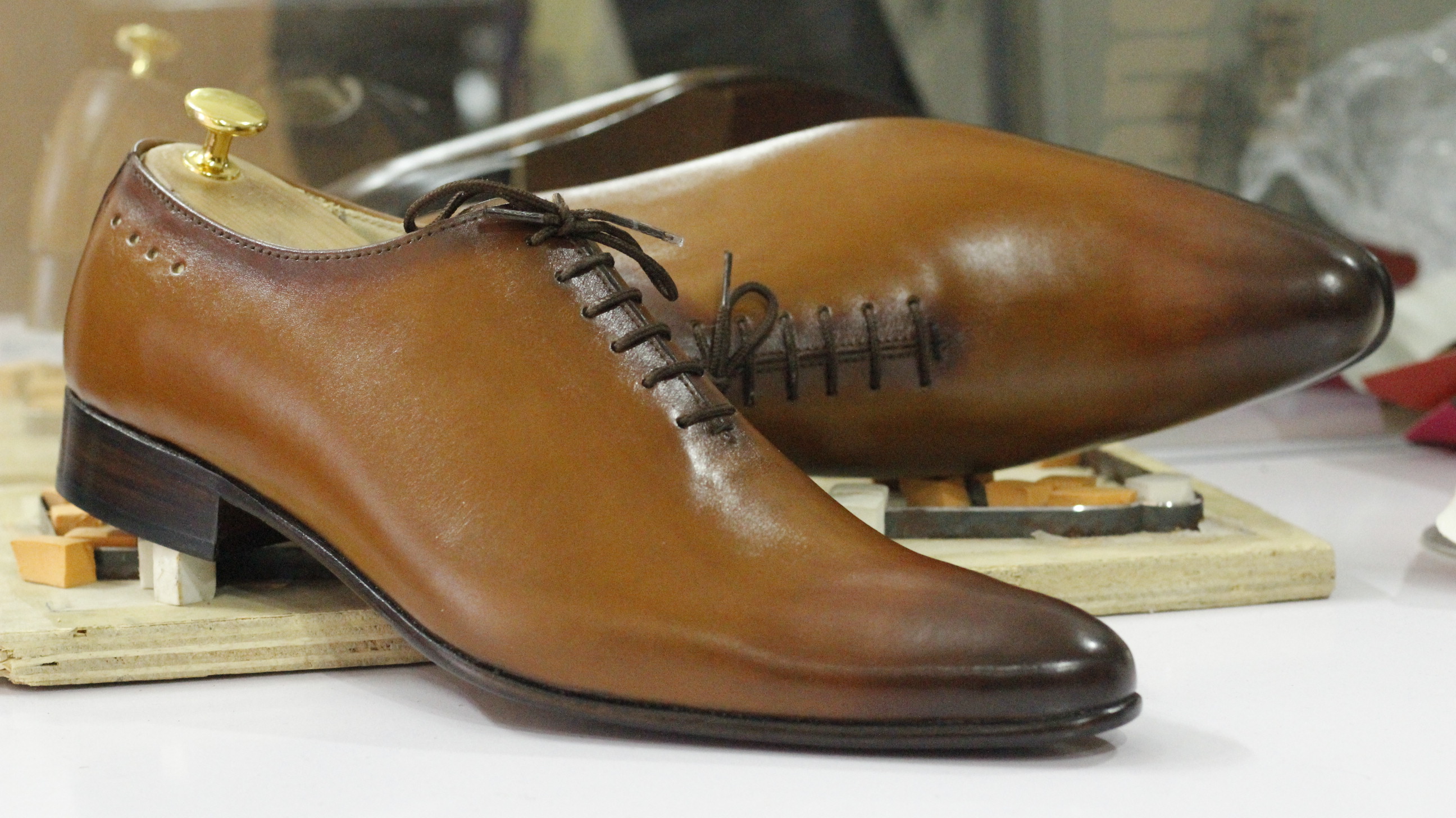 Brown Lace Up Men's Formal Wear Leather Shoes