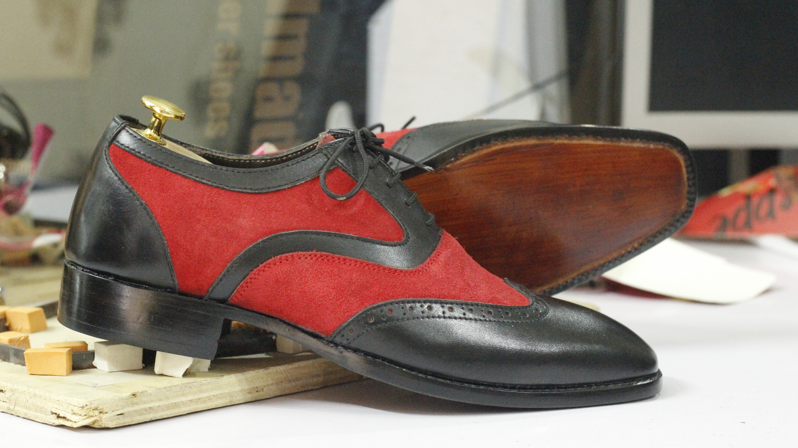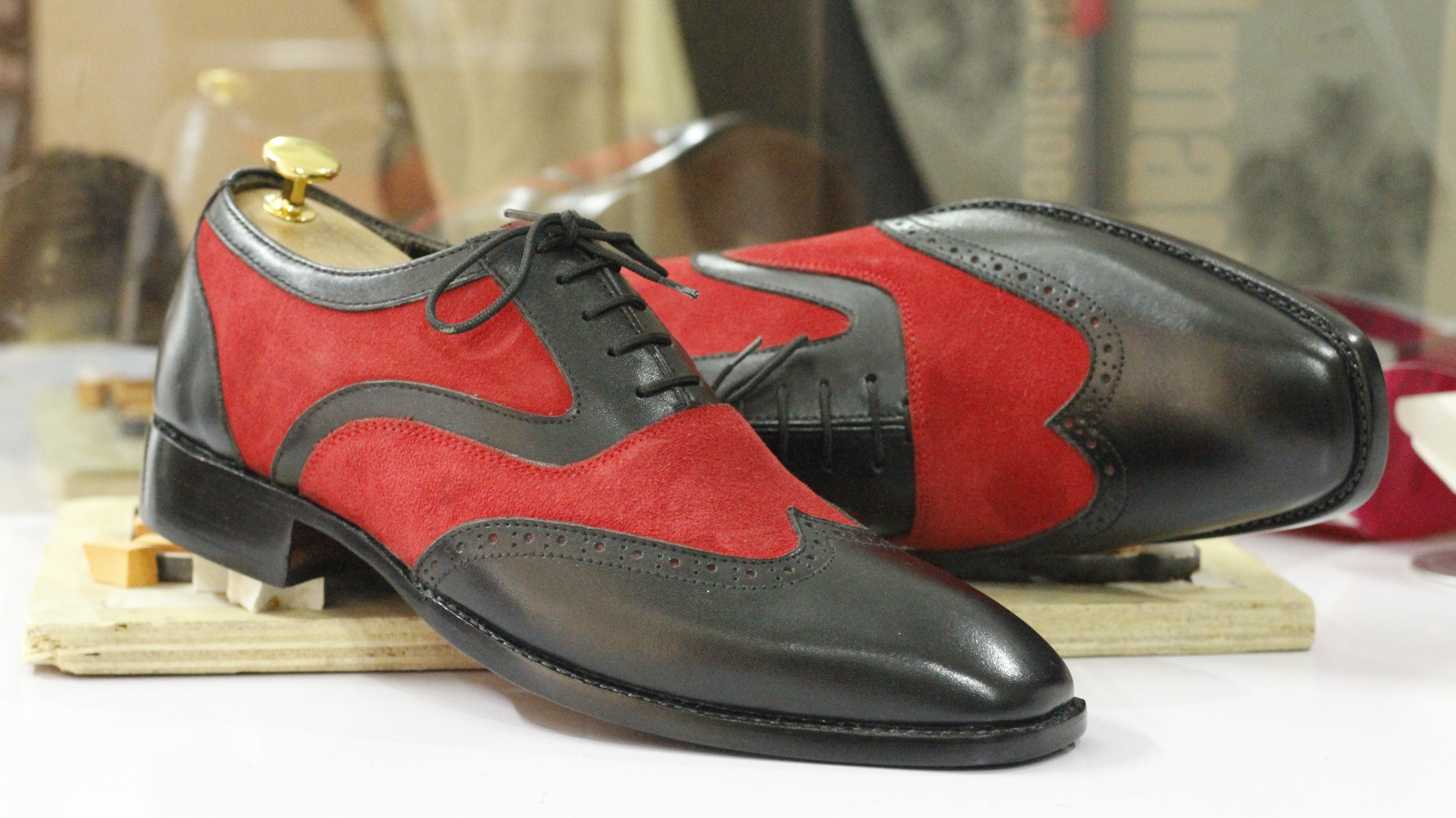 Suede Red Black Wing Tip Brogue Lace Up Leather Shoes For Men
