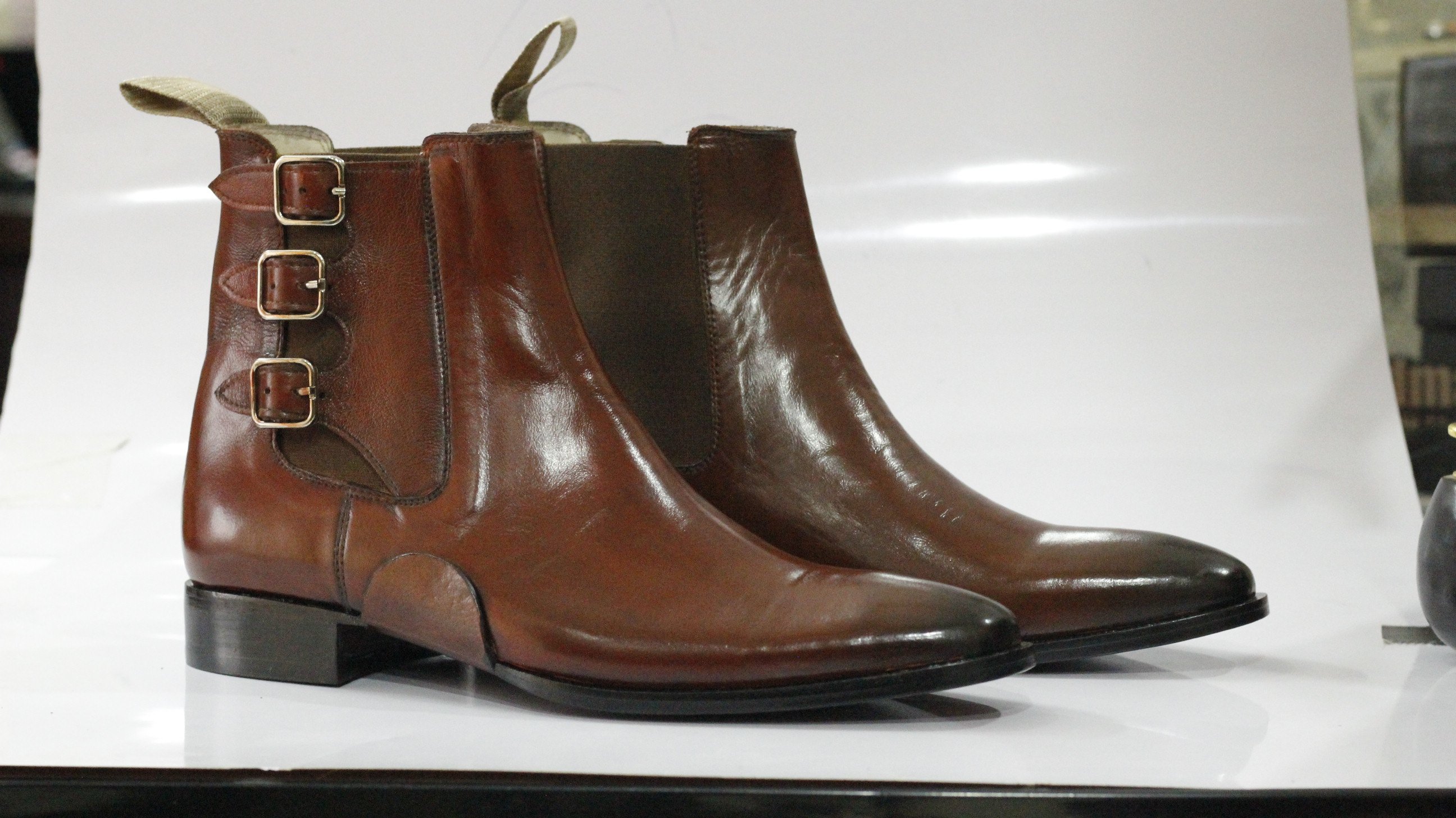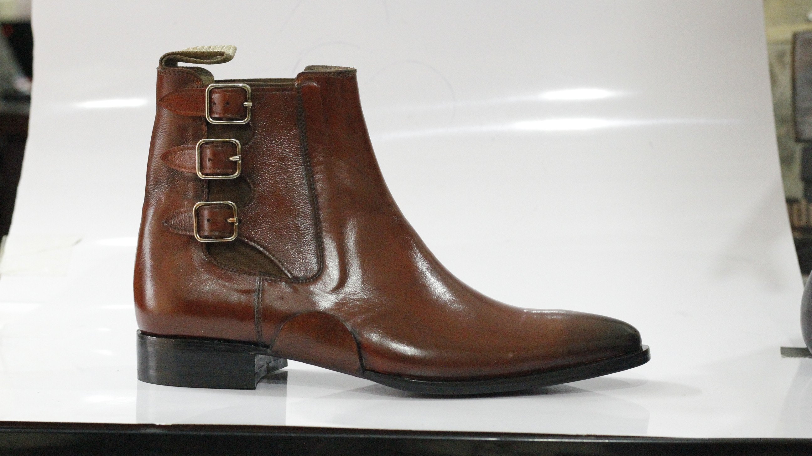 Oxford Brown Leather Chelsea Ankle High Monk Boots For Men Foot Wear