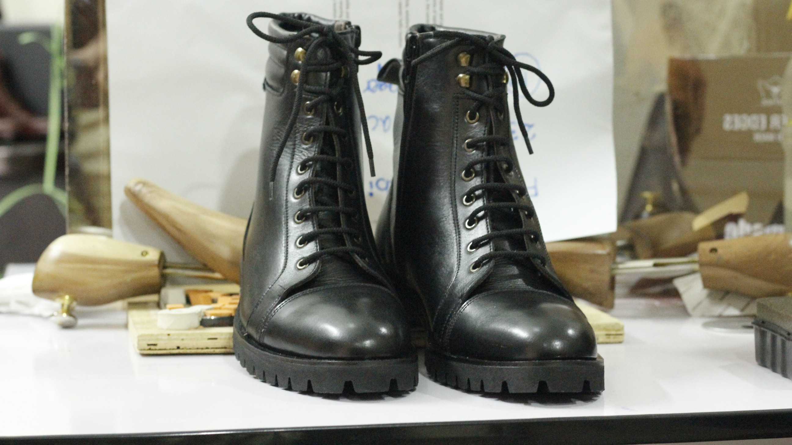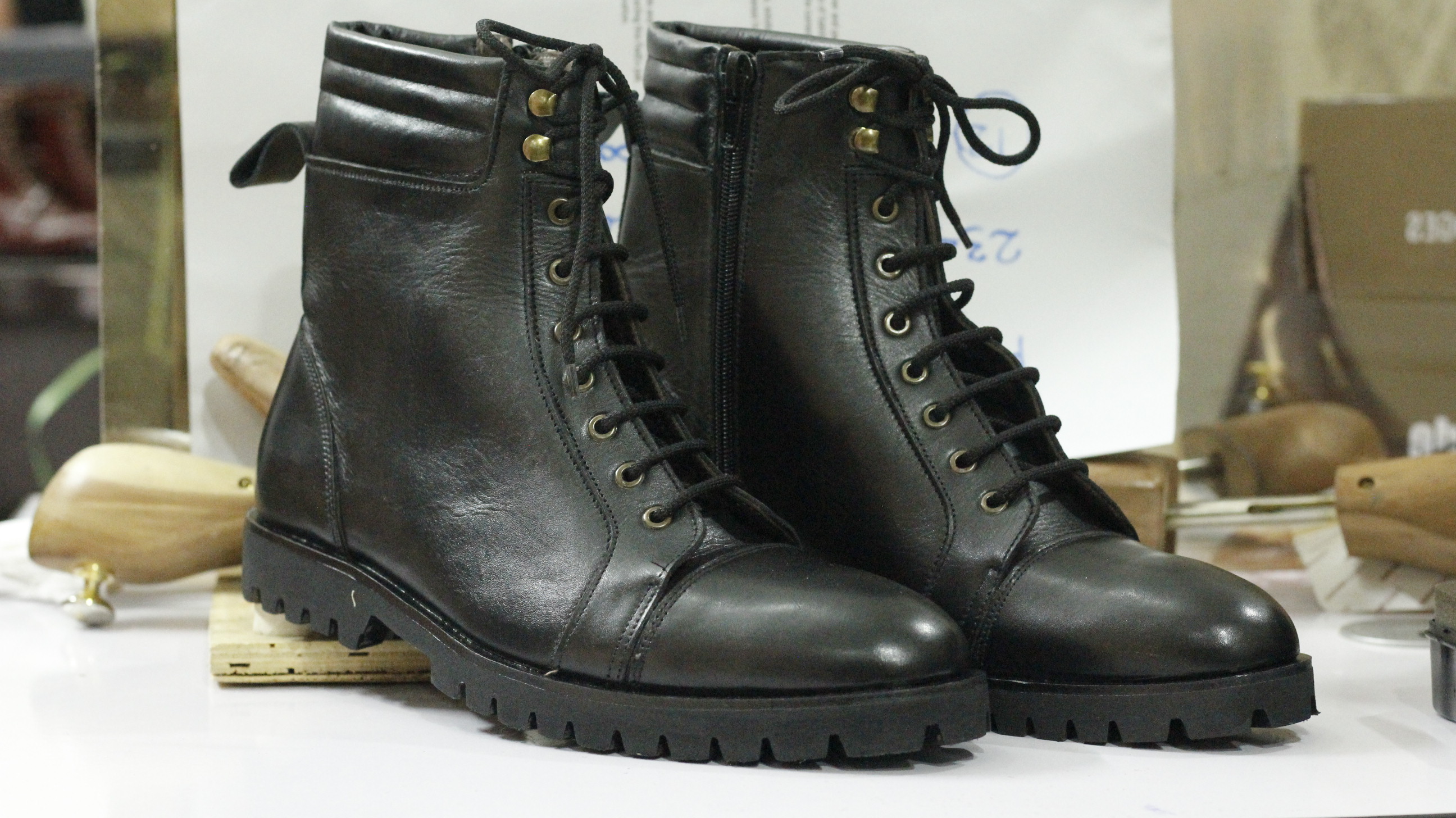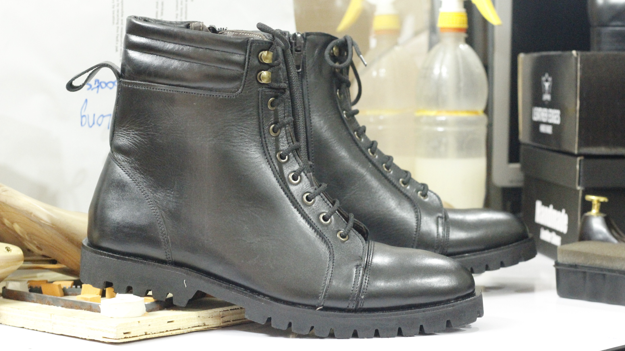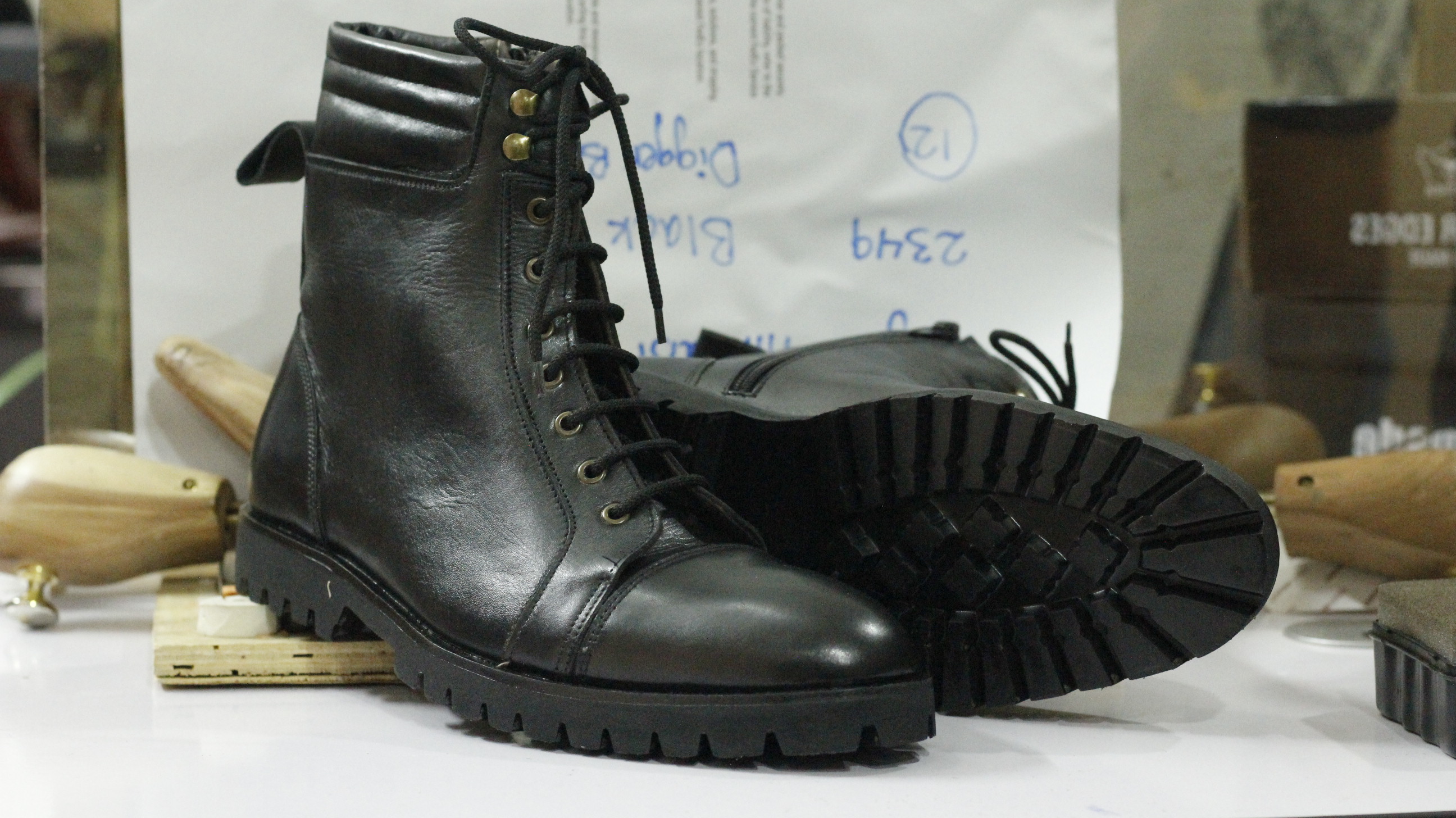 Men's Black Leather Boot Cap Toe Lace Up Foot Wear