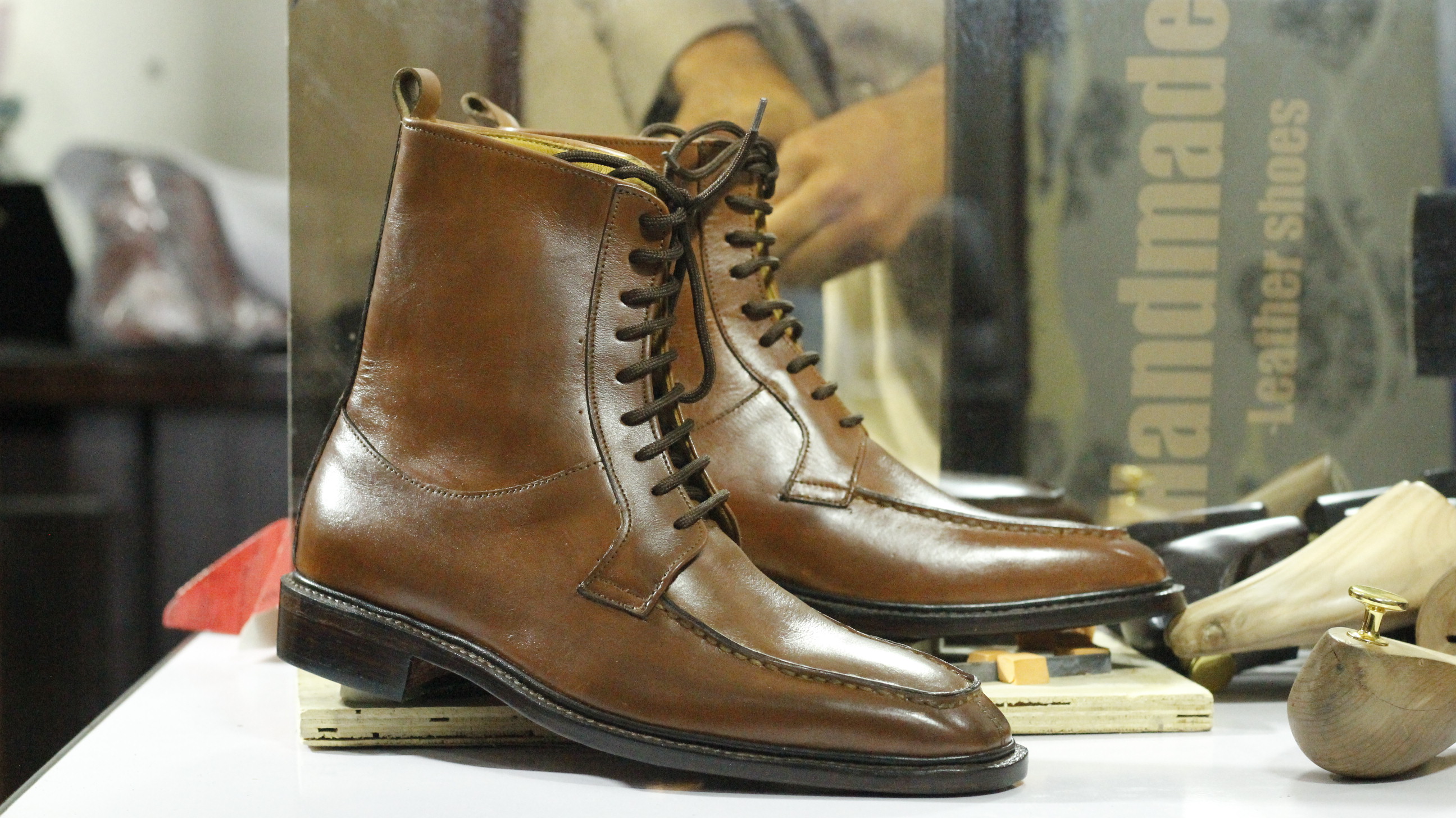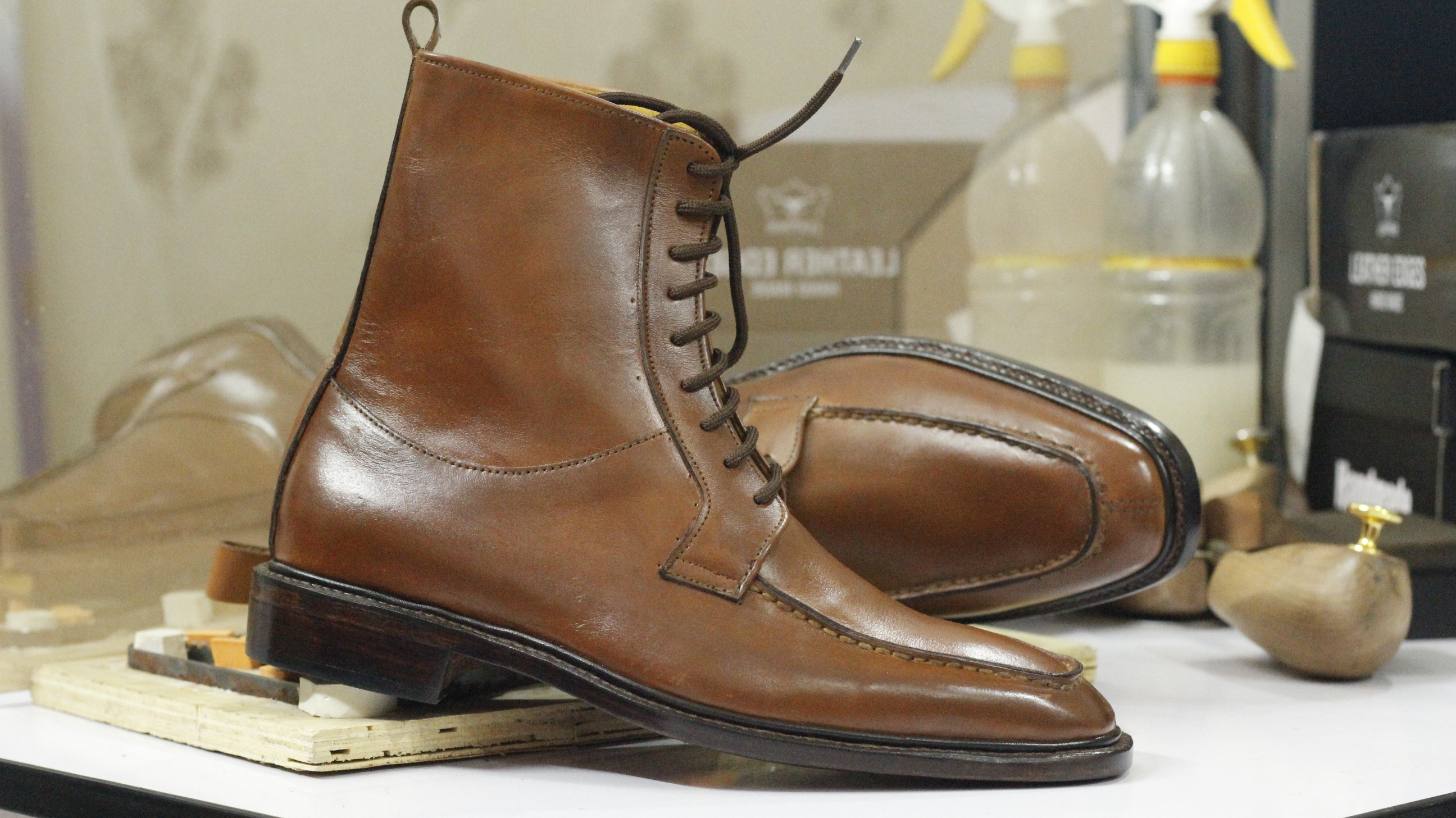Ankle High Brown Leather Lace Up Square Toe Boot