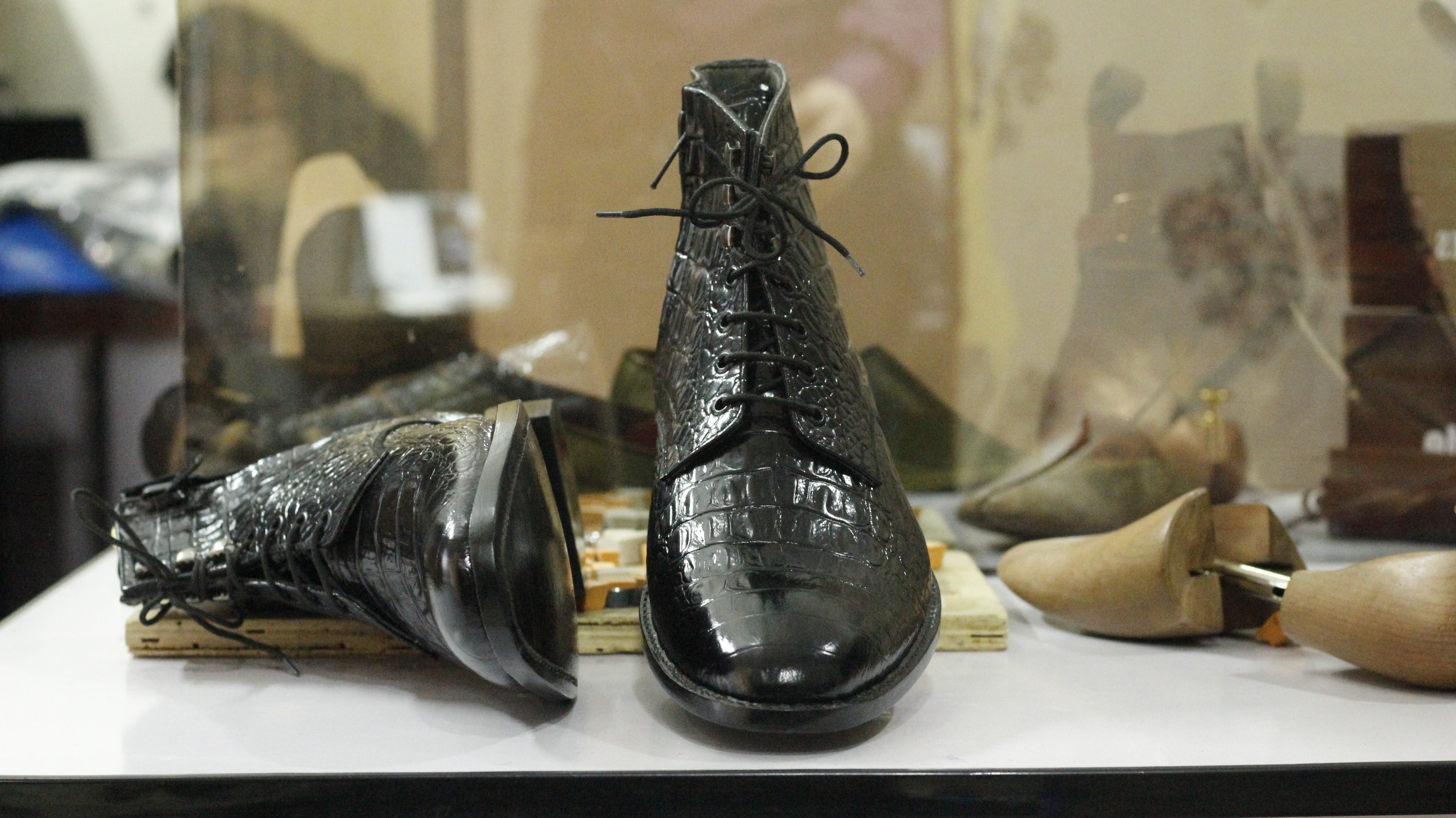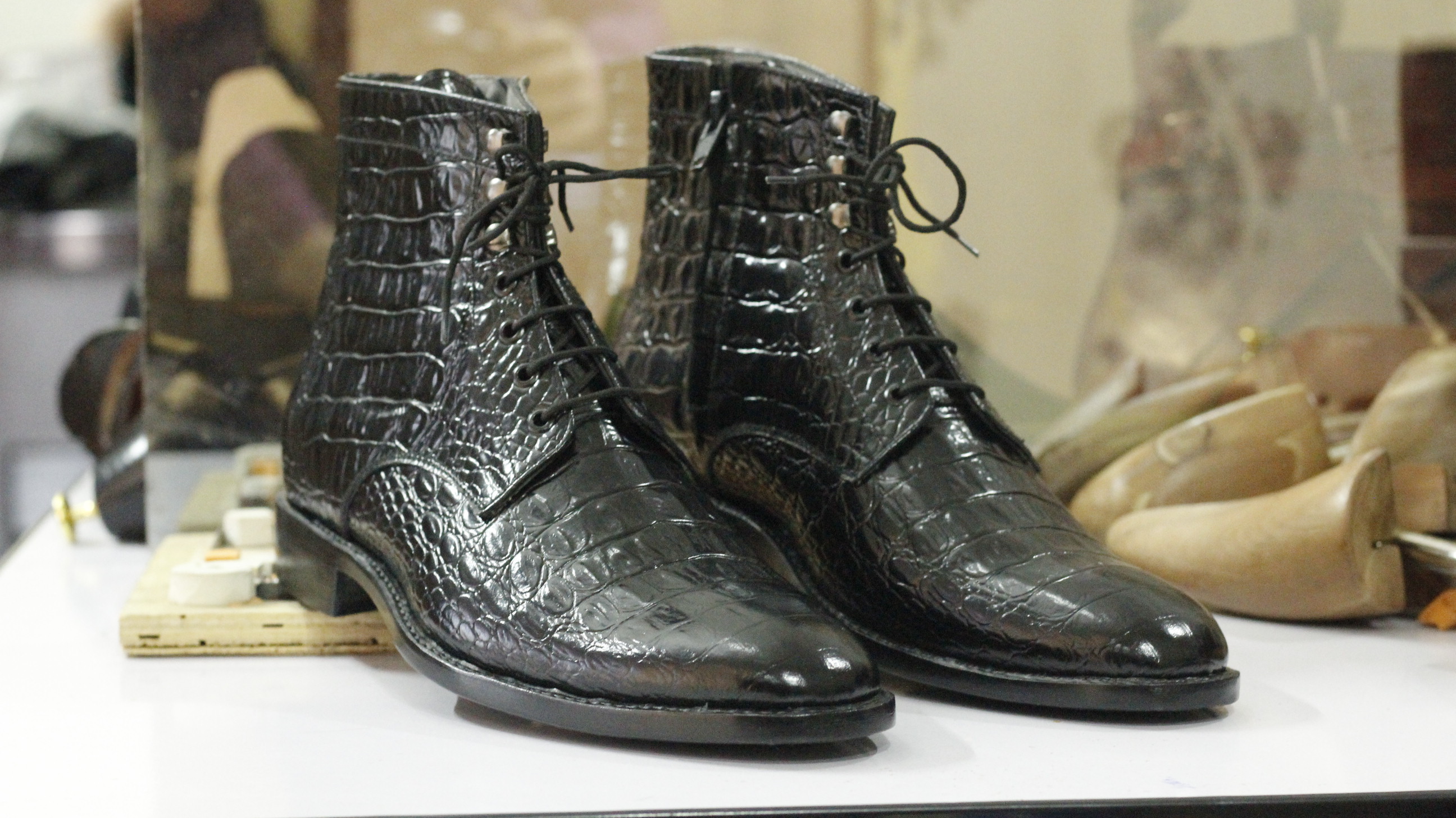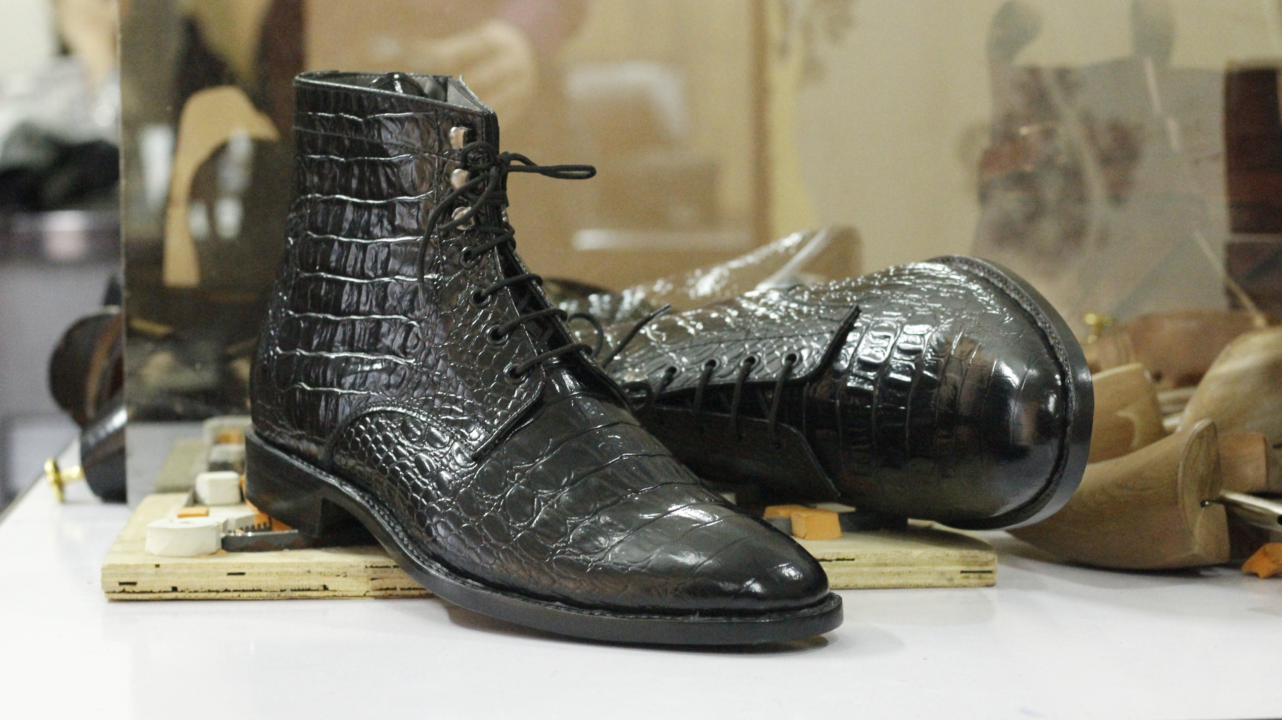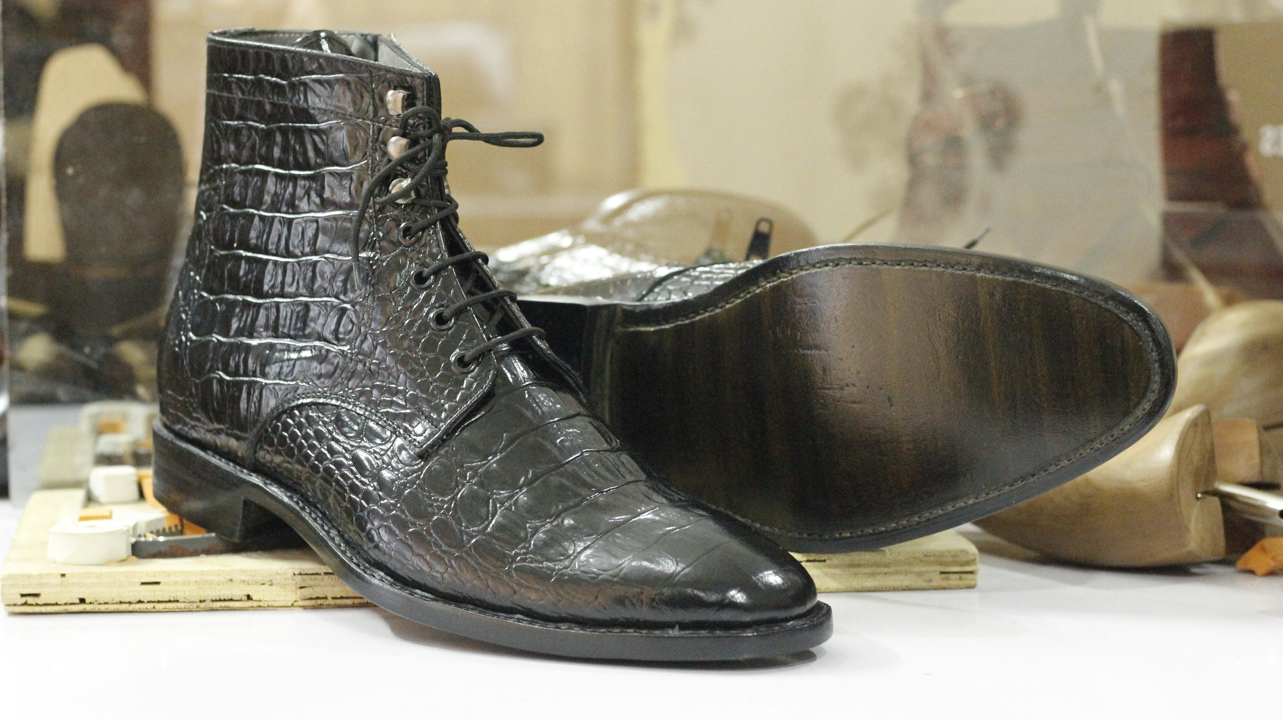 Lace Up Hand Panted Alligator Leather Men's Boot