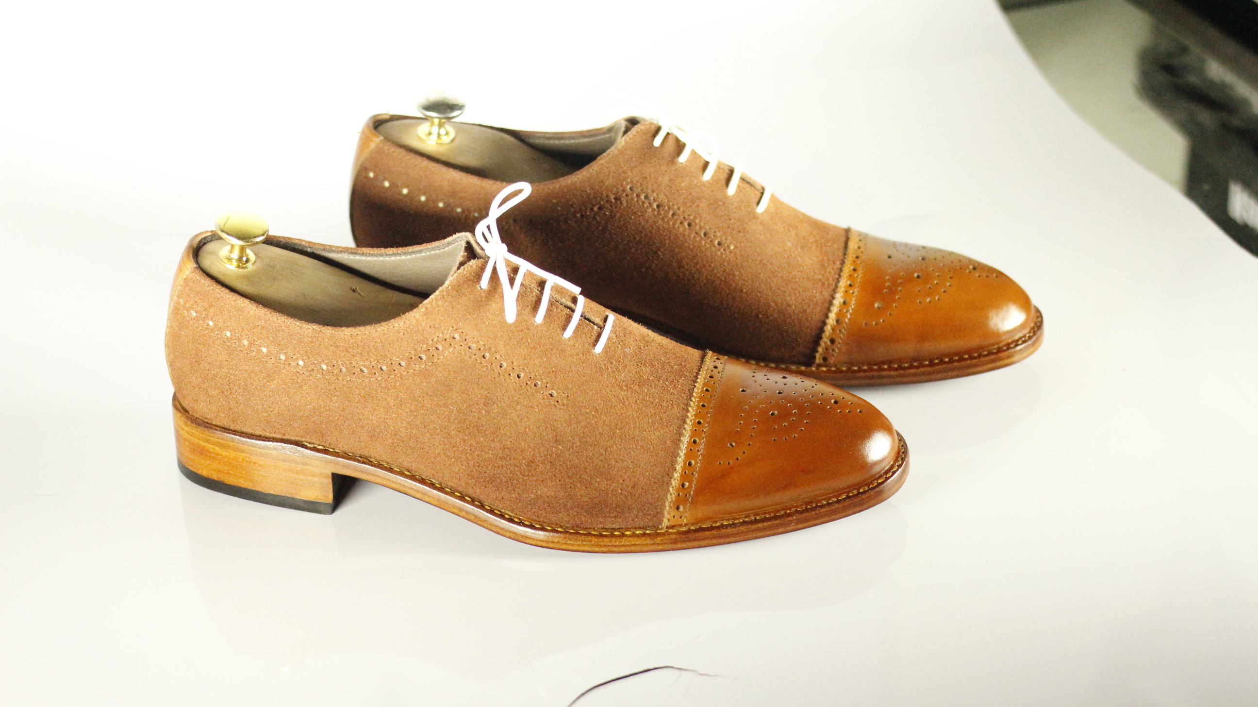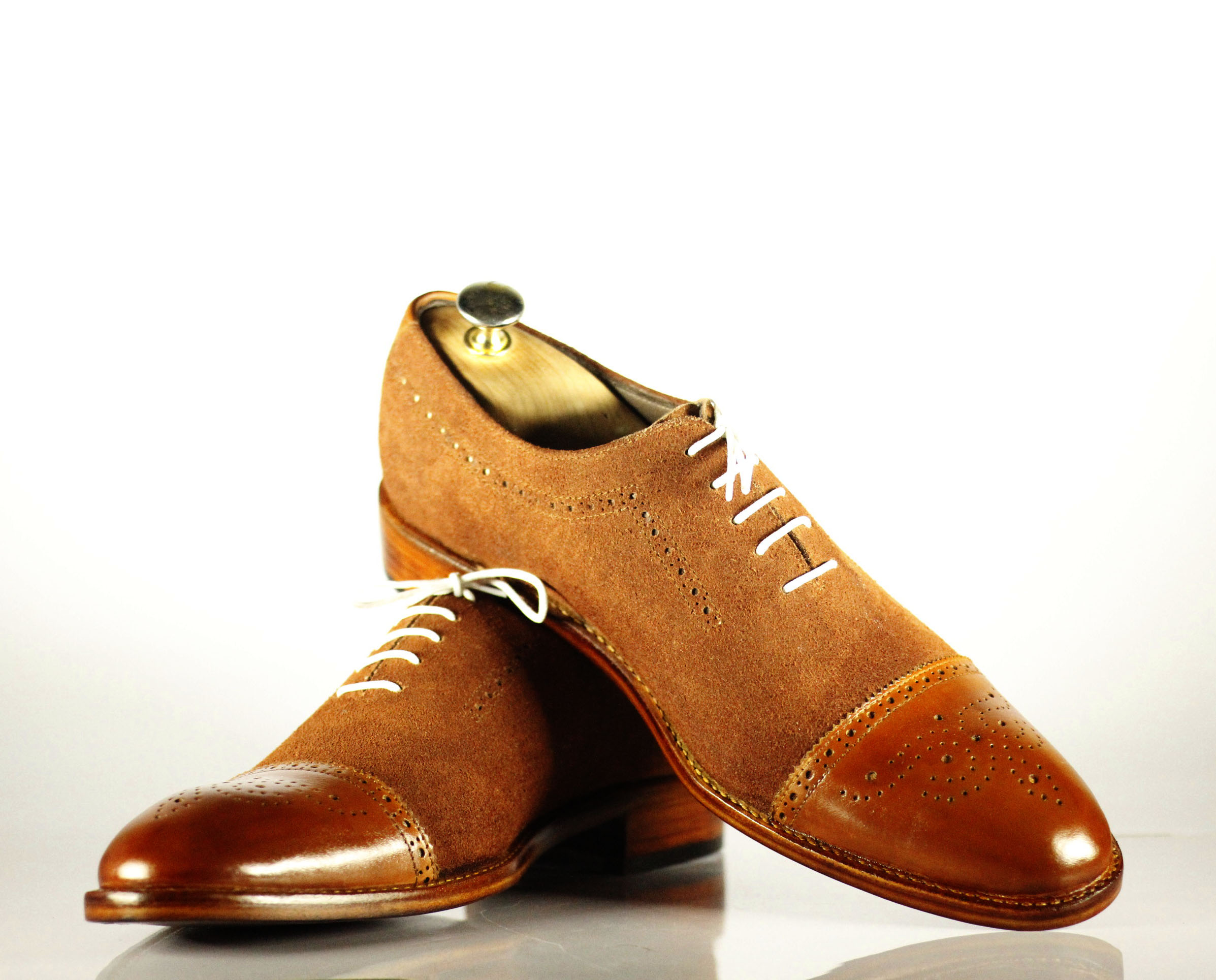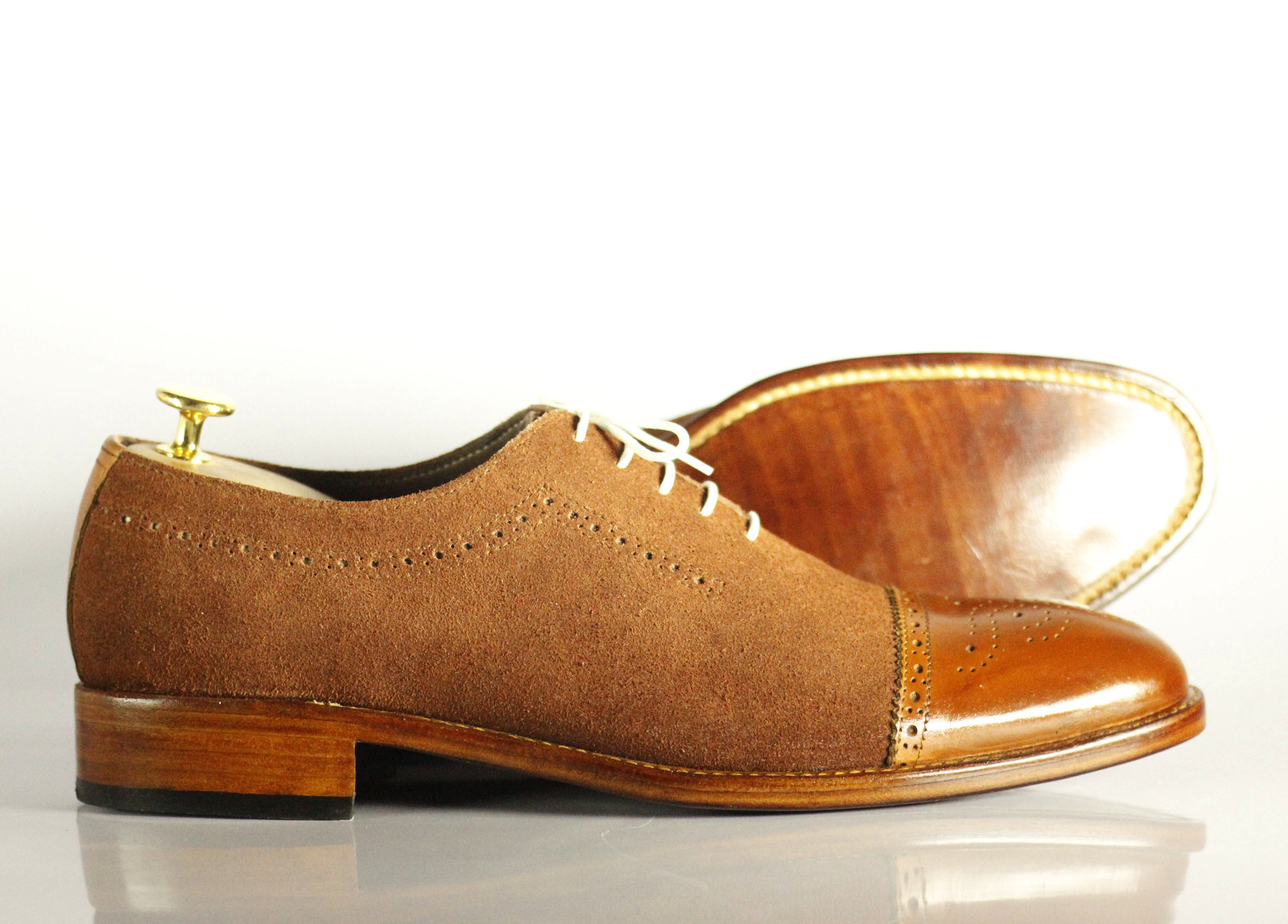 Mustered Suede Cap Toe Brogue Lace Up Leather Men's Shoes