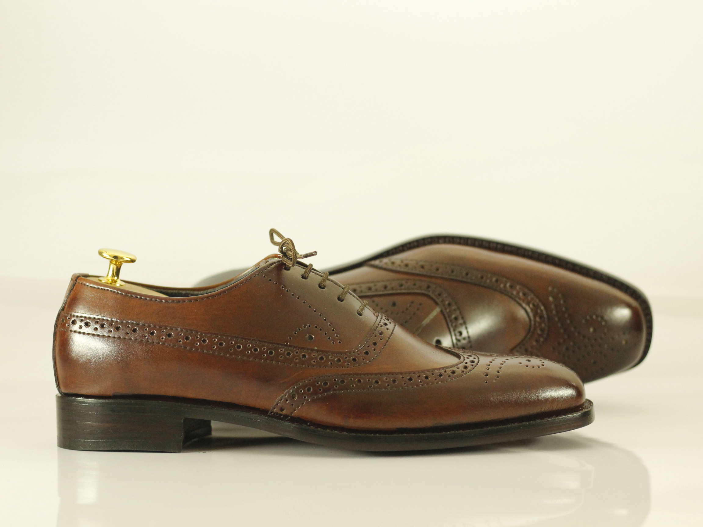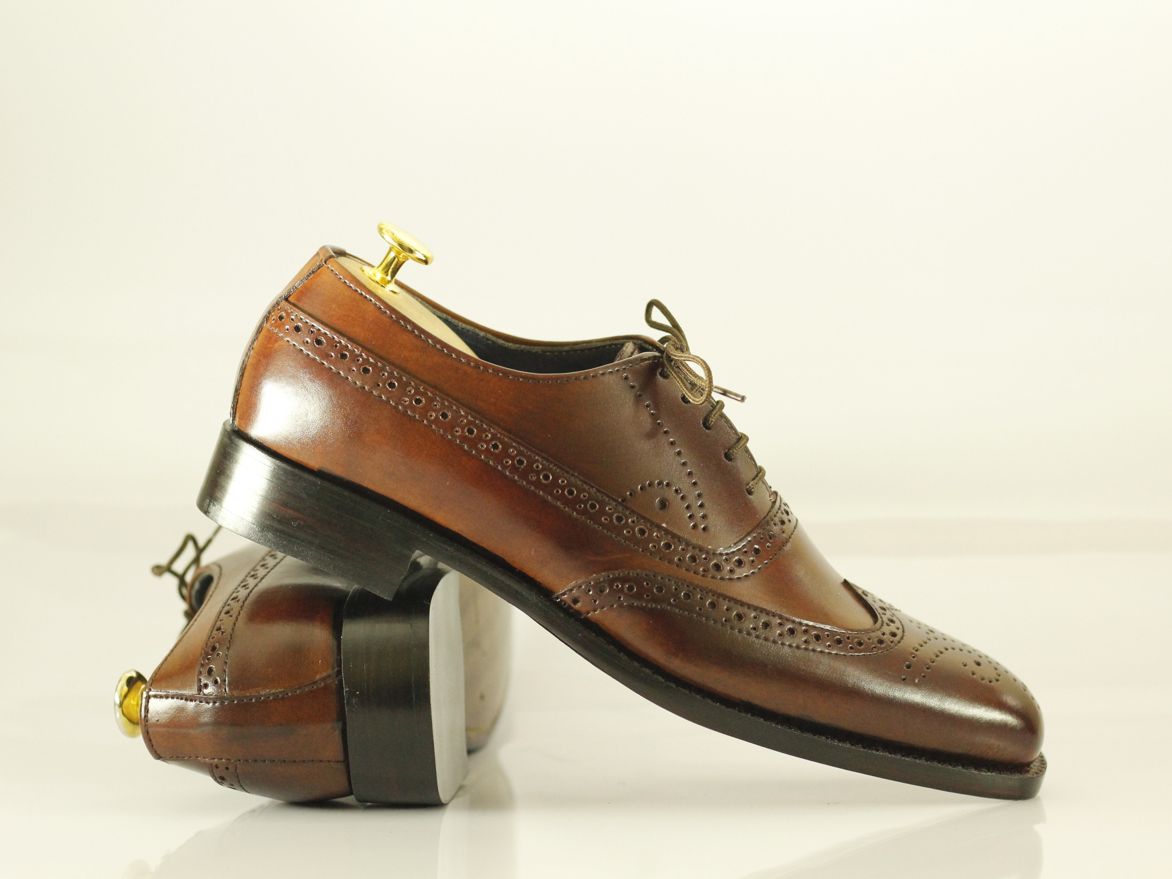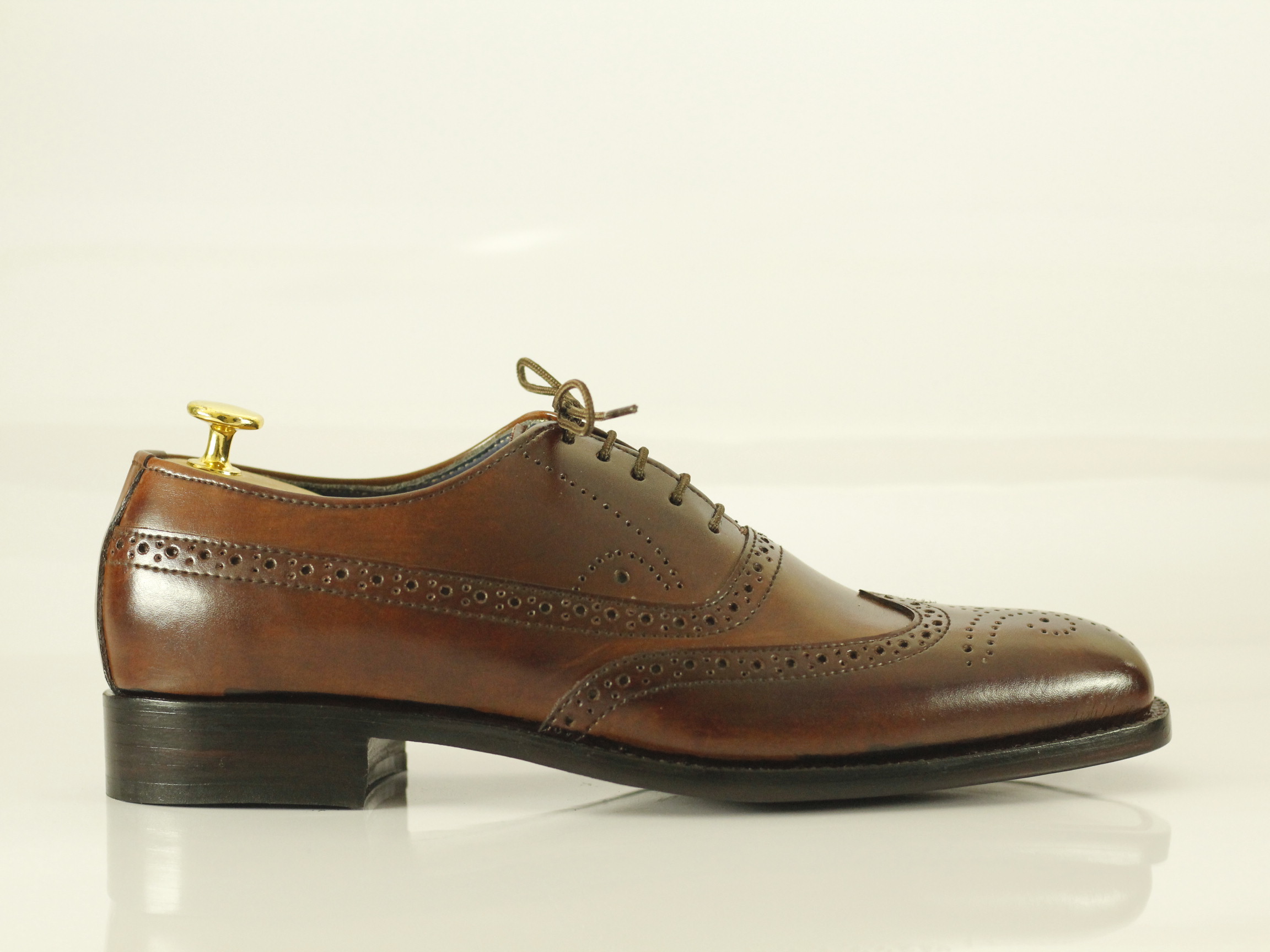 Brown Wing Tip Brogue Lace Up Leather Shoes For Men