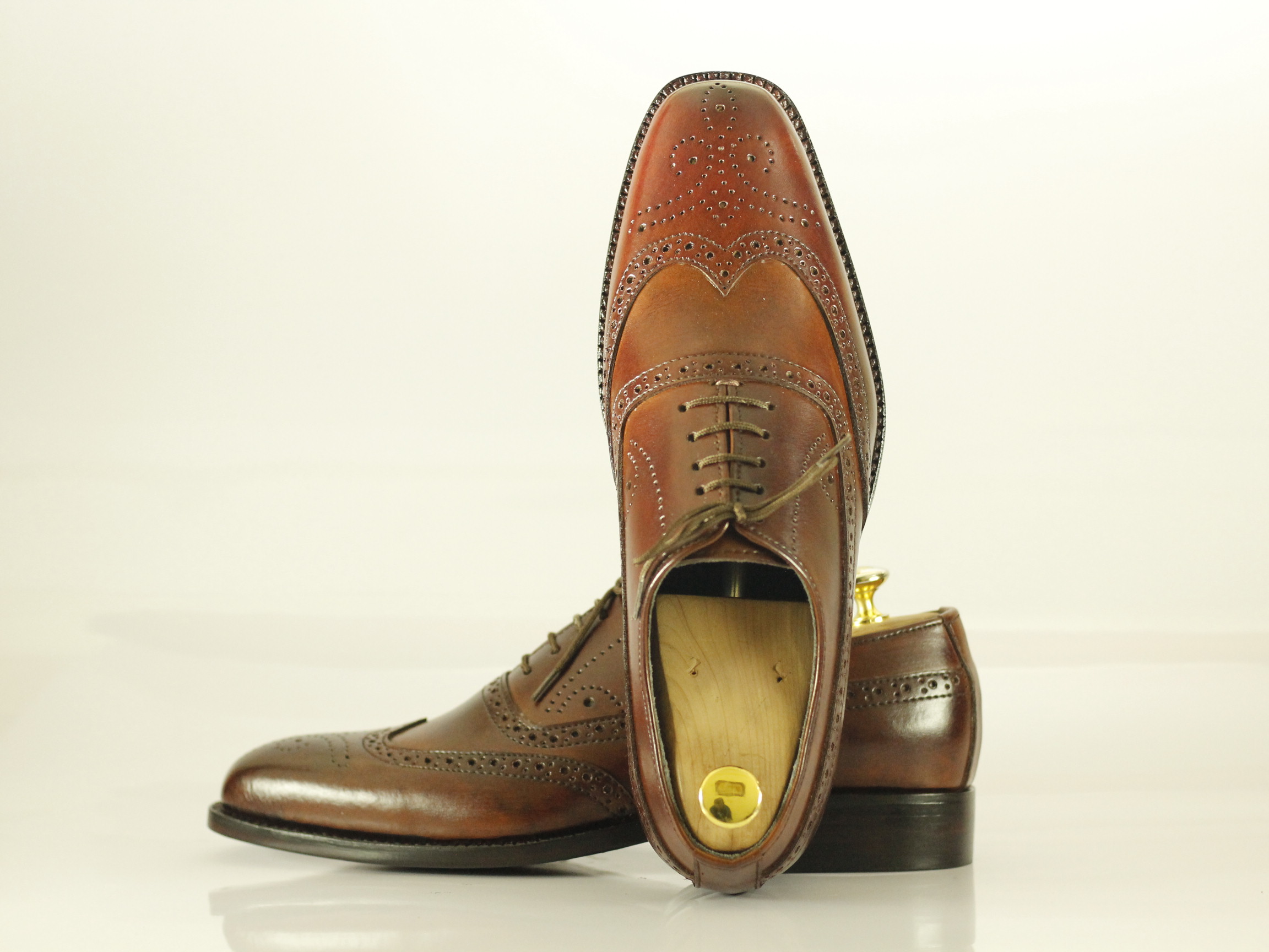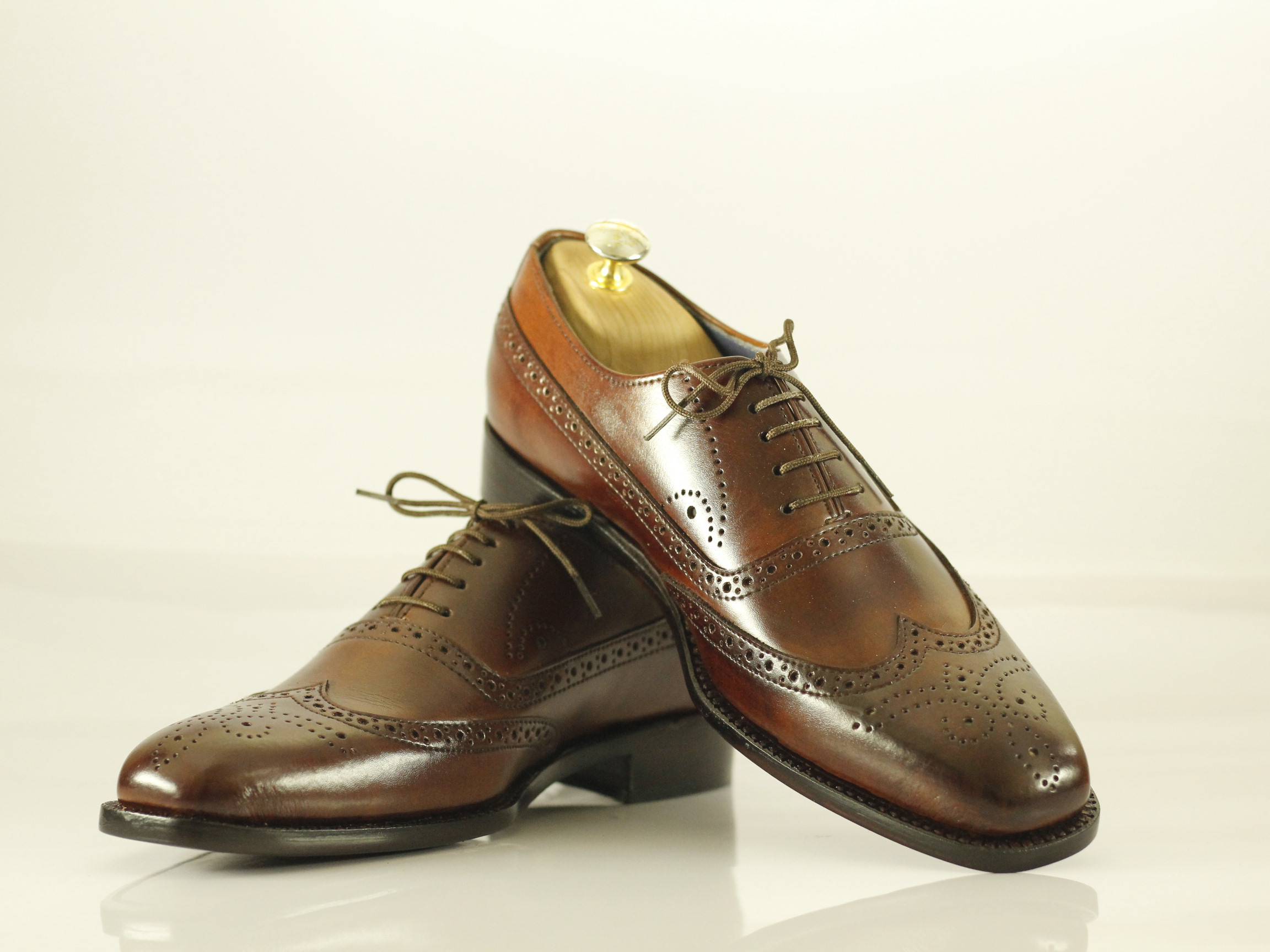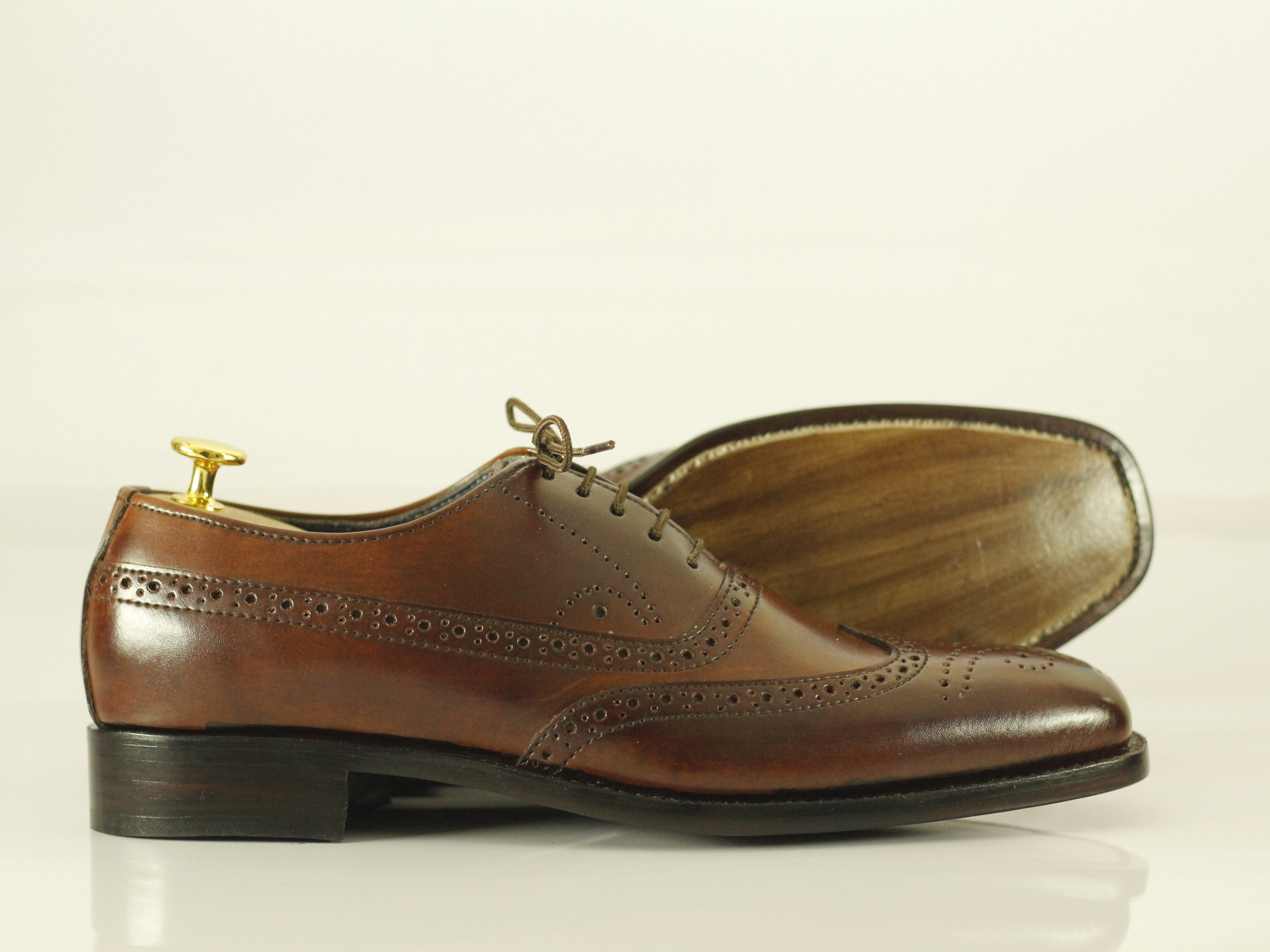 Brown Wing Tip Brogue Lace Up Leather Shoes For Men
