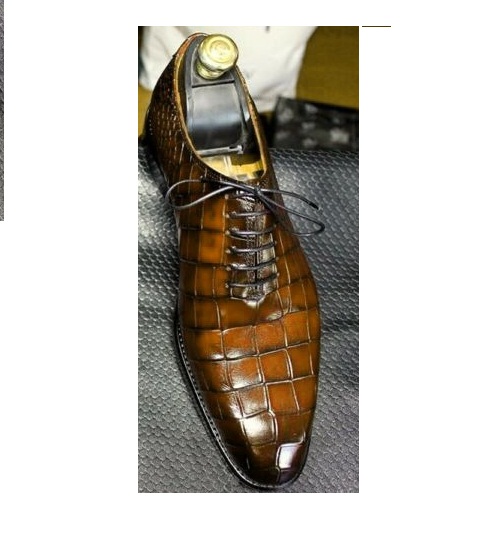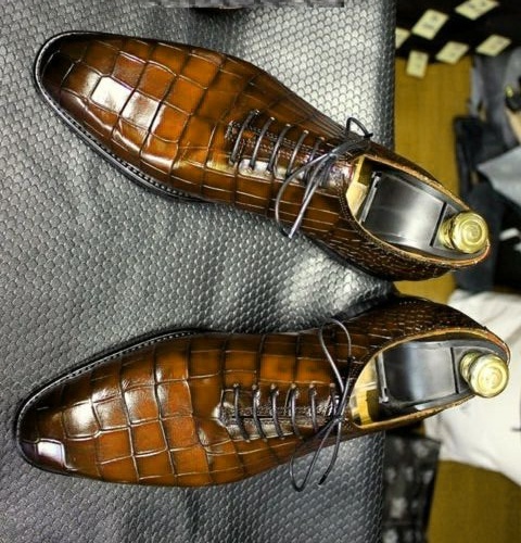 Lace Up Brown Stylish Alligator Leather Foot Wear Shoes For Men